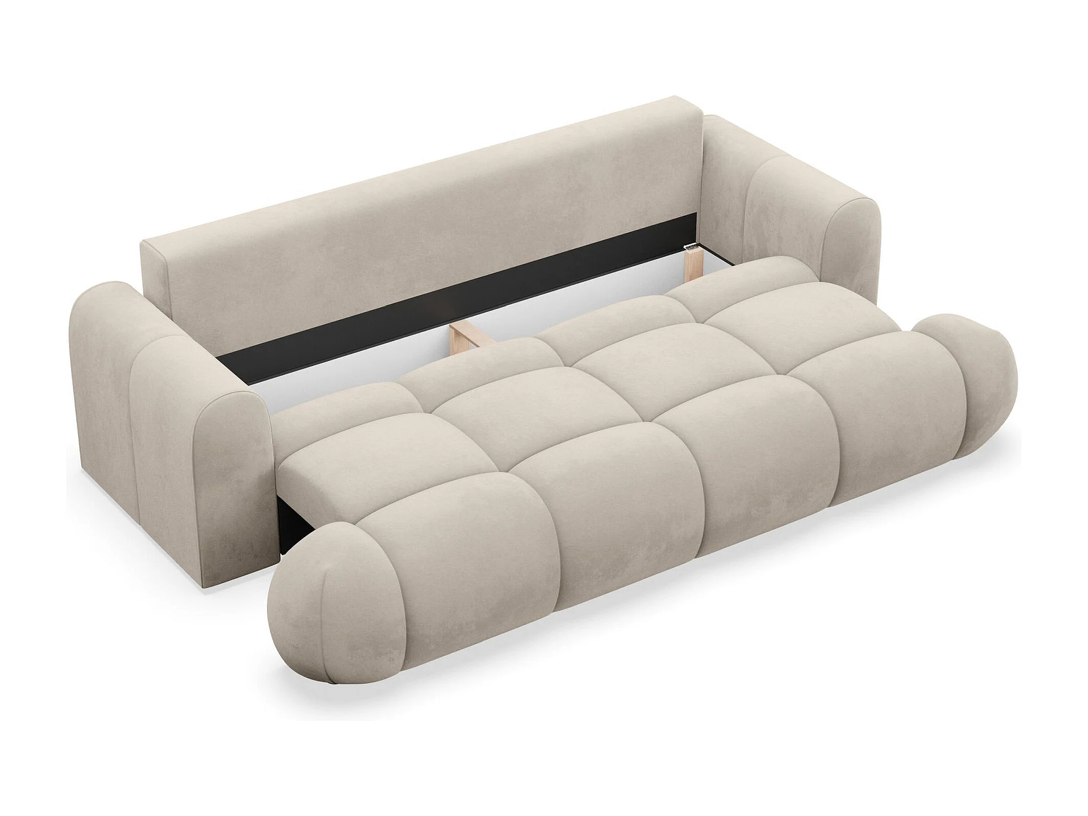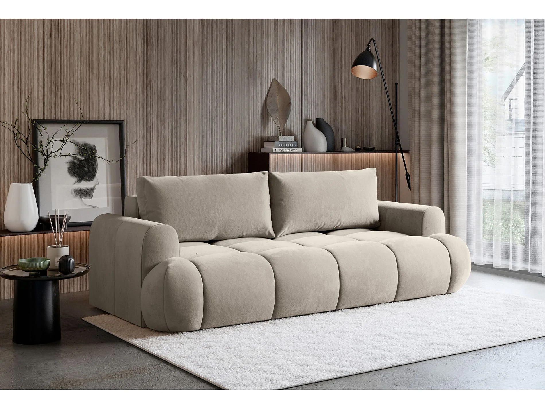 Canapé convertible 3 places – coffre de rangement – tissu velours hydrophobe – Beige – OMBO DOCE