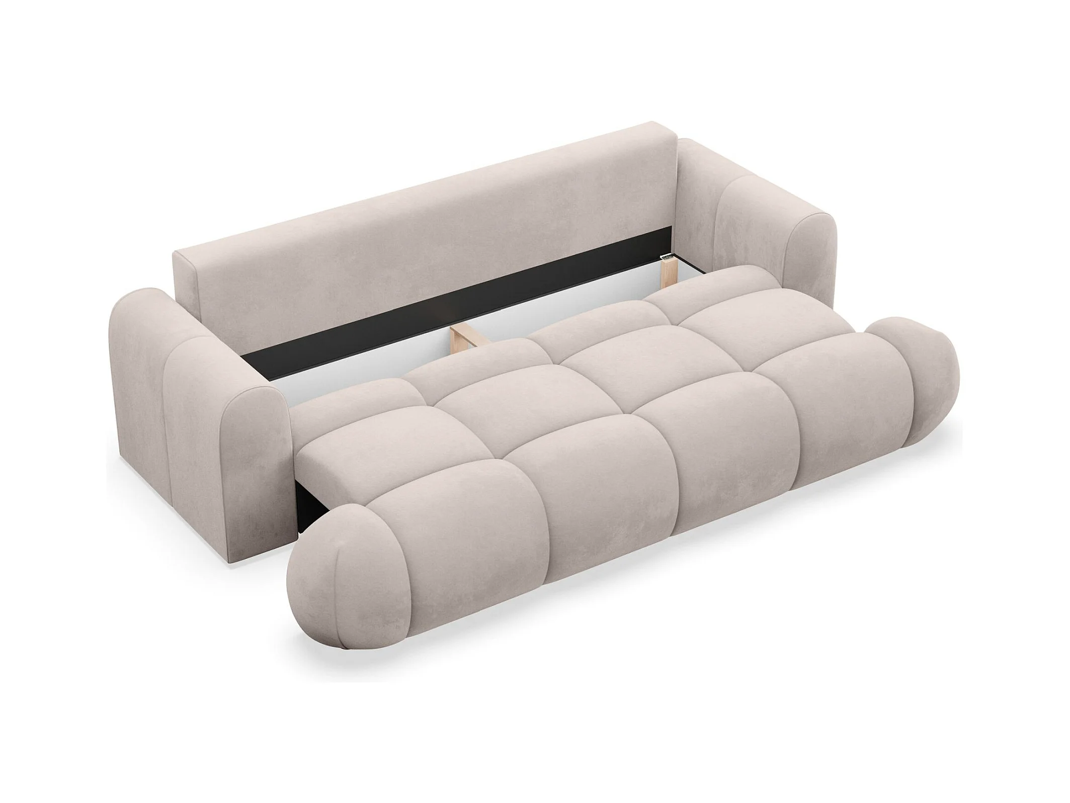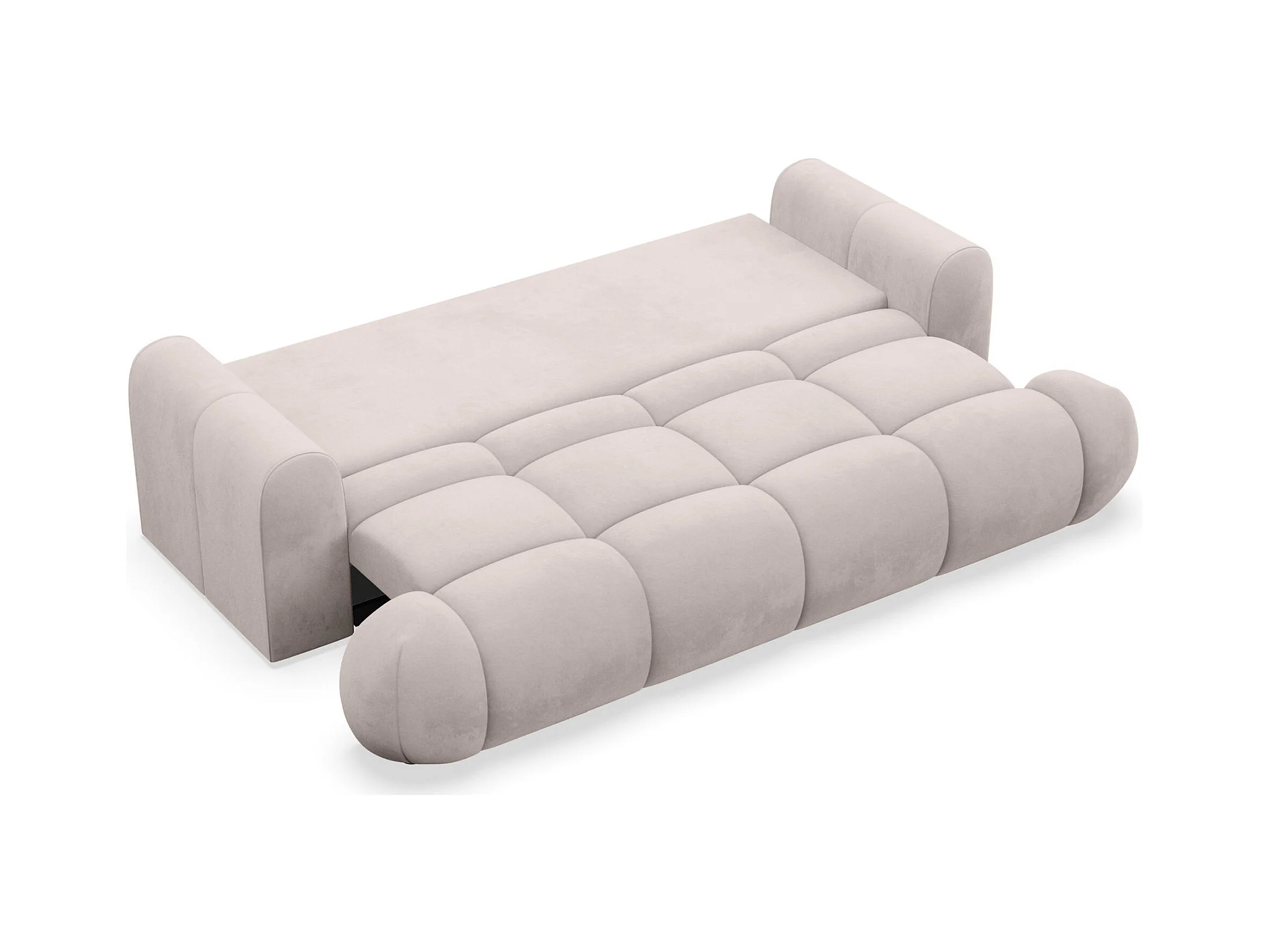 Canapé convertible 3 places – coffre de rangement – tissu velours hydrophobe – Greige – OMBO DOCE