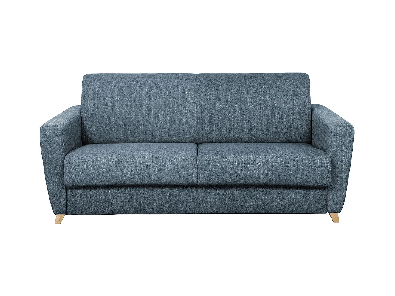 Canapé convertible 3 places en tissu bleu et bois clair avec matelas L140 cm 12 cm GRAHAM