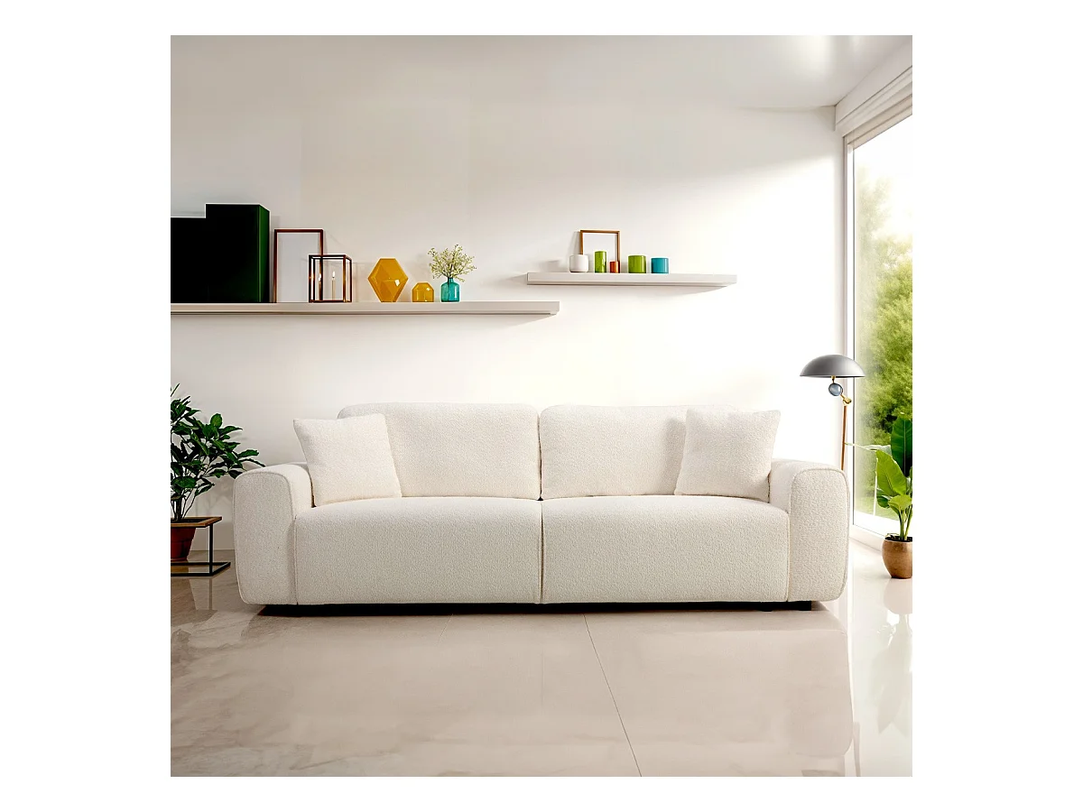 Canapé convertible 3 places en tissu bouclé beige - Grazia