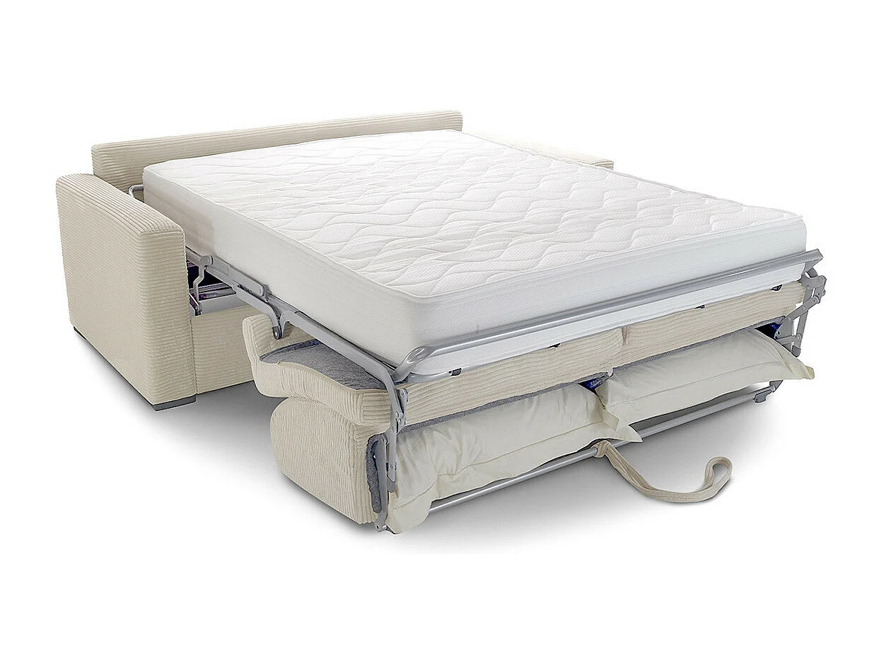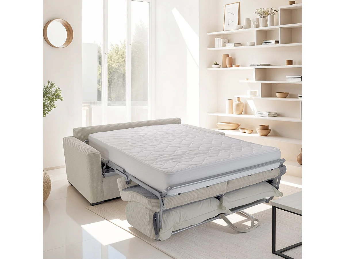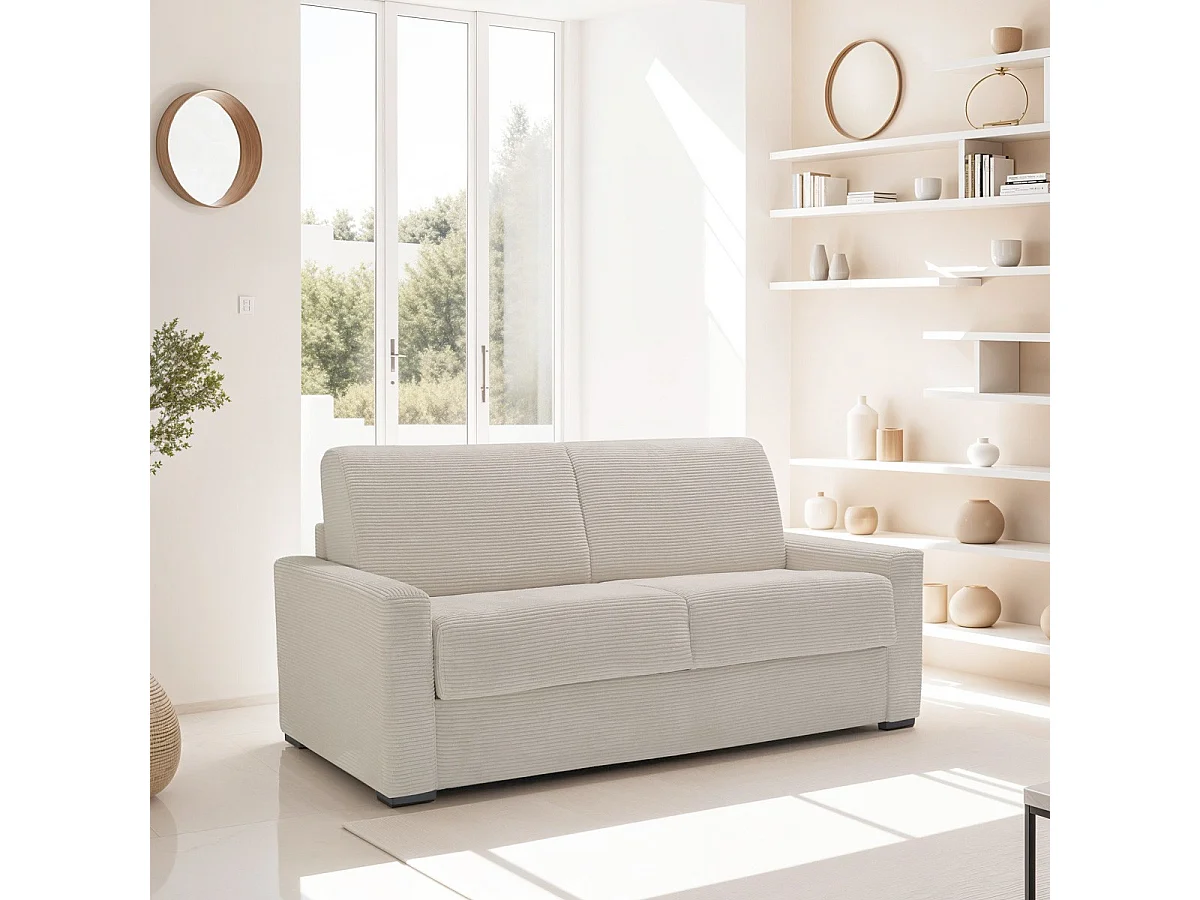 Canapé convertible 3 places en velours côtelé beige - Ouverture express - Anzio