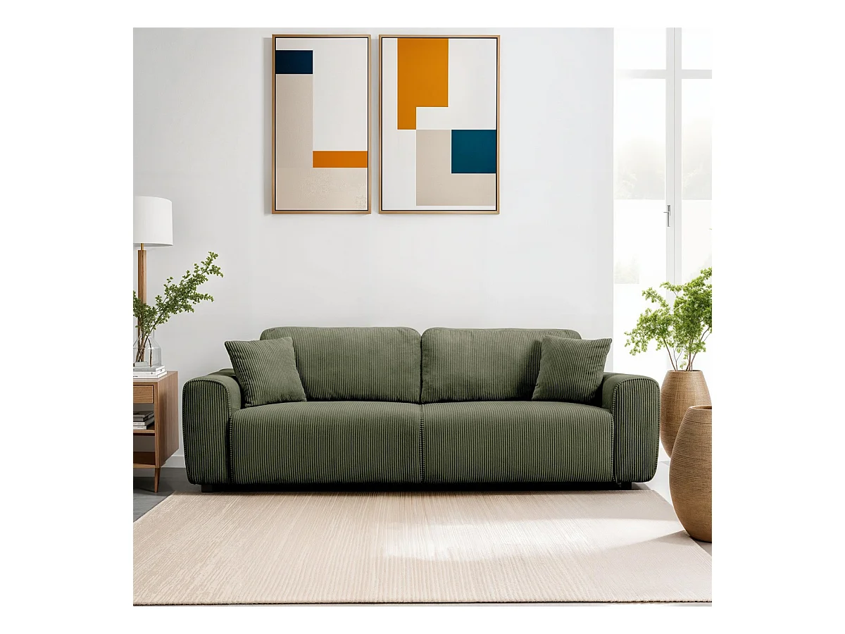 Canapé convertible 3 places en velours côtelé vert kaki - Grazia