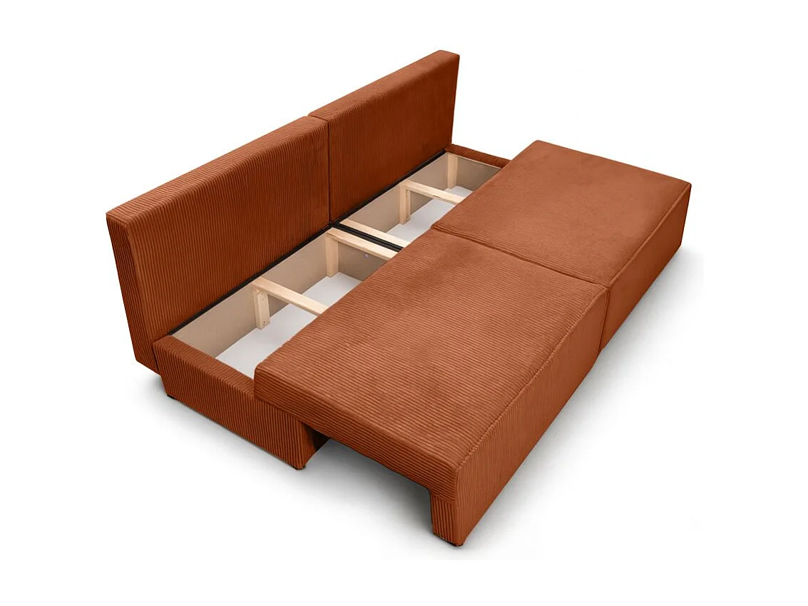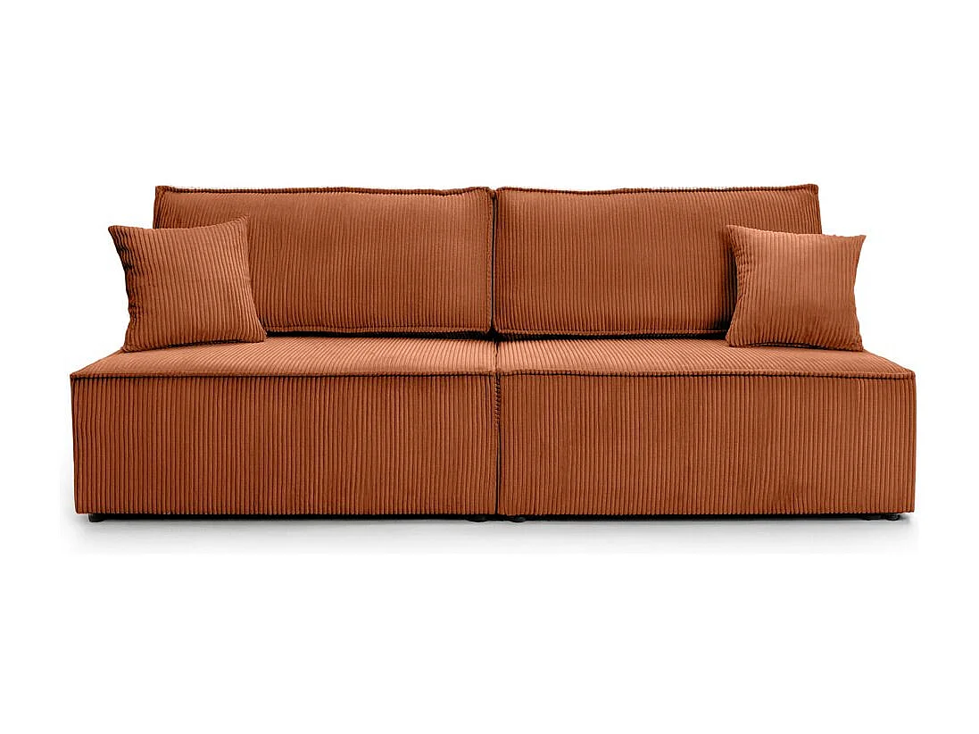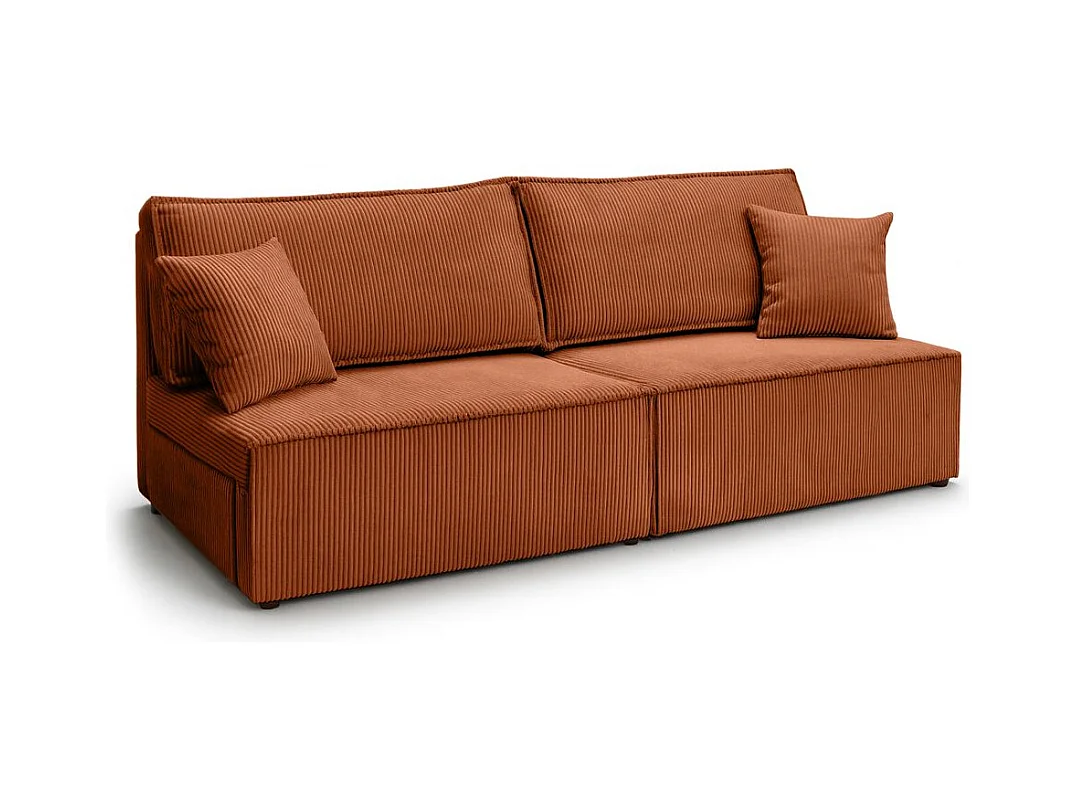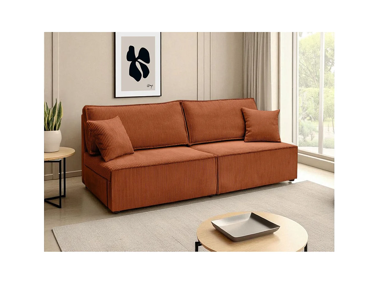 Canapé convertible 3 places FIONA sans accoudoirs coffre de rangement velours côtelé - Terracotta
