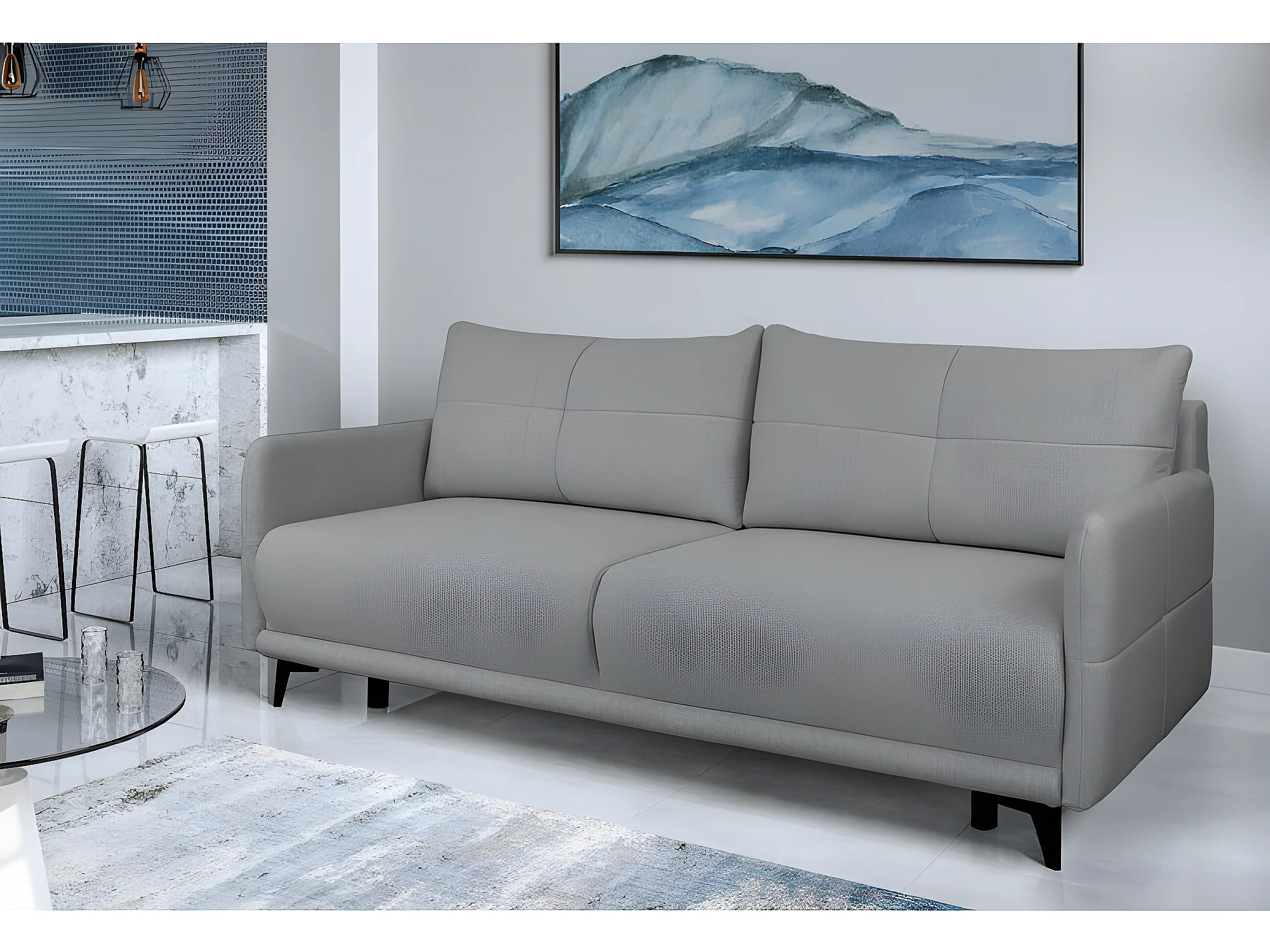 Canapé convertible 3 places tissu ZATEN NEVE85 210x99cm ton gris