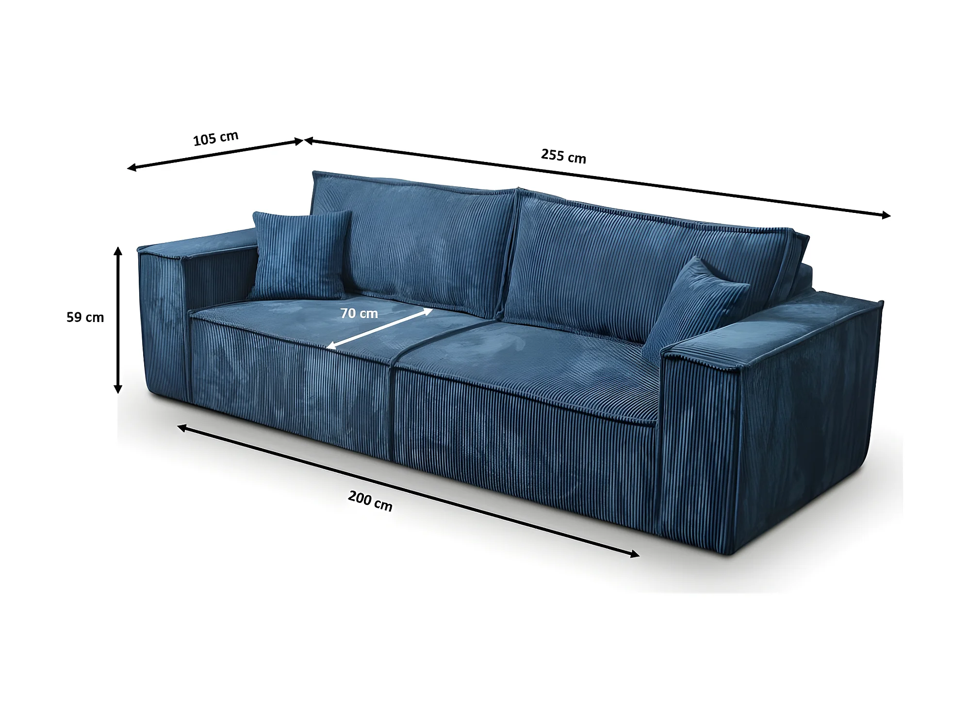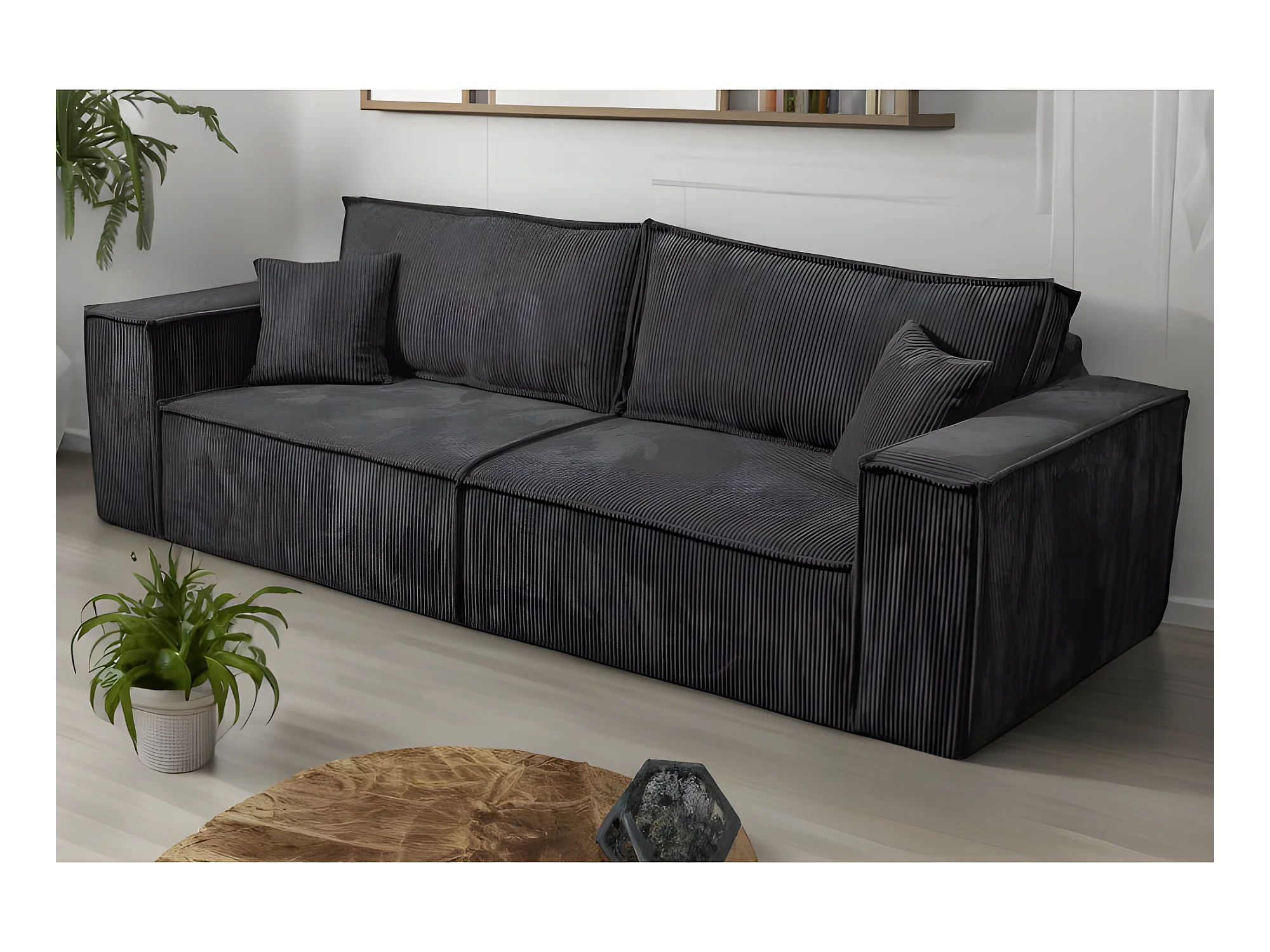 Canapé convertible 3 places VELLA en velours côtelé noir