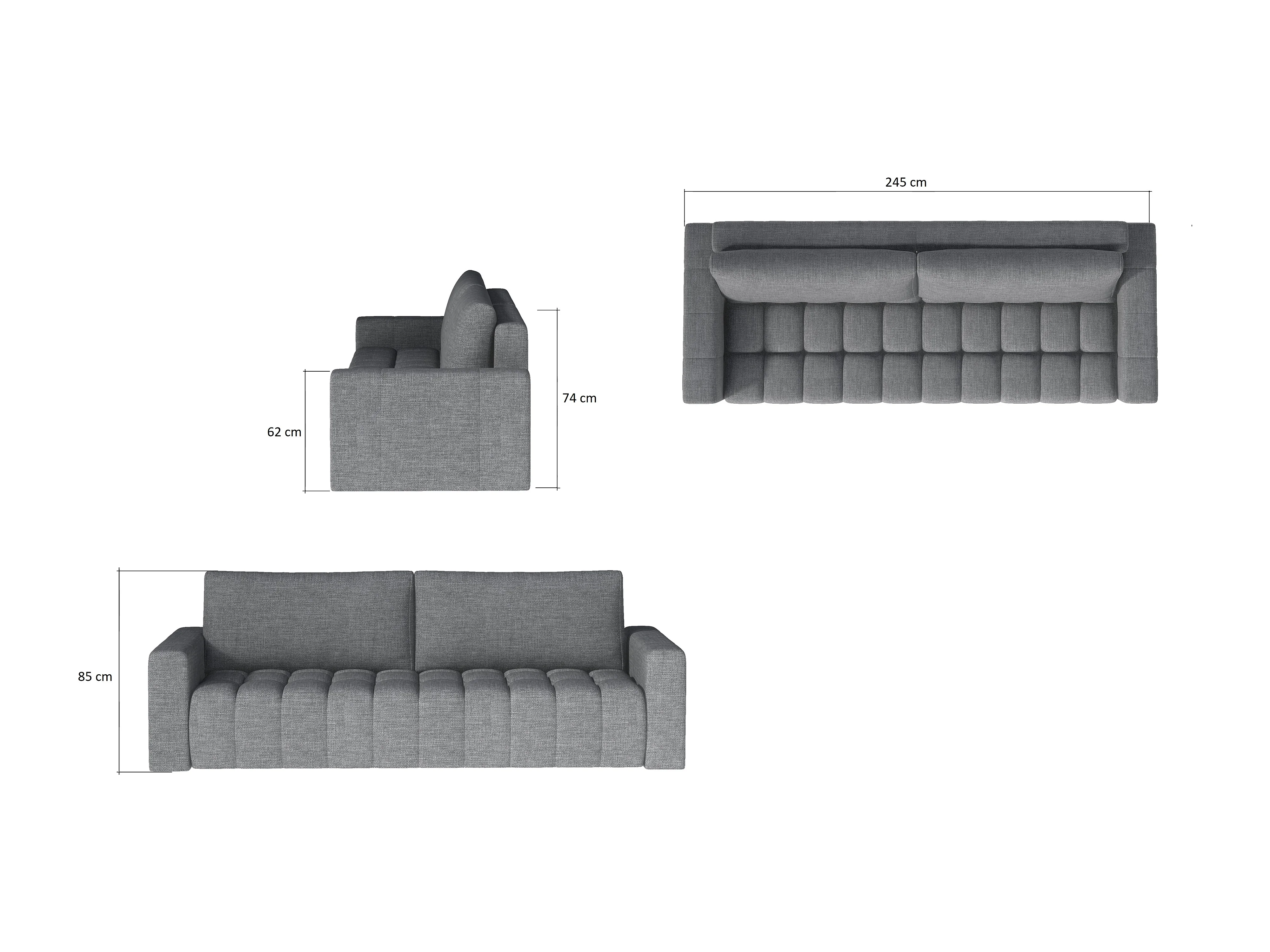 Canapé convertible 3 places velours marron clair avec coffre de rangement Larko 245cm
