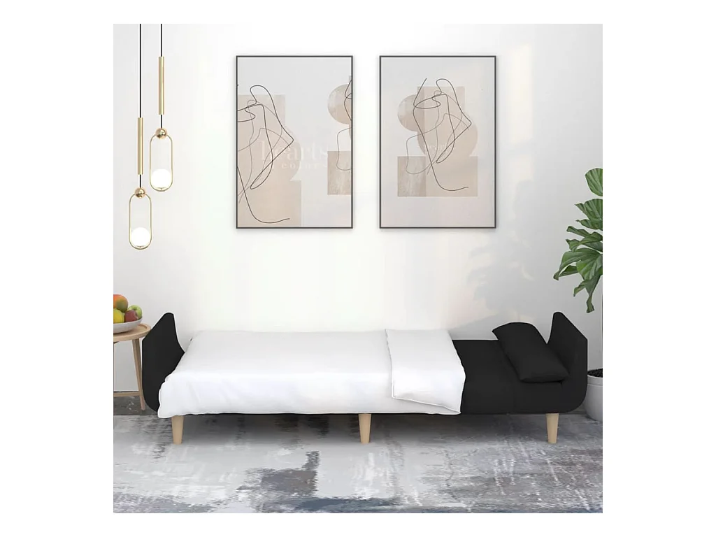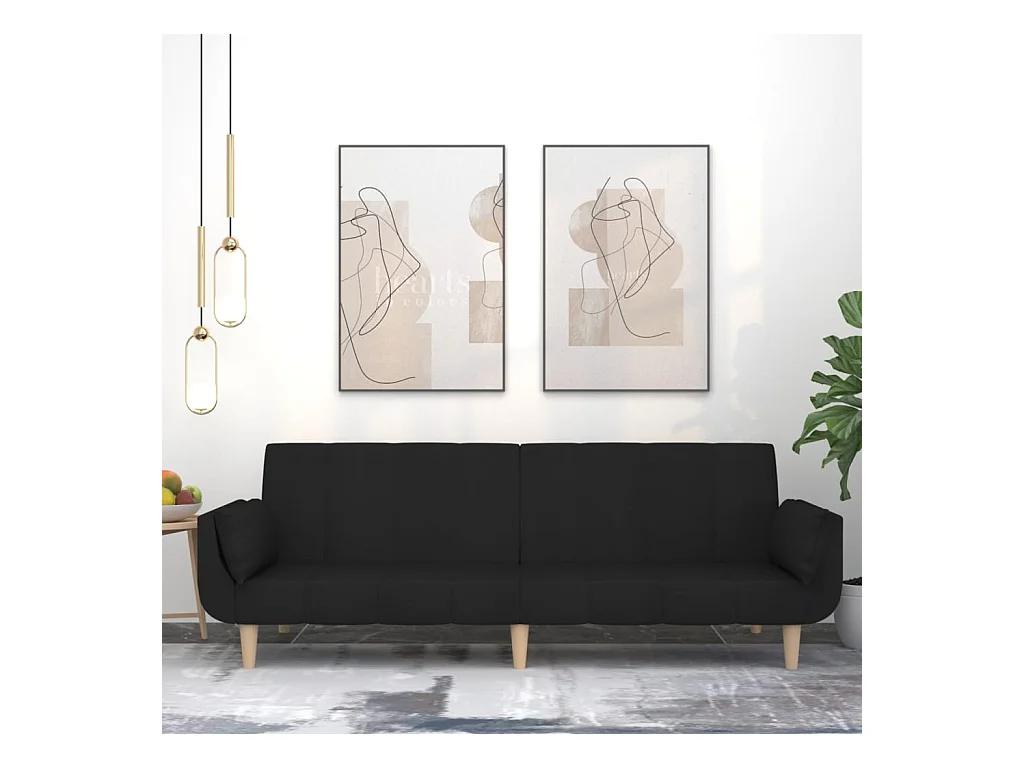 Canapé convertible à 2 places avec deux oreillers noir tissu FR90284