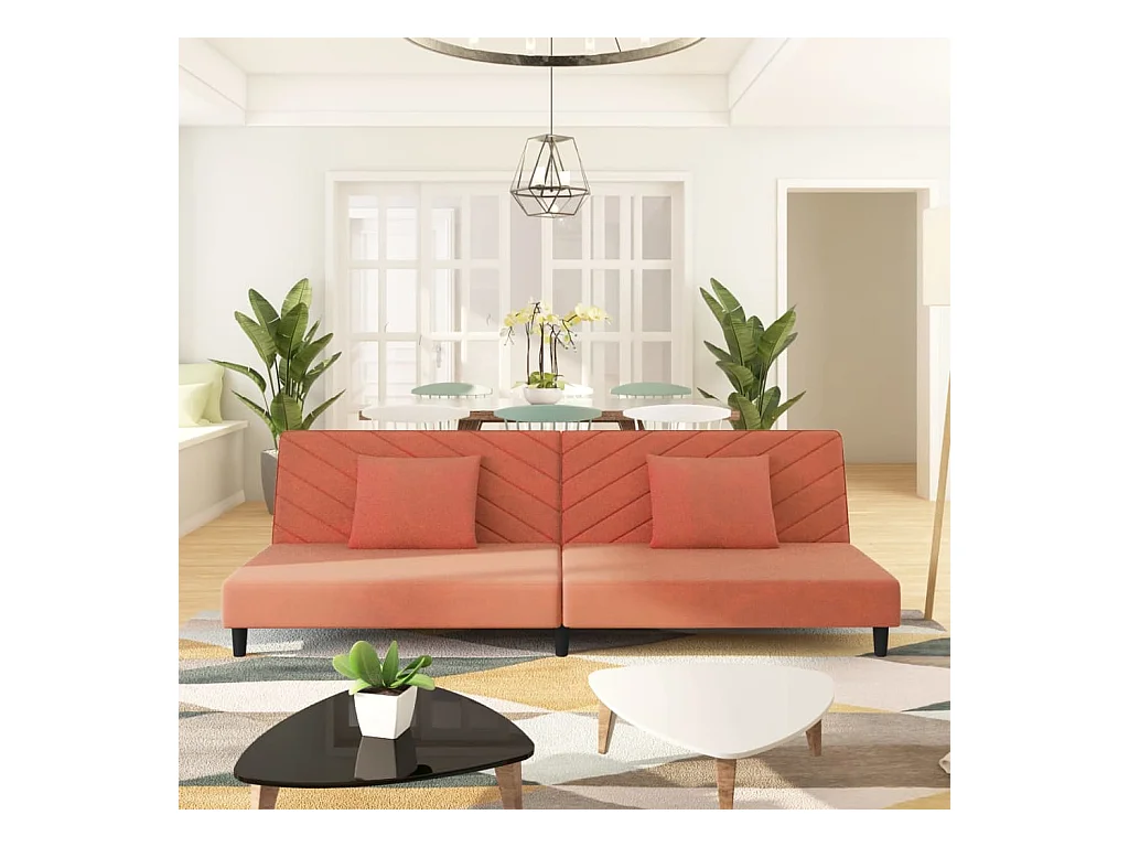 Canapé convertible à 2 places avec deux oreillers Rose Velours REO30720