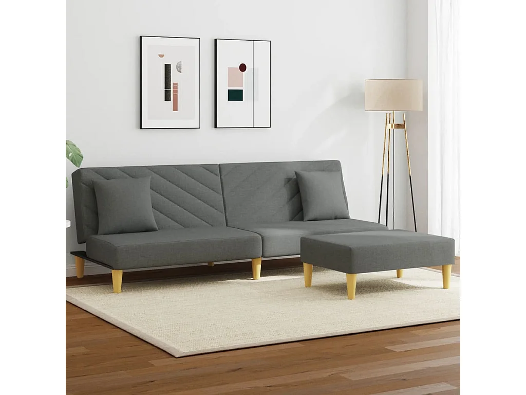 Canapé convertible à 2 places avec oreillers et repose-pied gris foncé FR18216