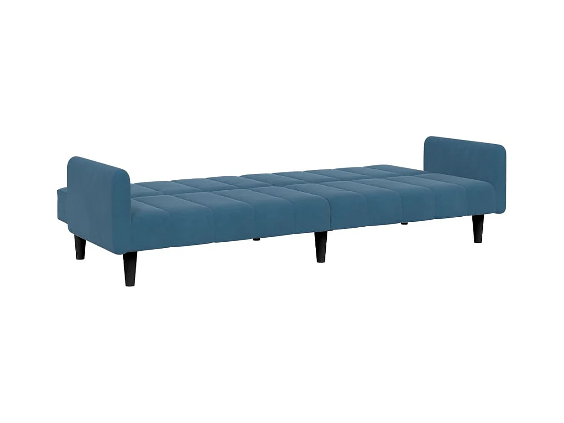 Canapé convertible à 2 places avec repose-pied bleu velours FR83154