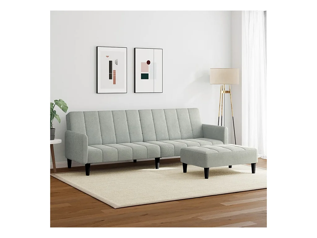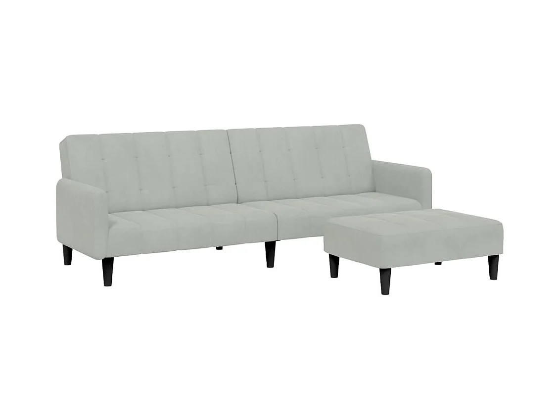 Canapé convertible à 2 places avec repose-pied gris clair velours FR22091