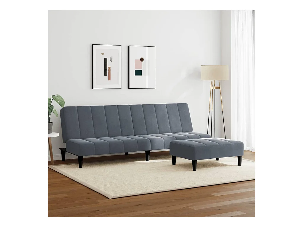 Canapé convertible à 2 places avec repose-pied gris foncé velours FR17771