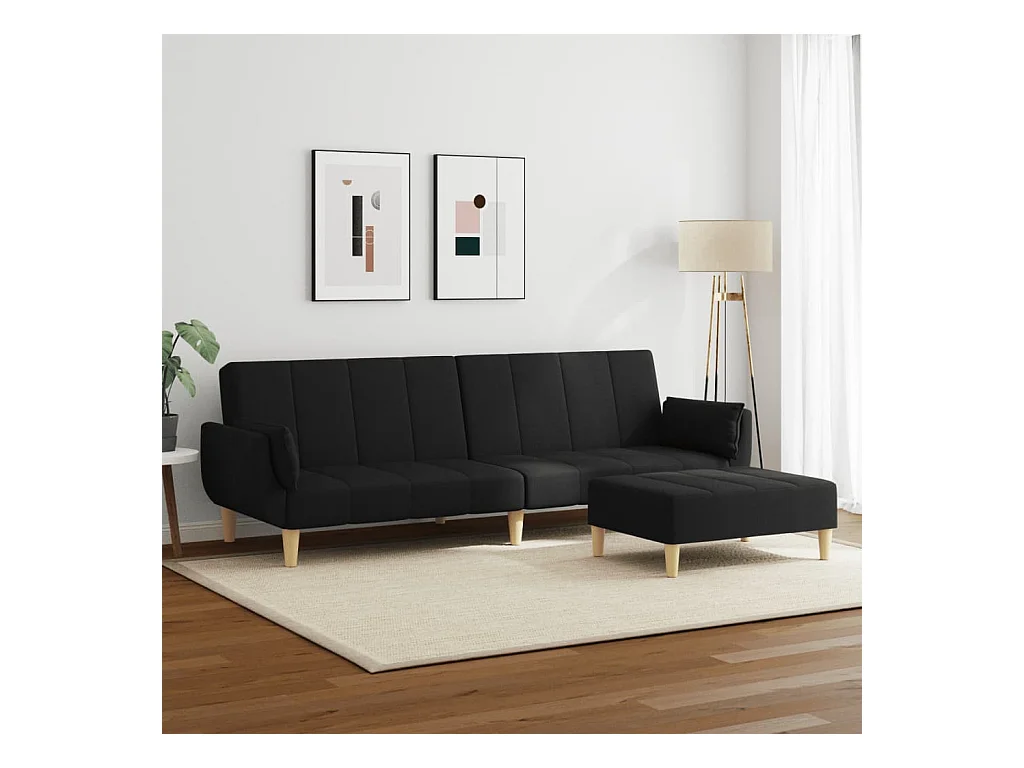 Canapé convertible à 2 places avec repose-pied noir tissu FR92238