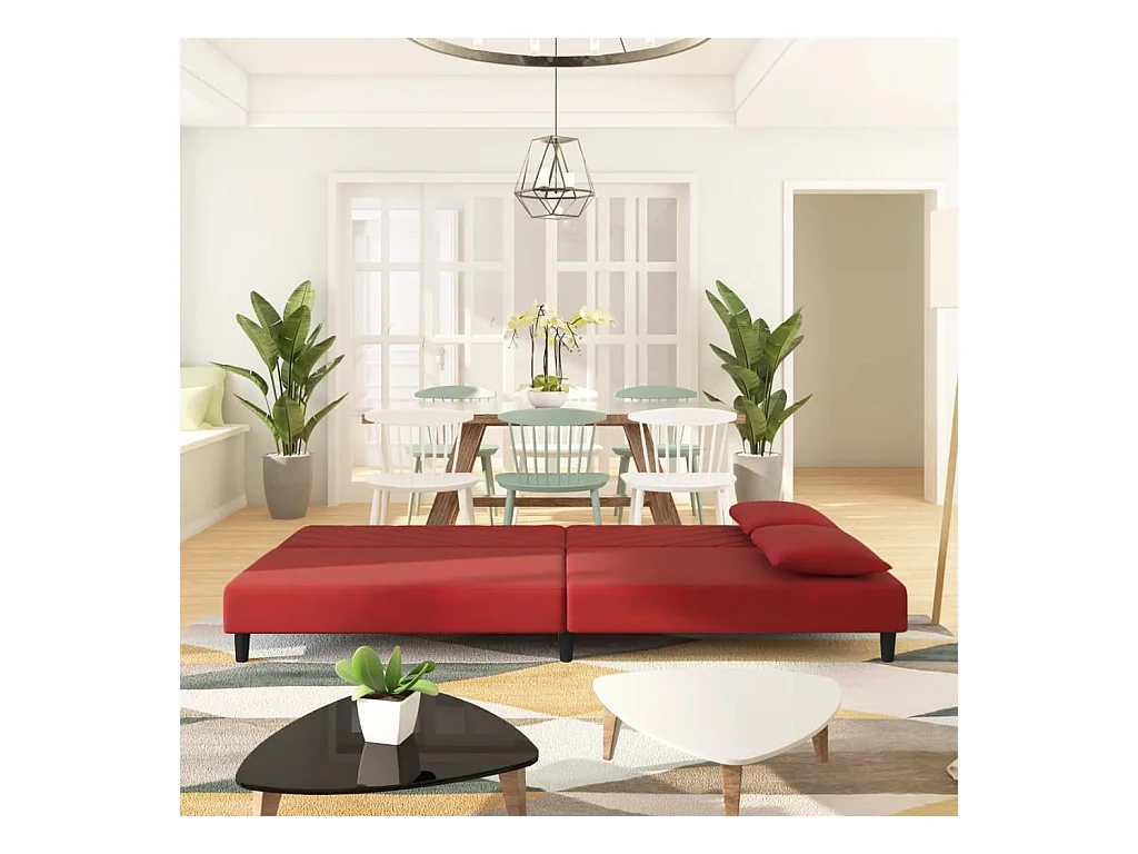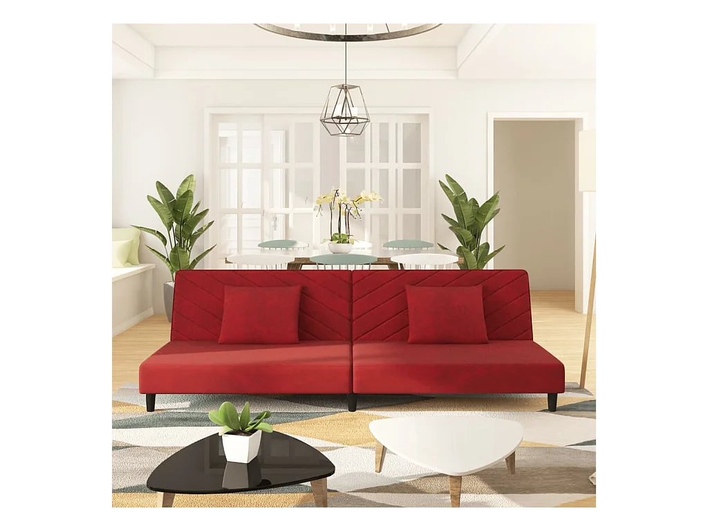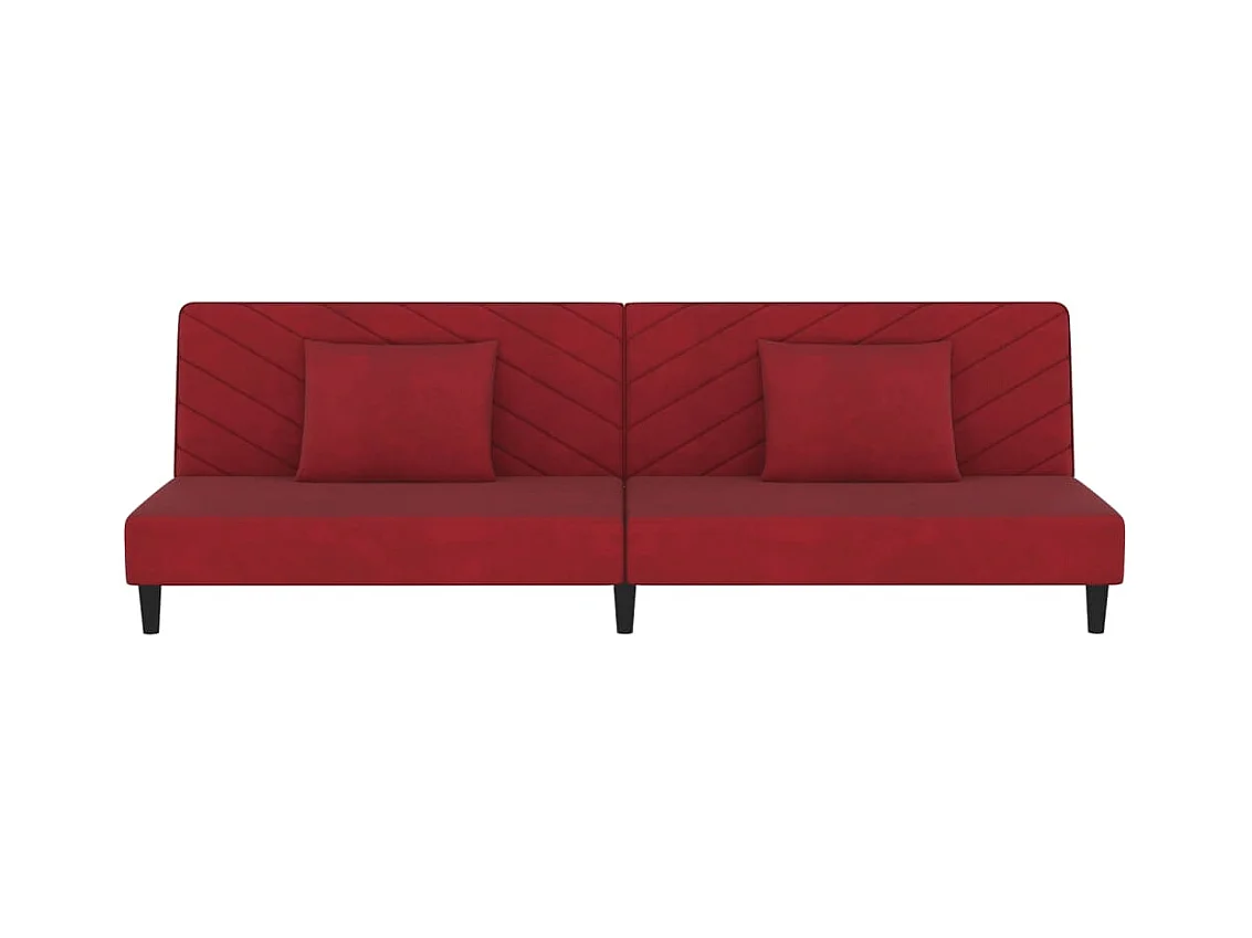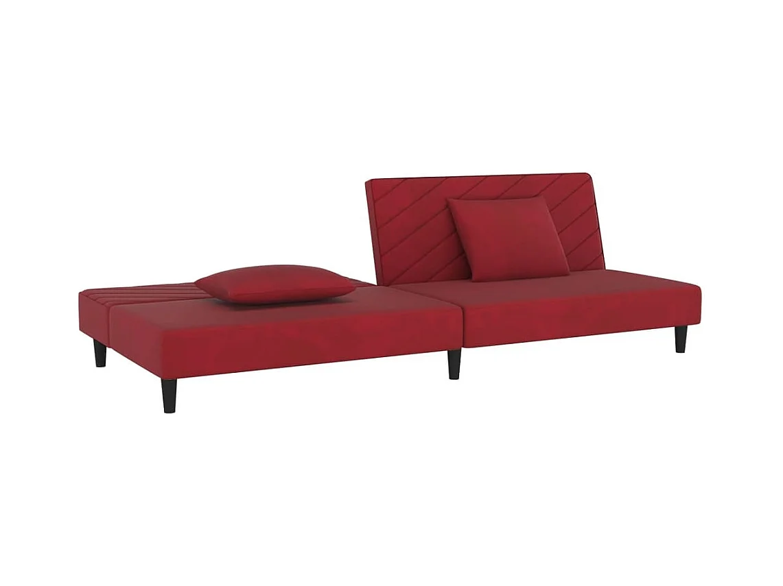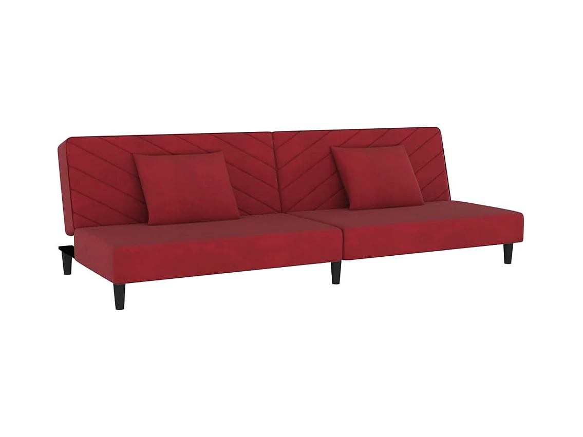 Canapé convertible à 2 places et deux oreillers Rouge bordeaux Velours REO27524