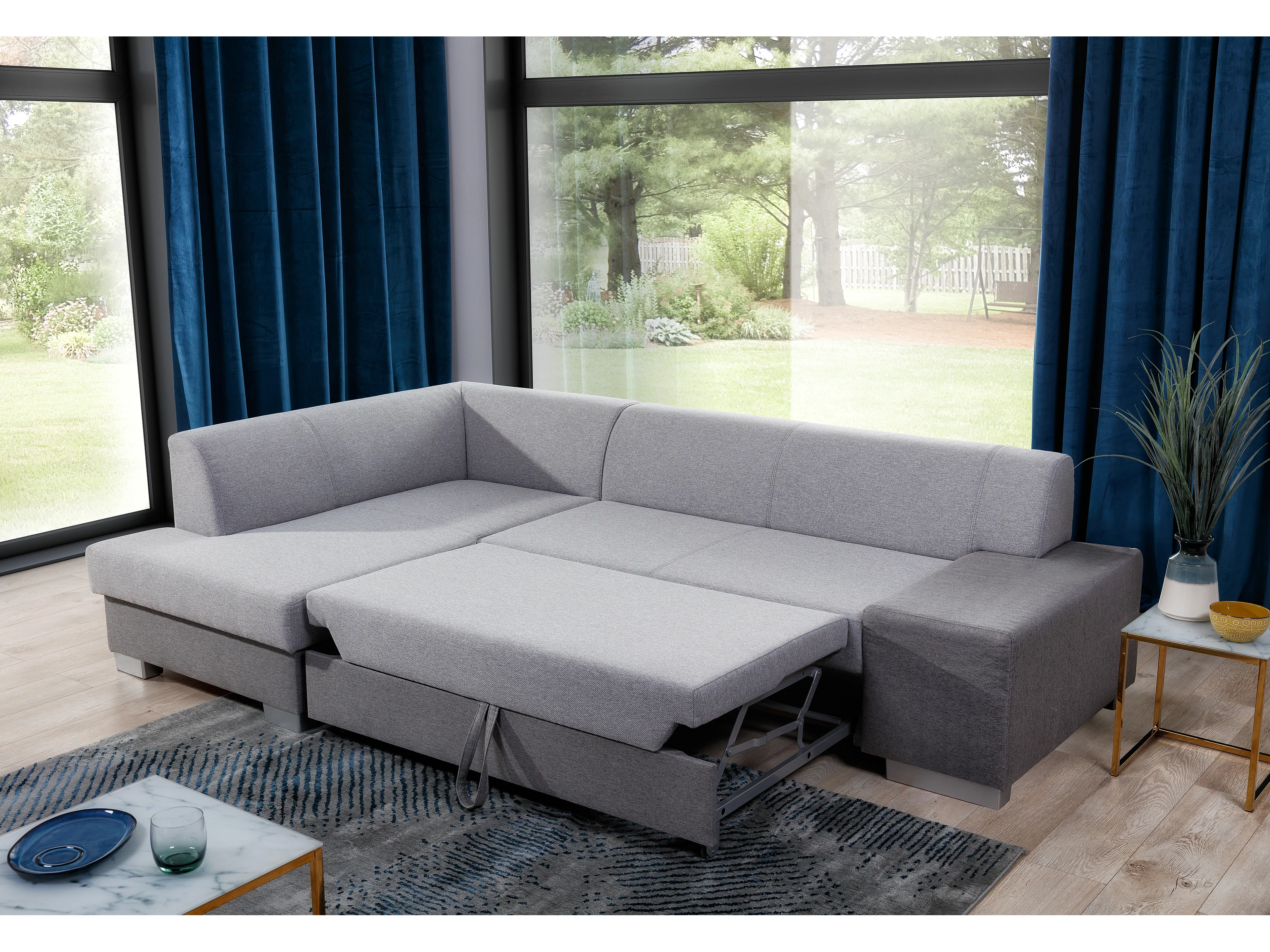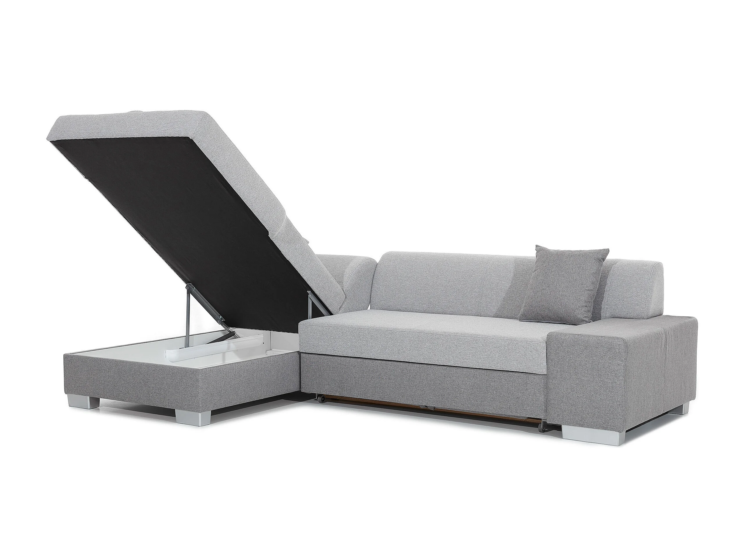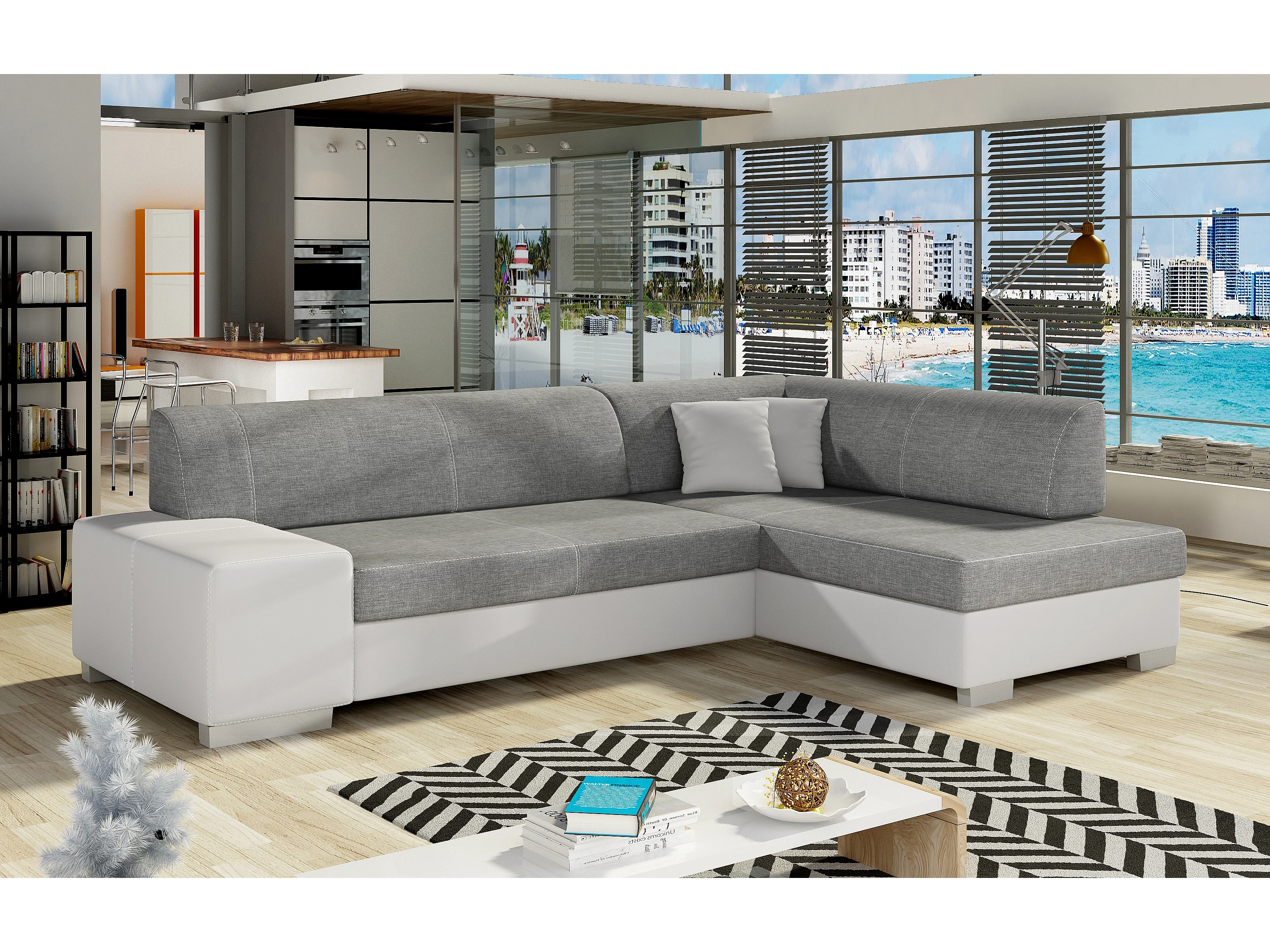 Canapé convertible angle droit simili cuir blanc et tissu gris Polky 272cm