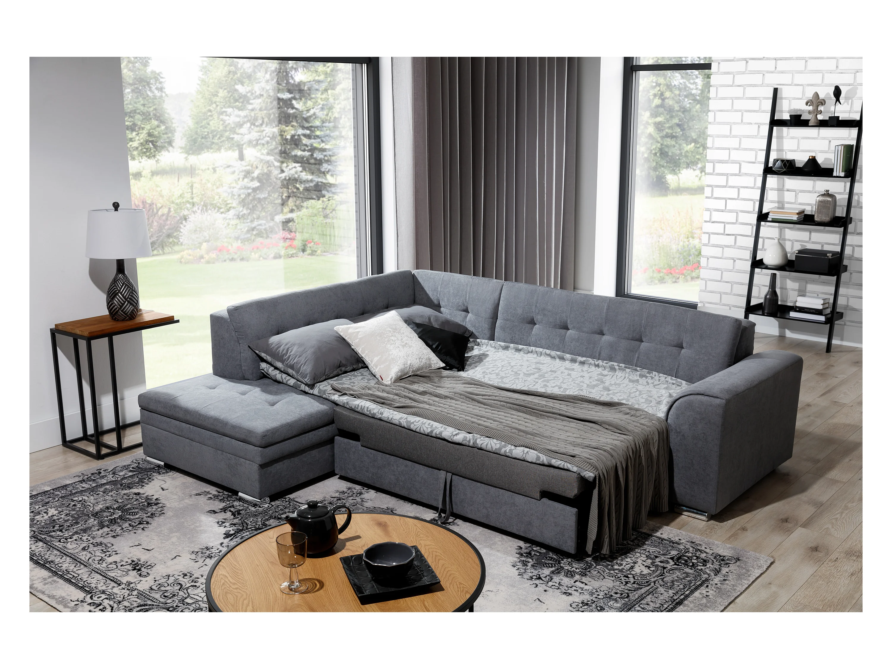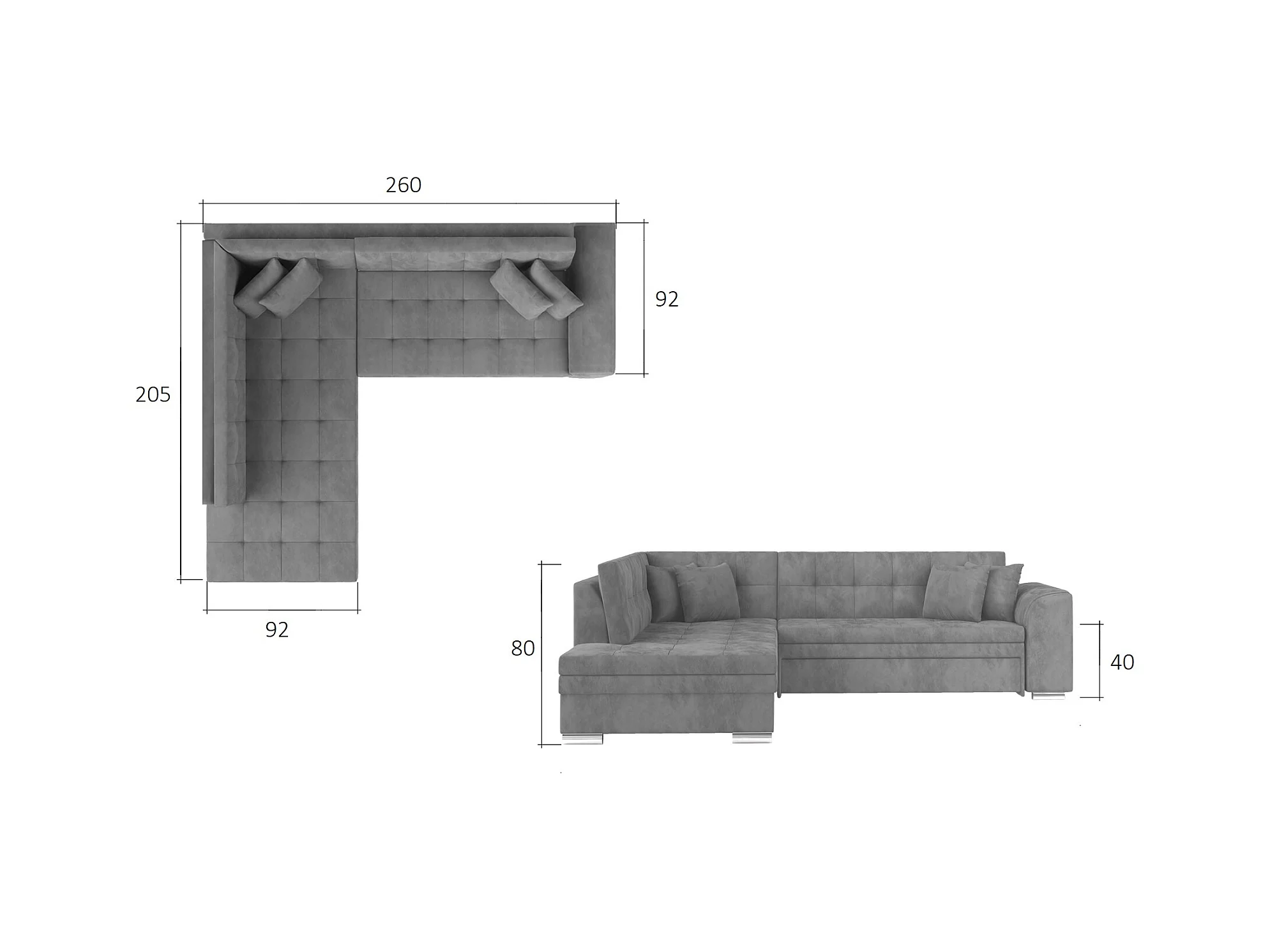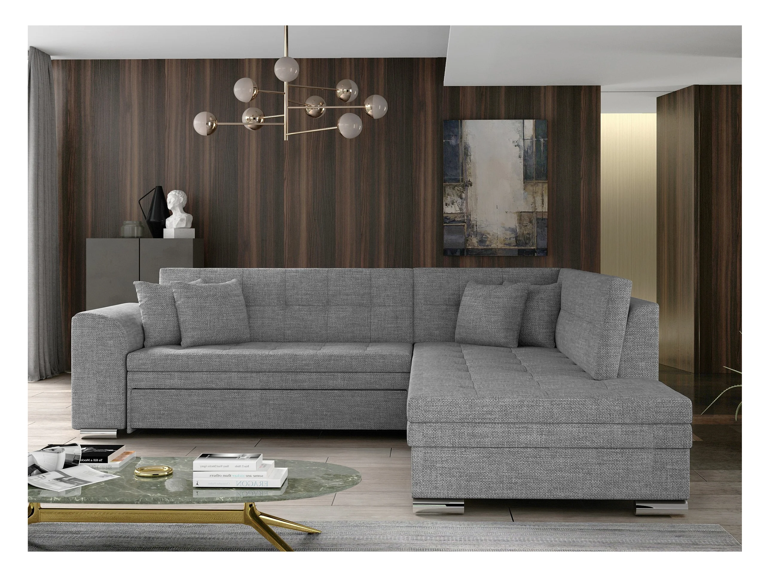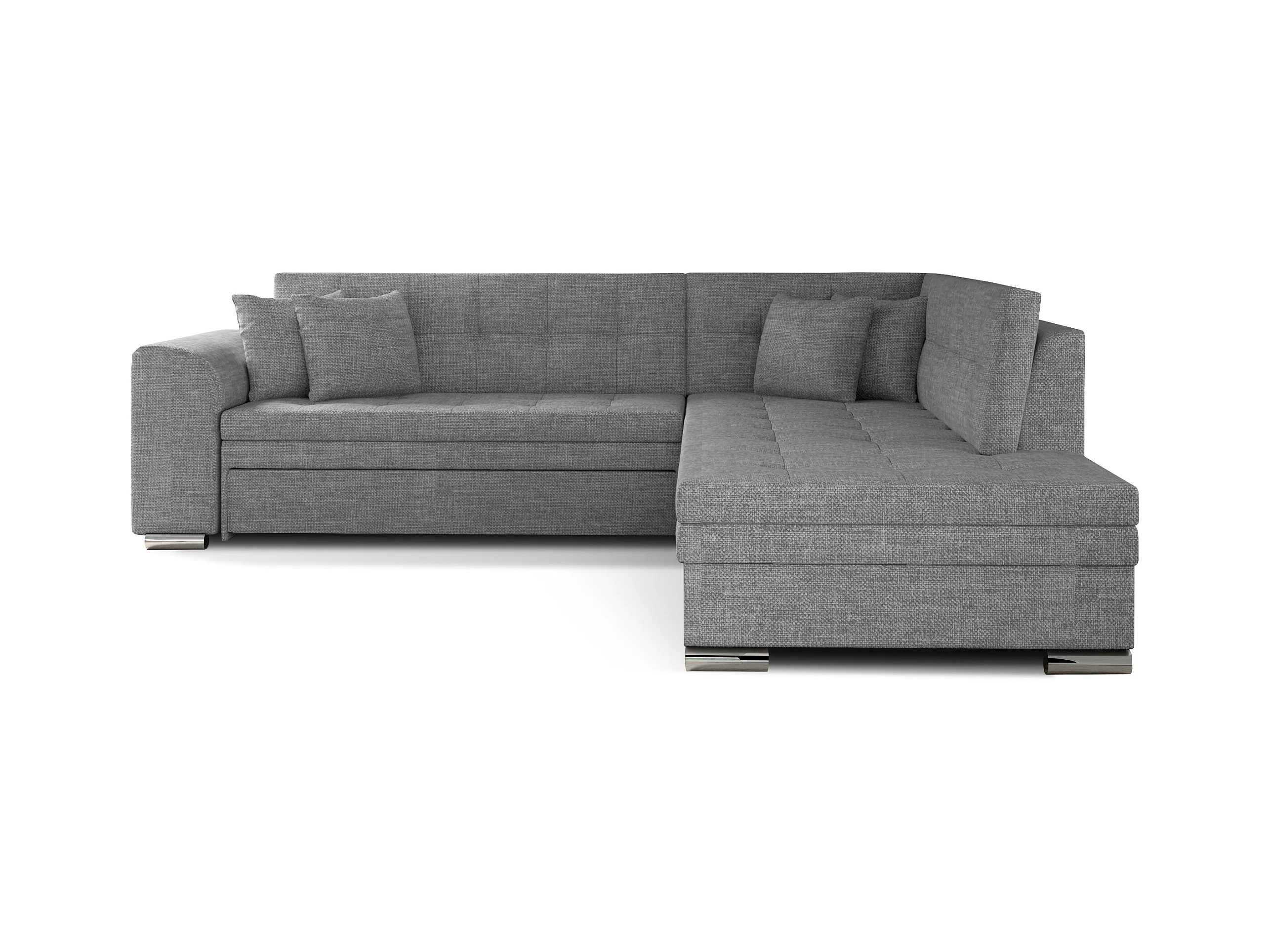 Canapé convertible angle droit tissu gris clair et chromé Pika 260cm