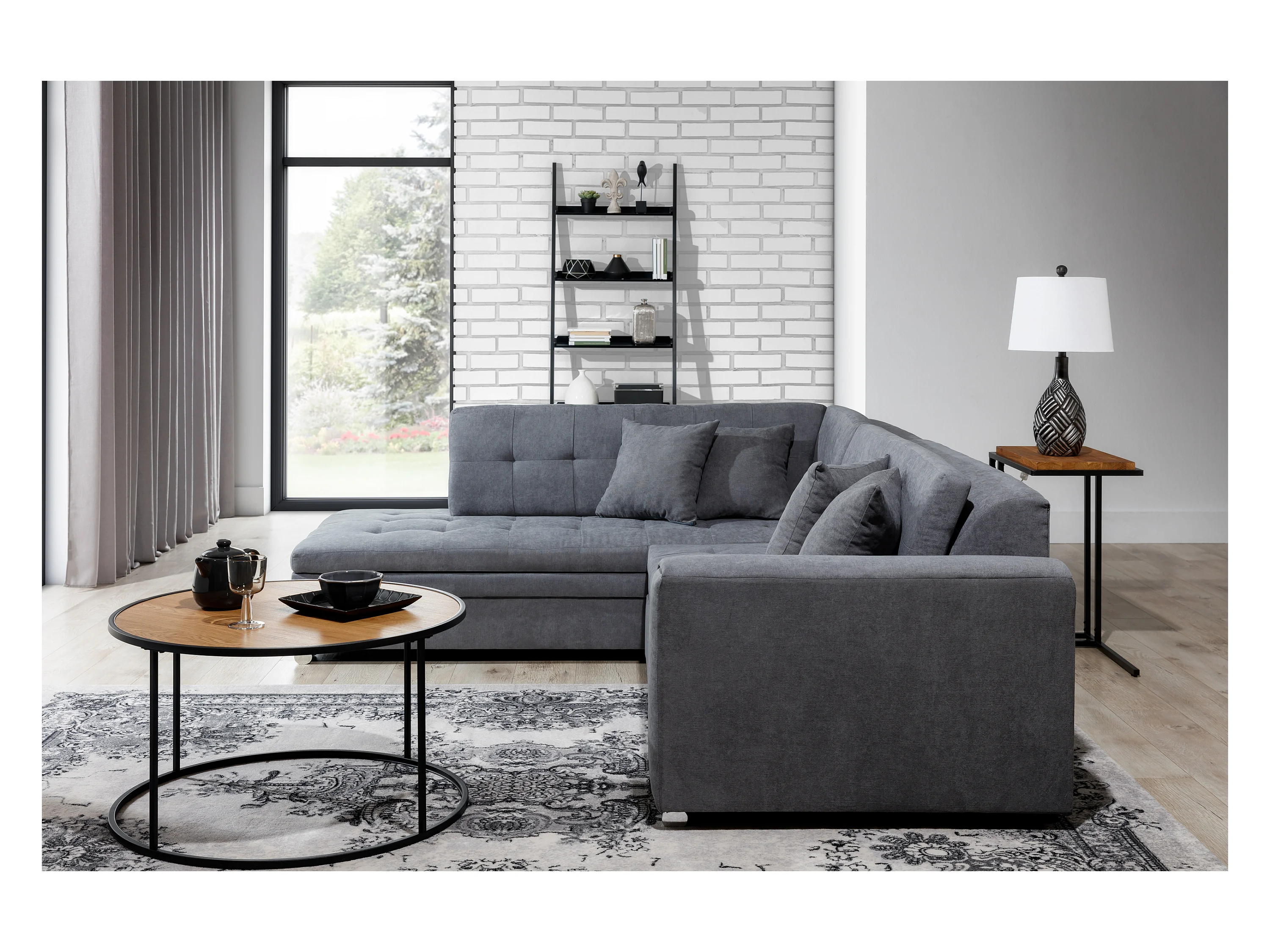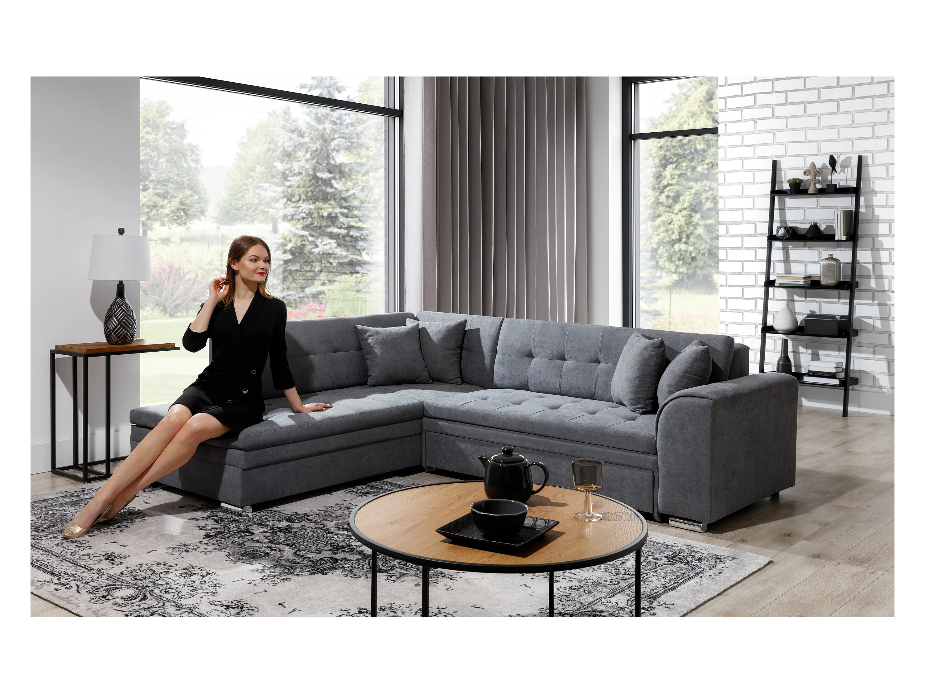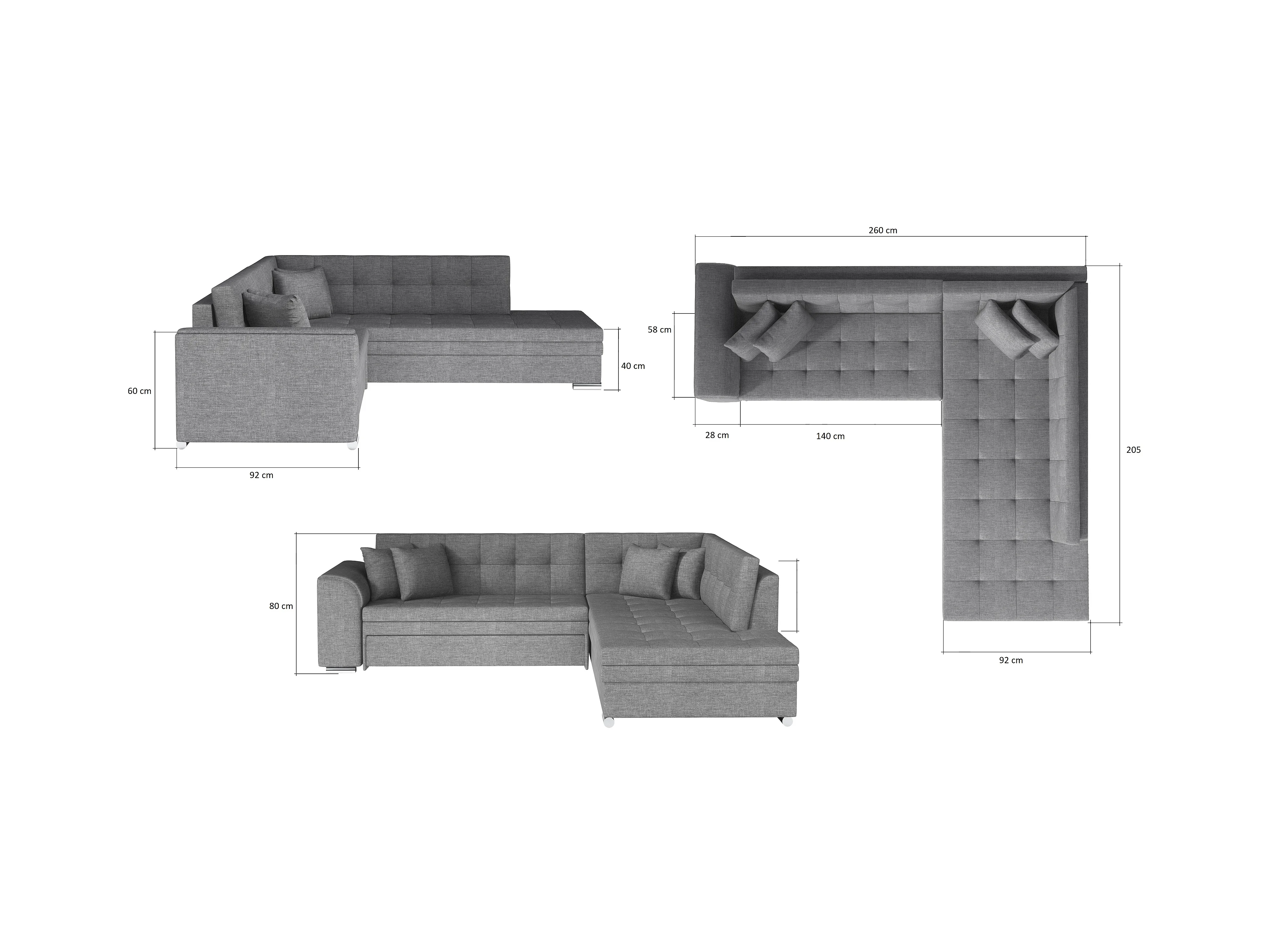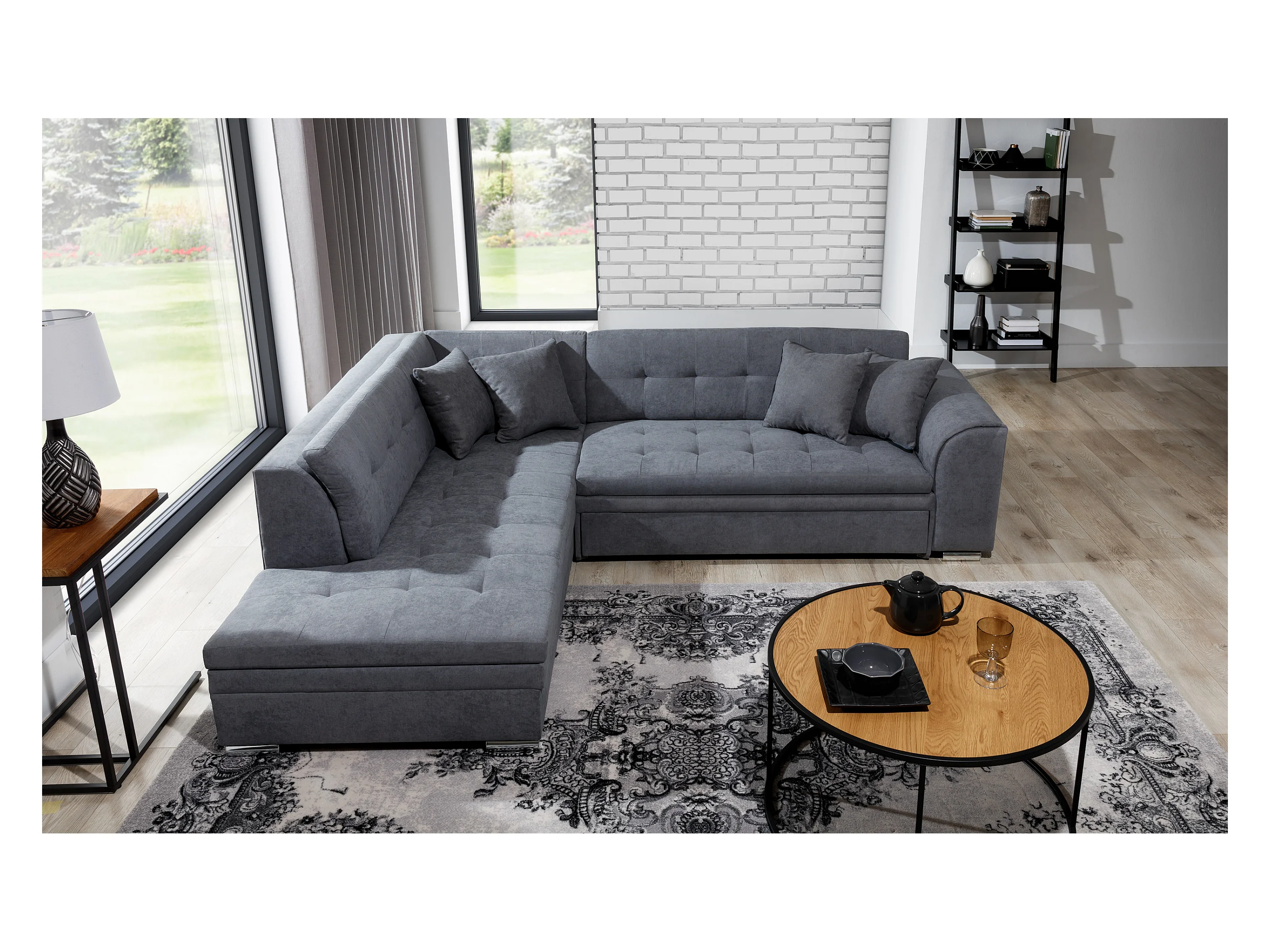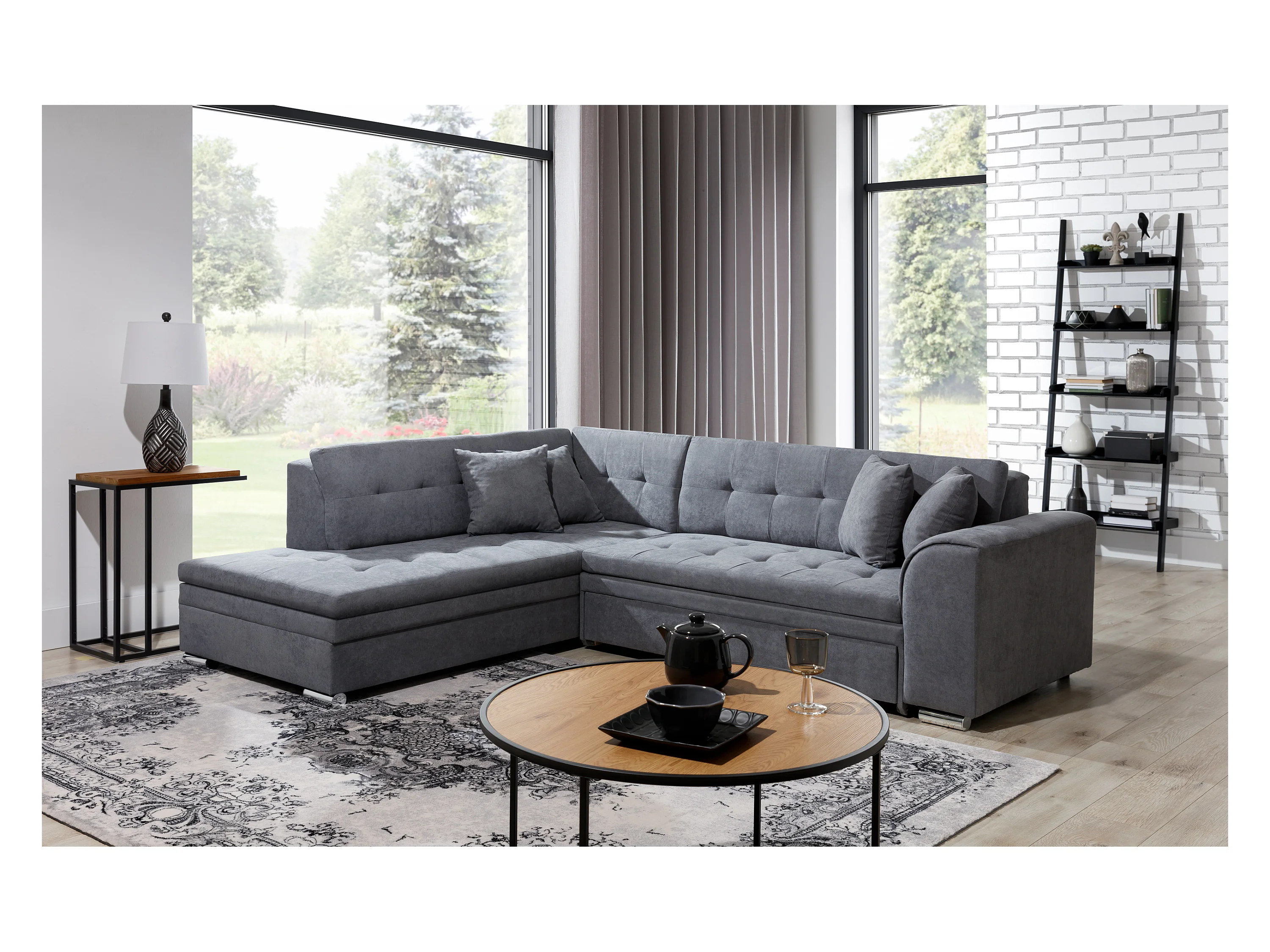 Canapé convertible angle droit tissu gris clair et chromé Pika 260cm