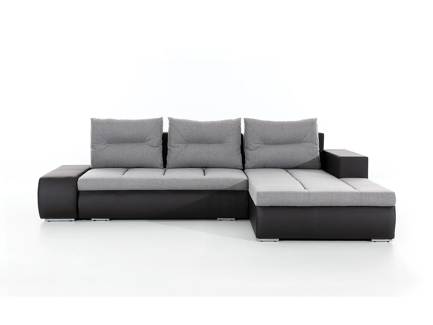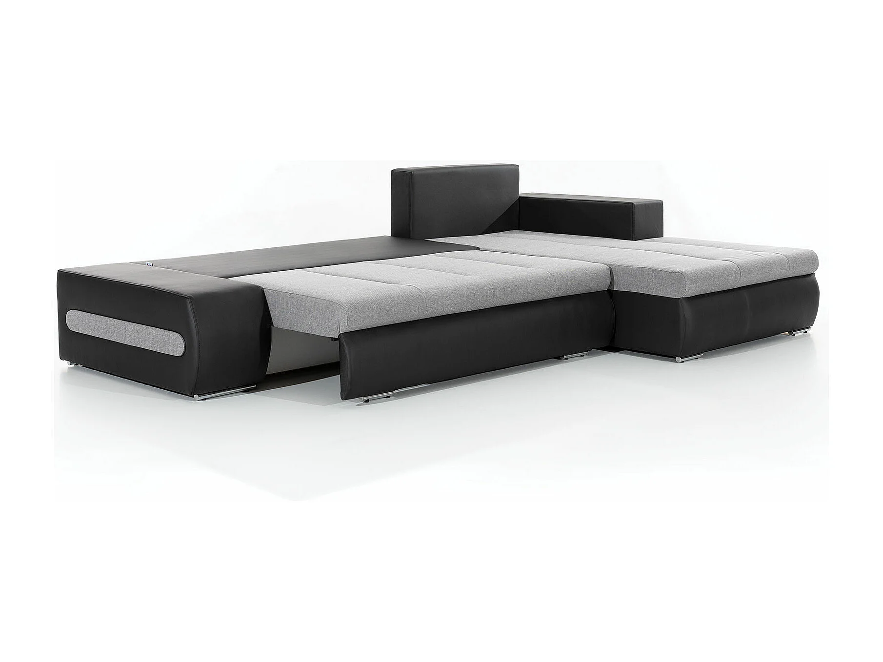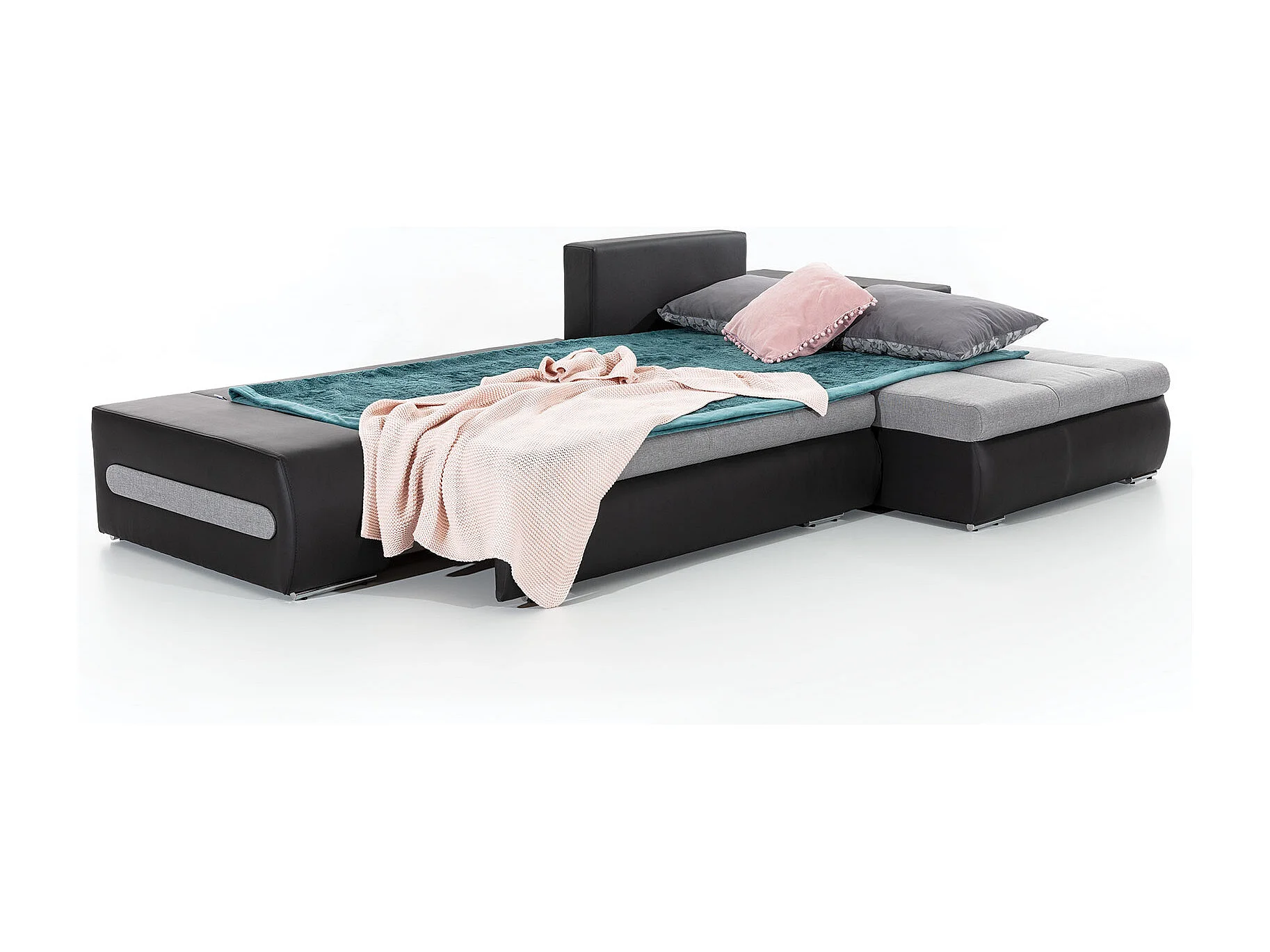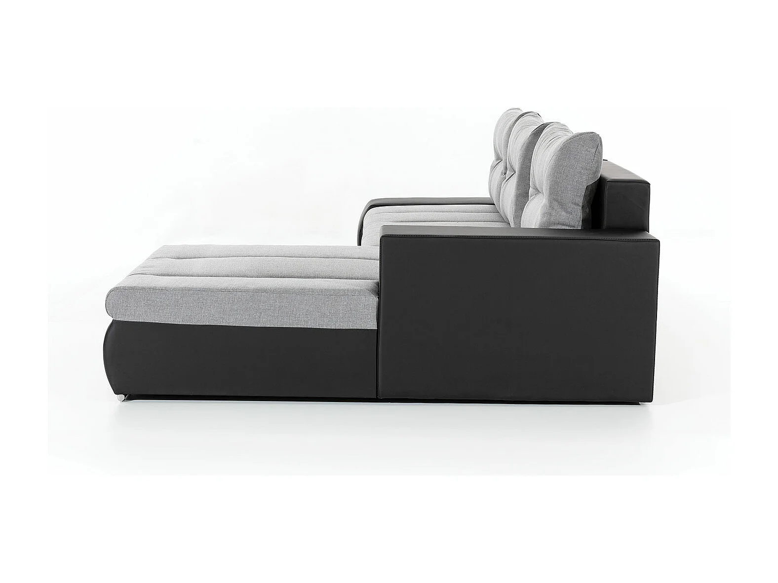 Canapé convertible angle droit tissu gris clair et simili noir Waker 275cm
