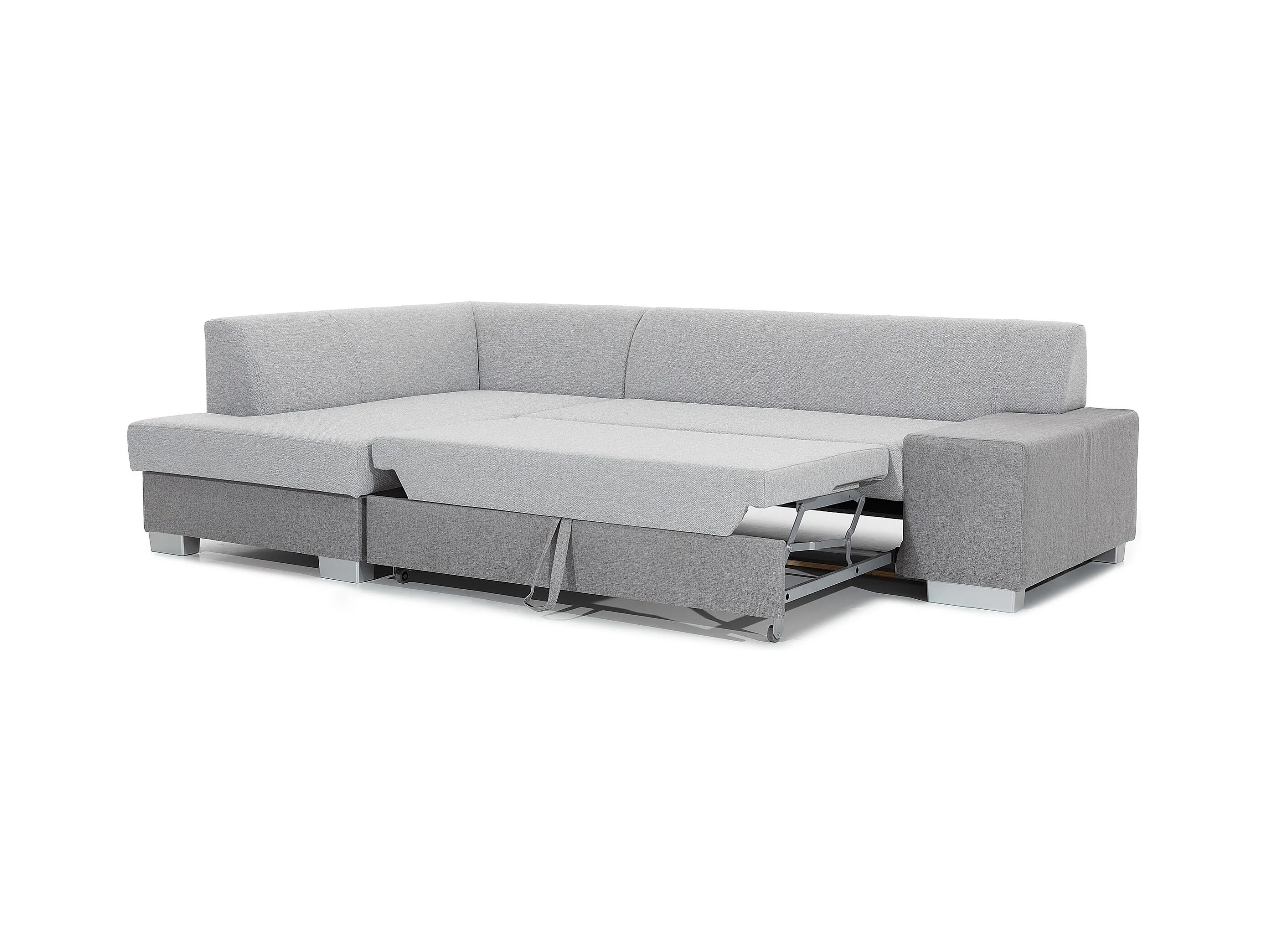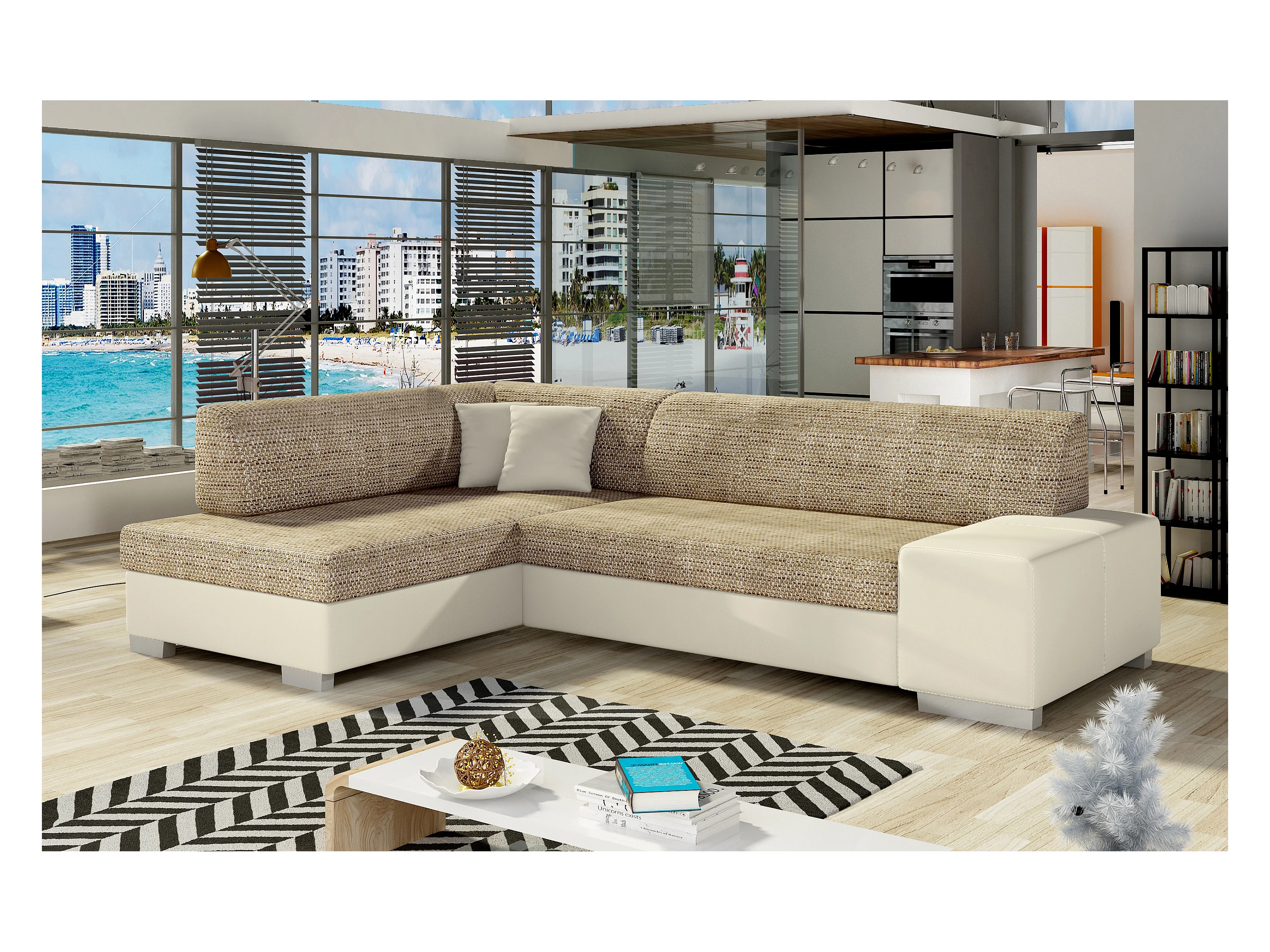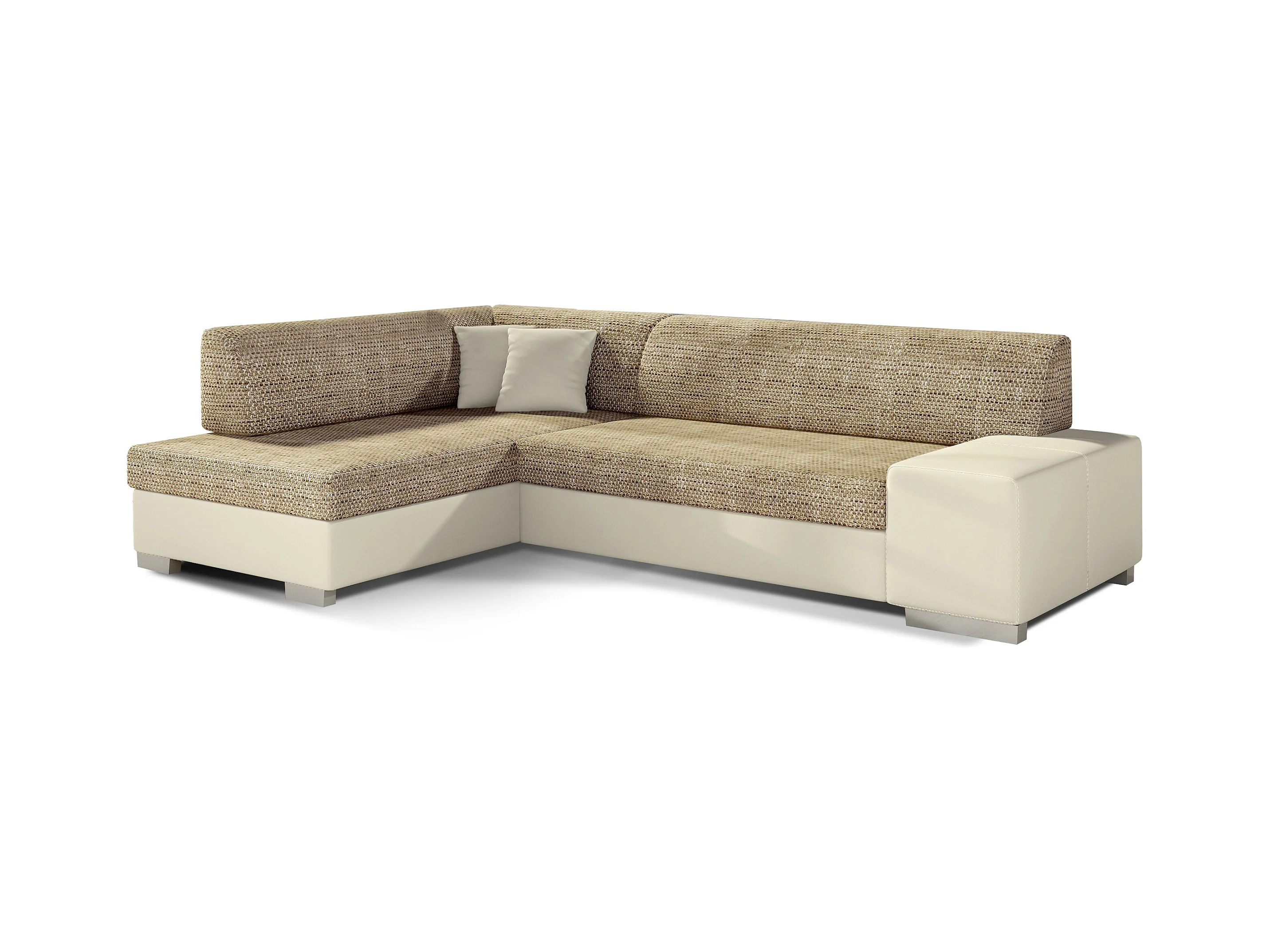 Canapé convertible angle gauche simili cuir beige et tissu beige clair chiné Polky 272cm