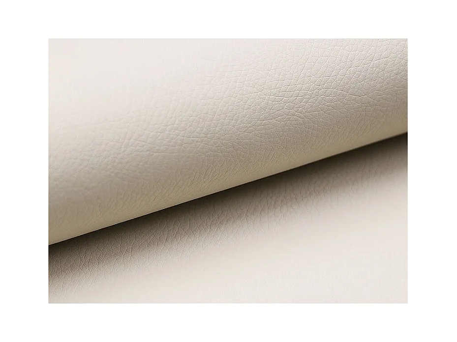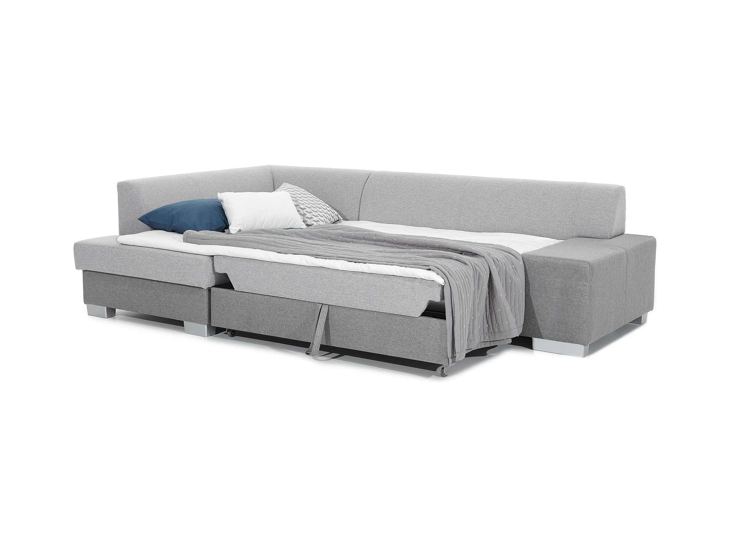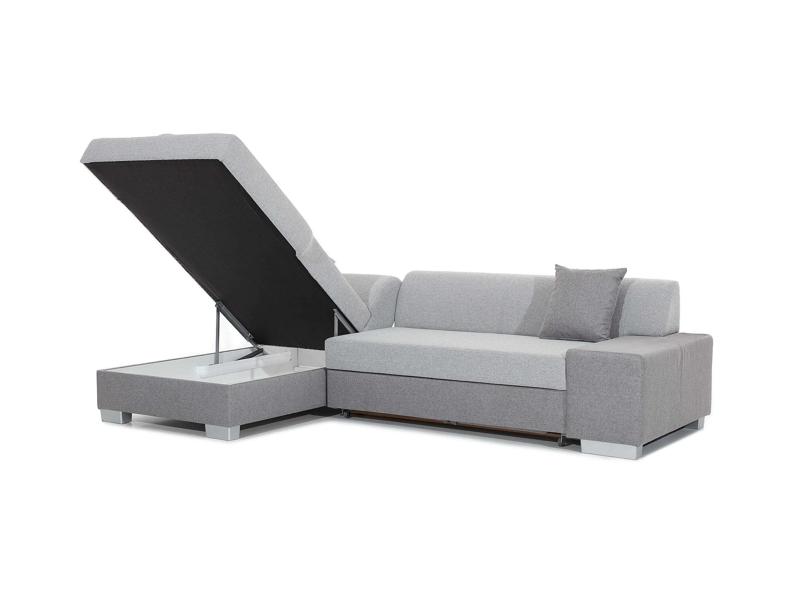 Canapé convertible angle gauche simili cuir beige et tissu beige clair chiné Polky 272cm