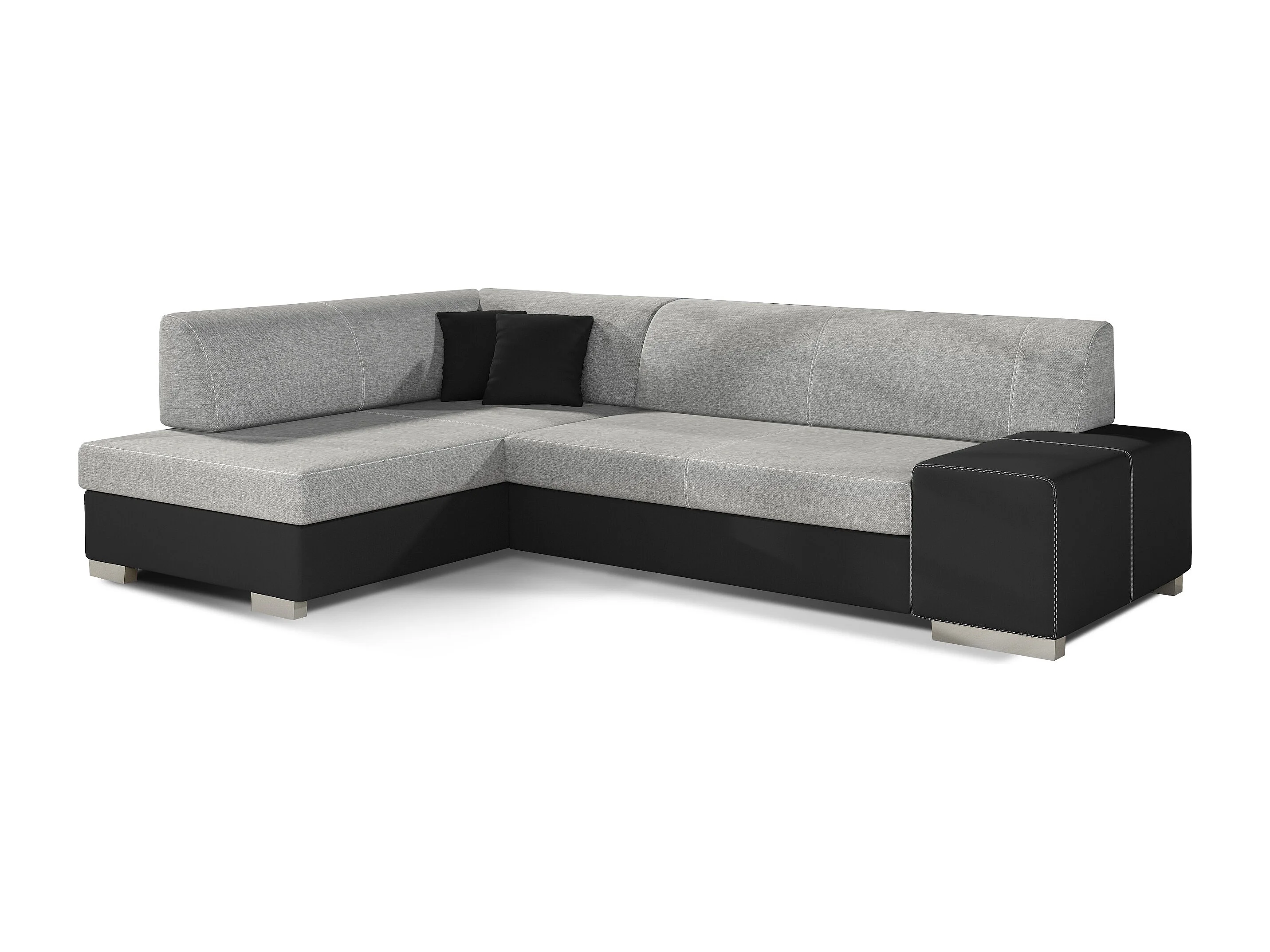 Canapé convertible angle gauche tissu gris clair et simili noir Polky 272cm