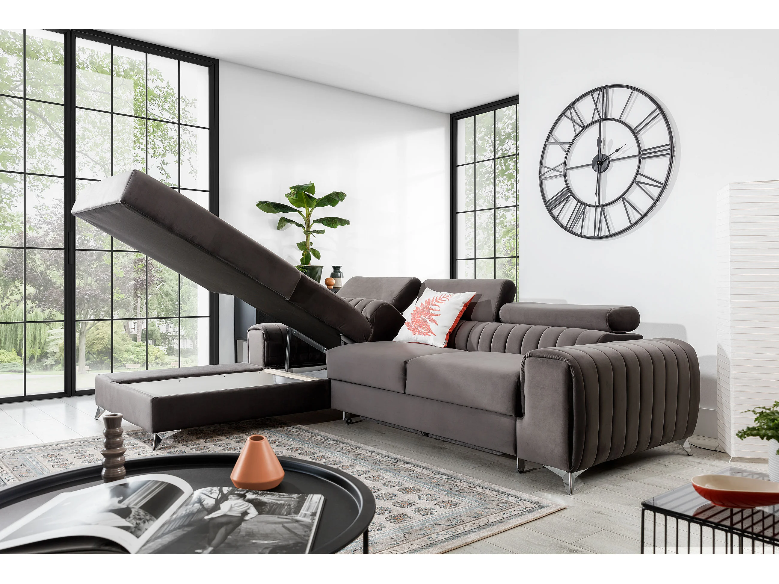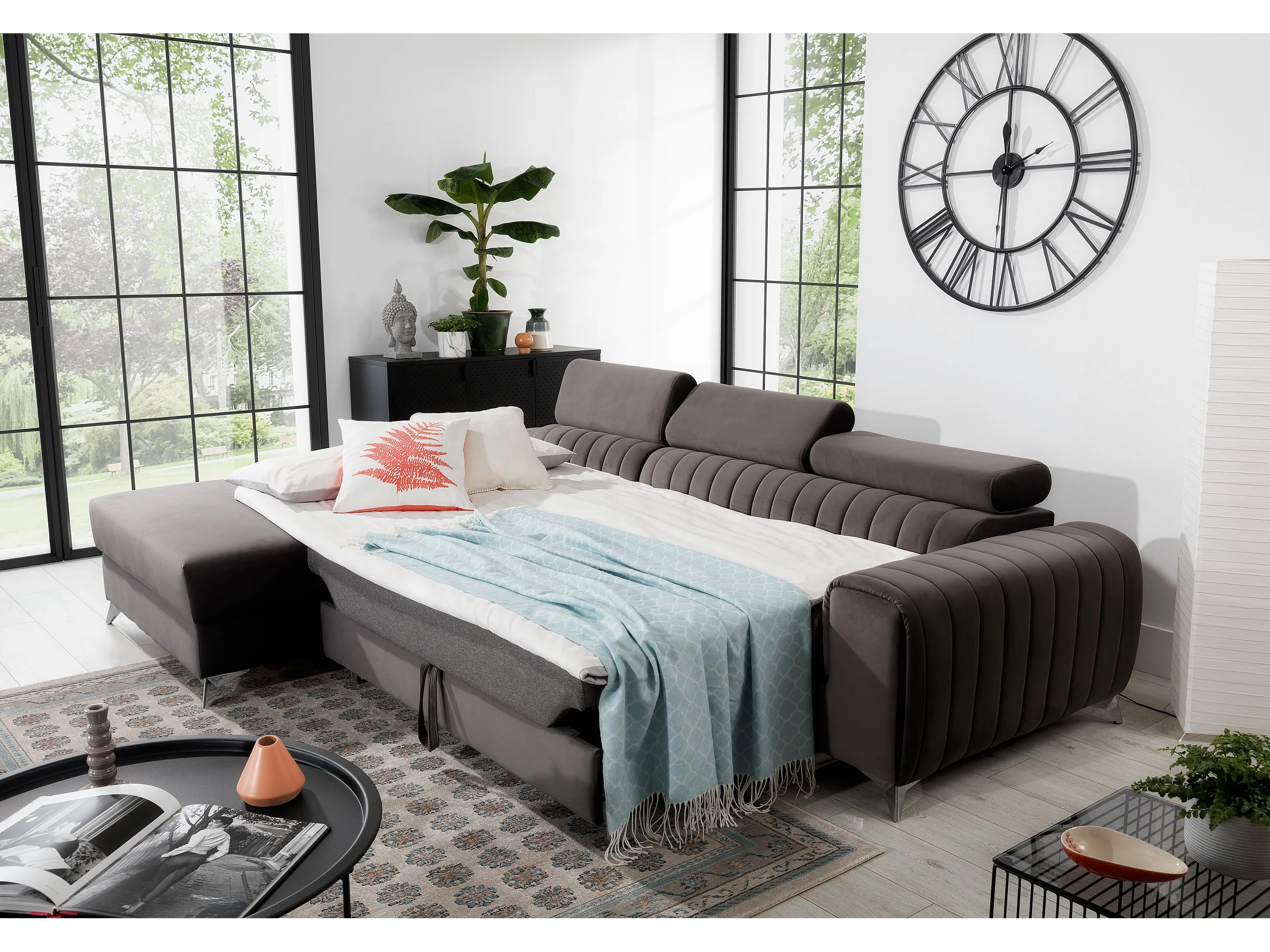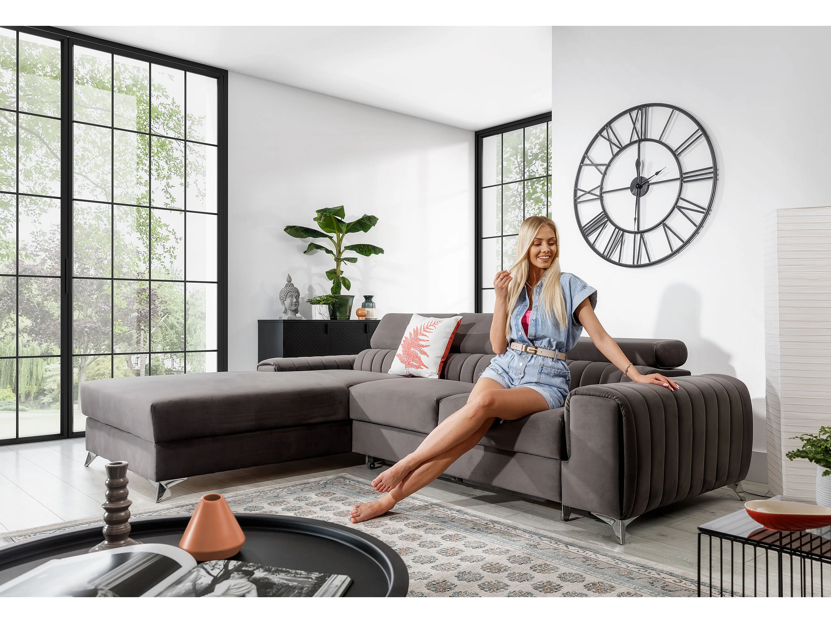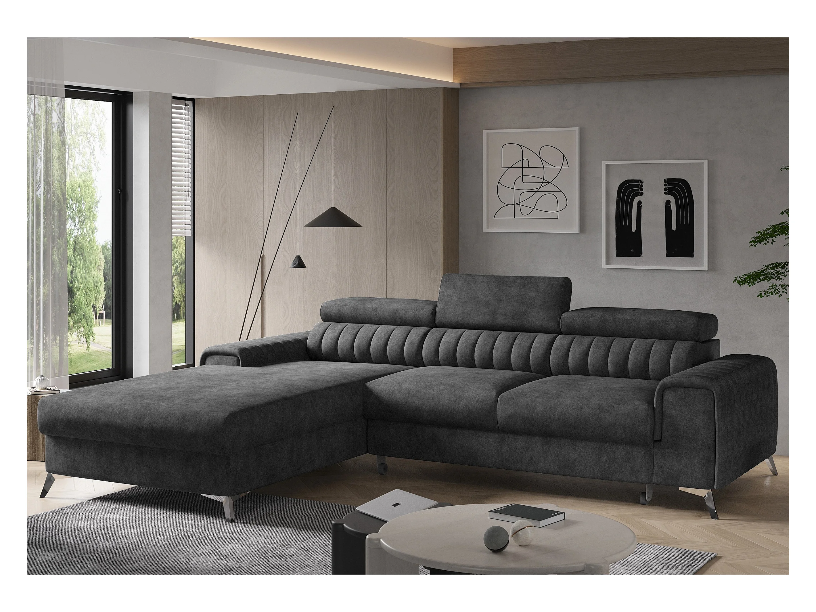Canapé convertible angle gauche vintage tissu effet cuir noir Grenky 276cm