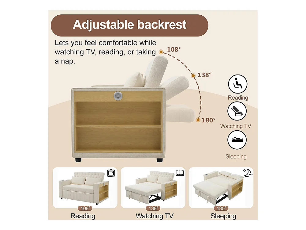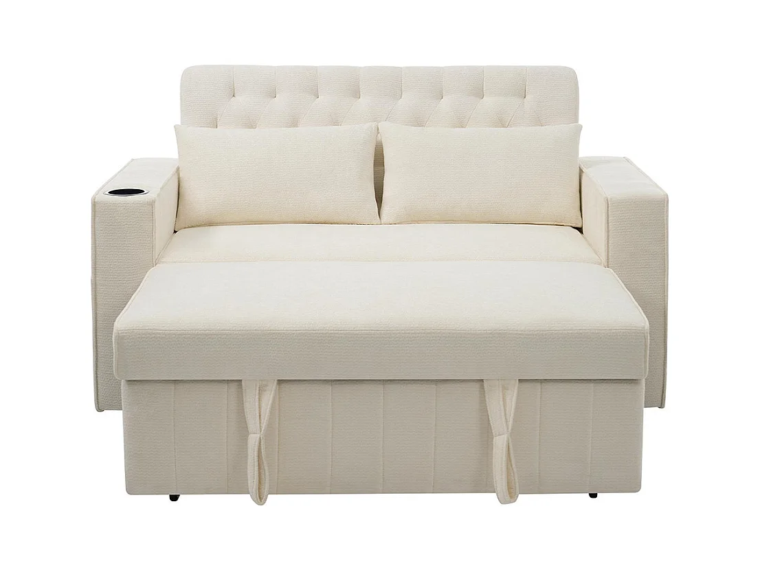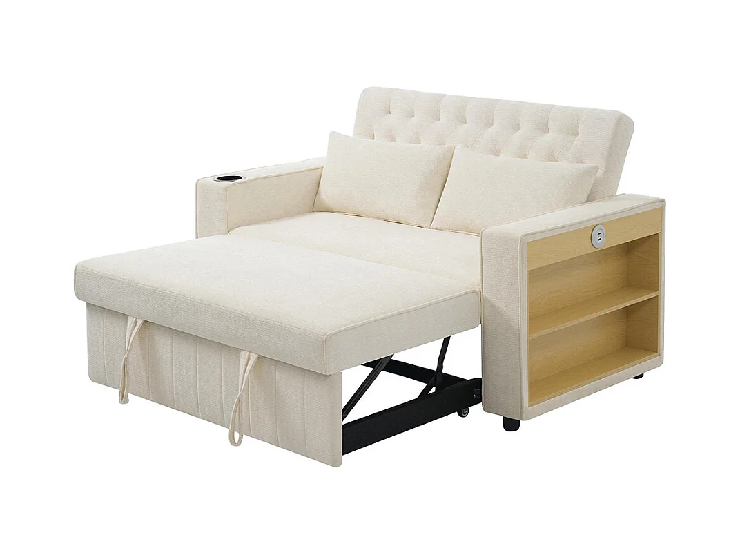 Canapé convertible beige multifonctionnel rangement couchage porte-gobelets USB coussins peu encombrant salon chambre