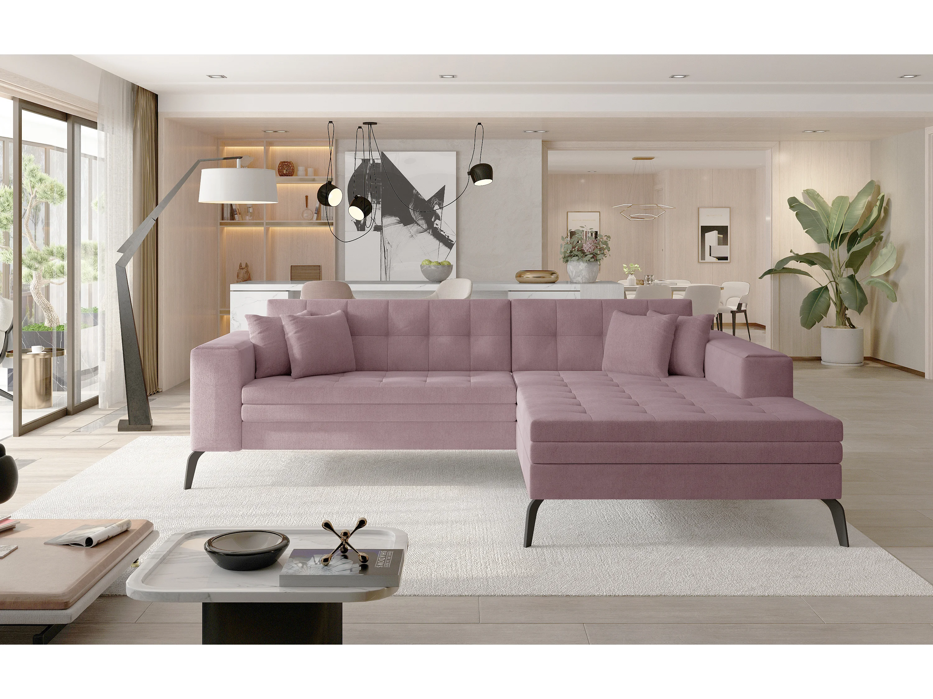 Canapé convertible capitonné angle droit tissu rose et pieds métal noir Lazor 295cm