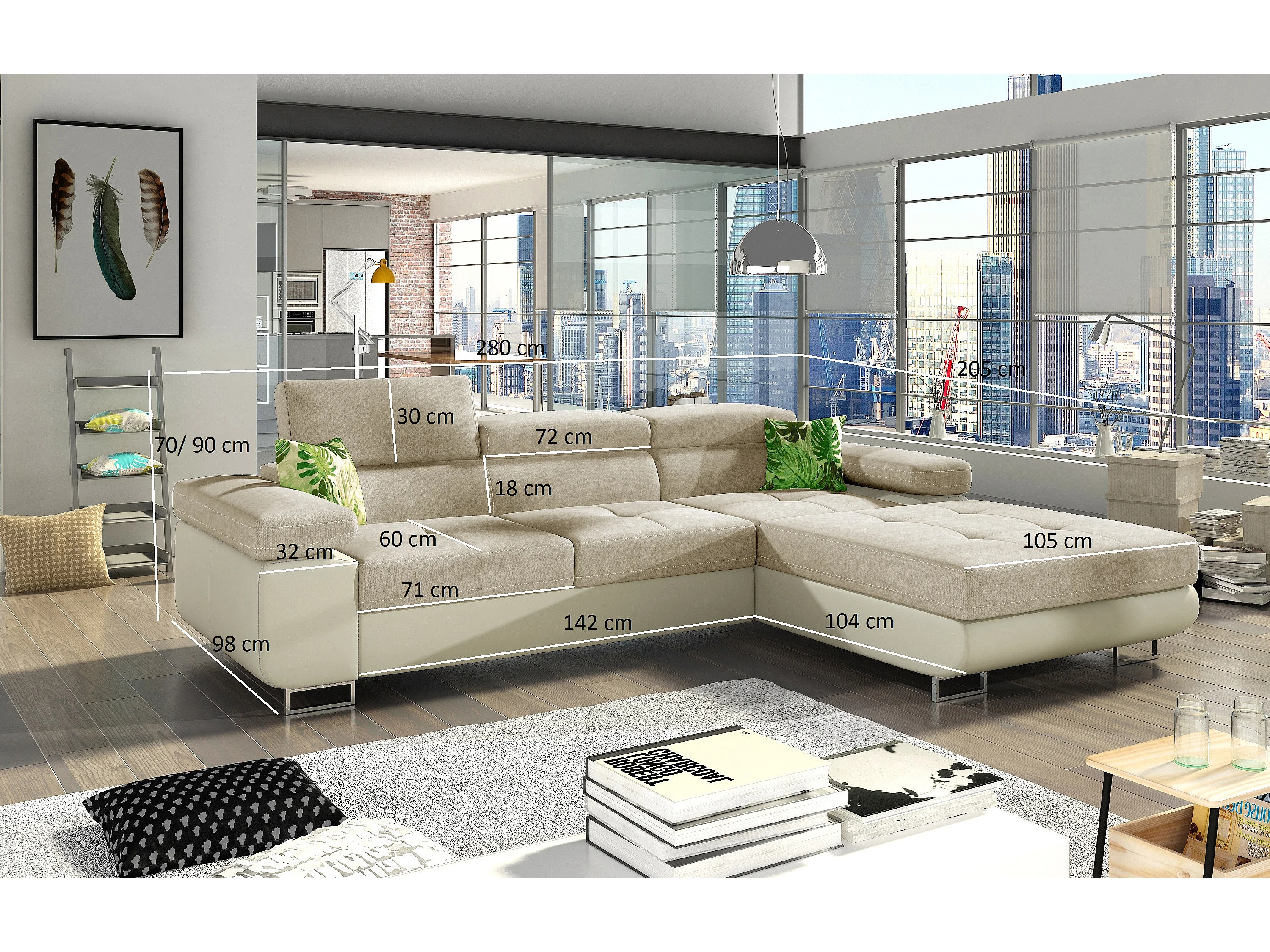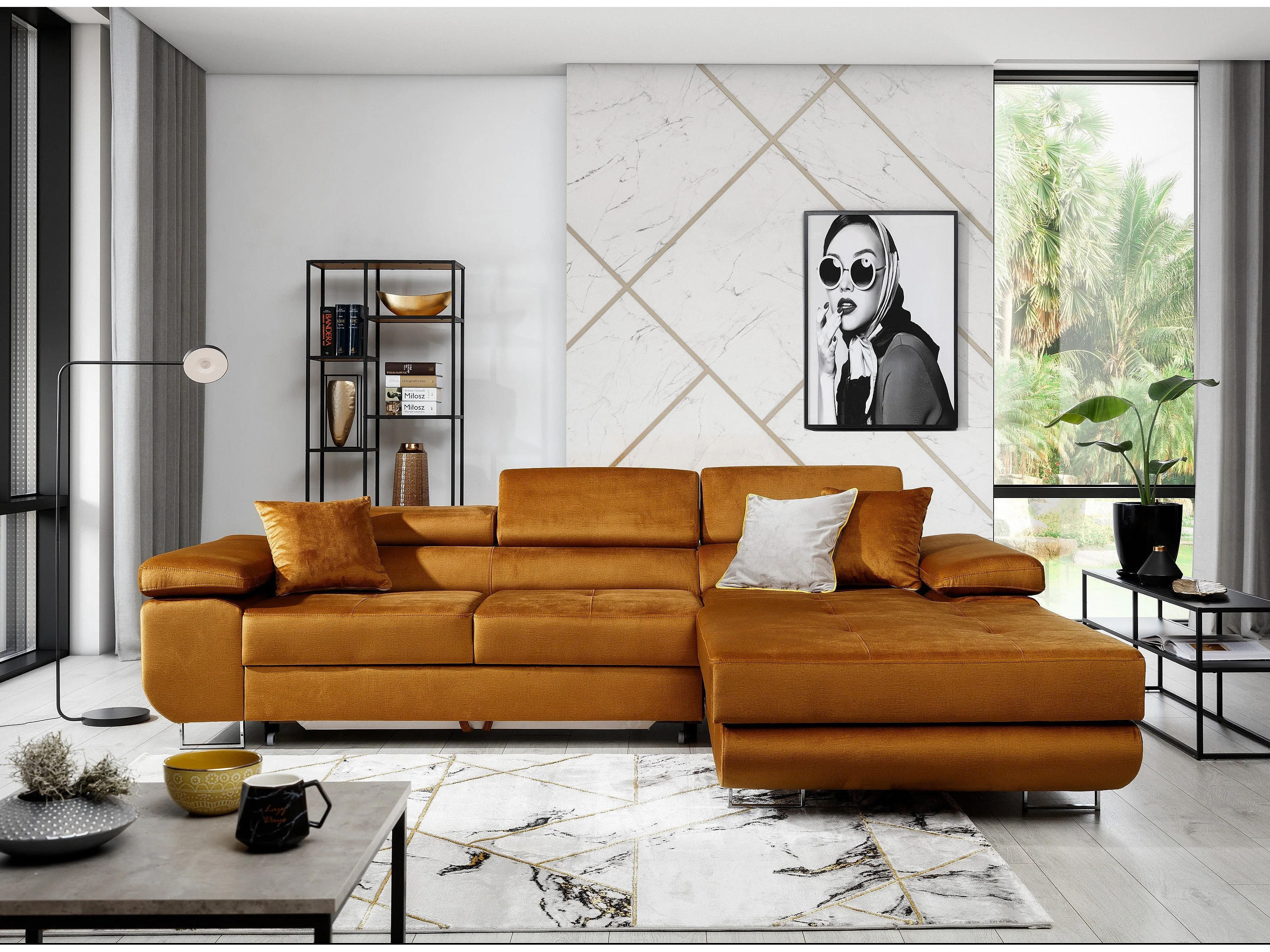 Canapé convertible d'angle droit velours marron orangé avec rangement Wile 280cm