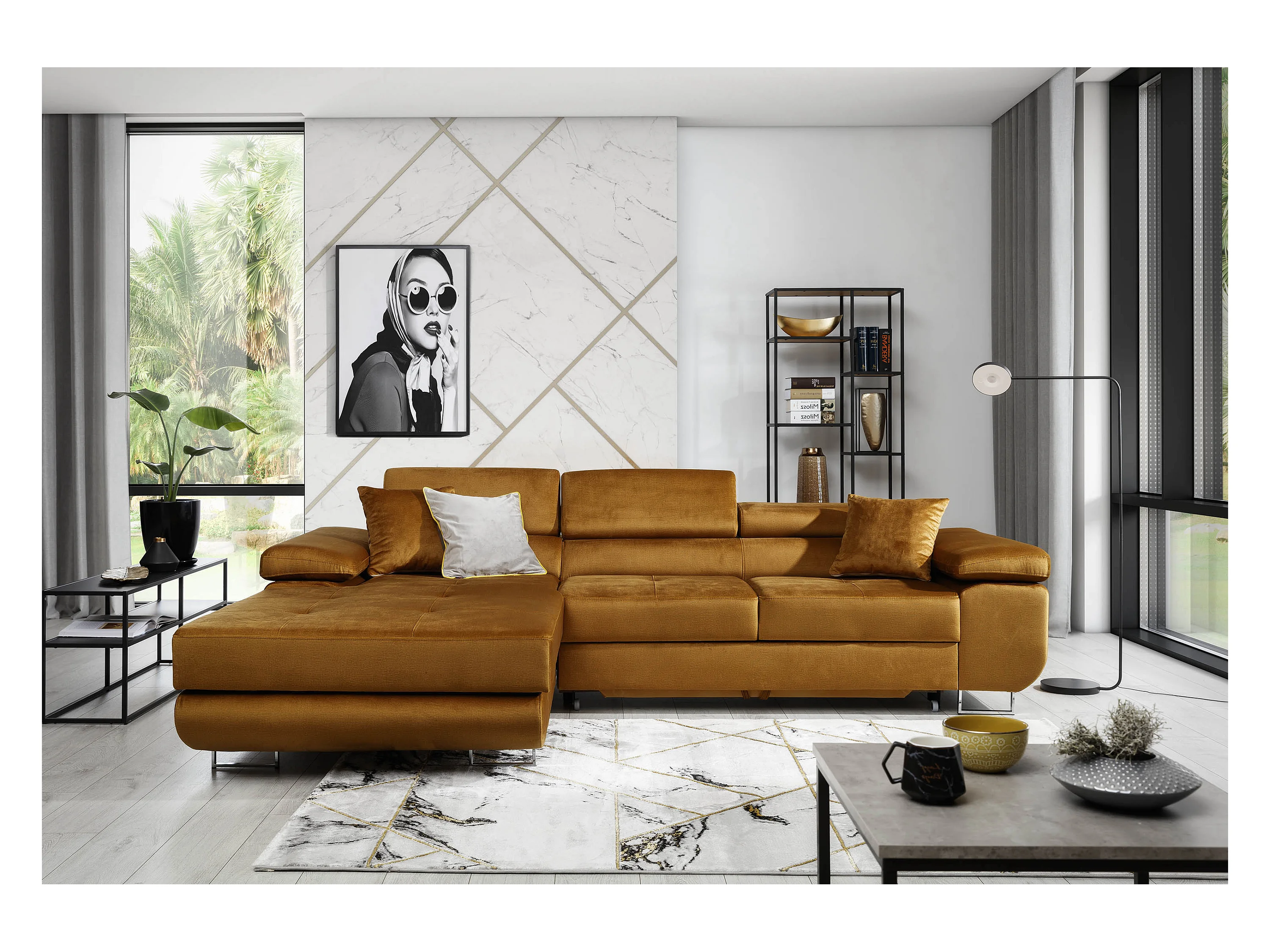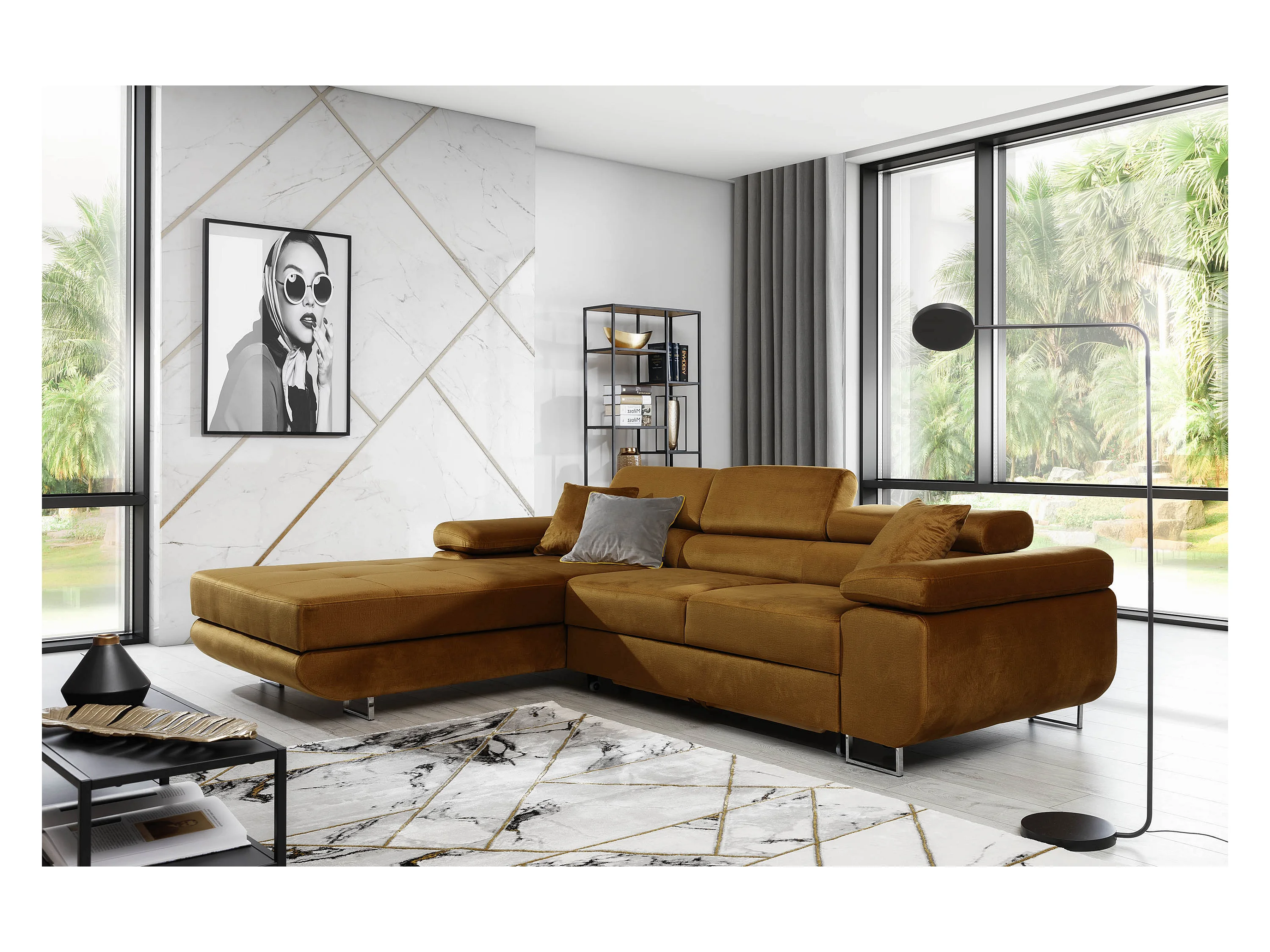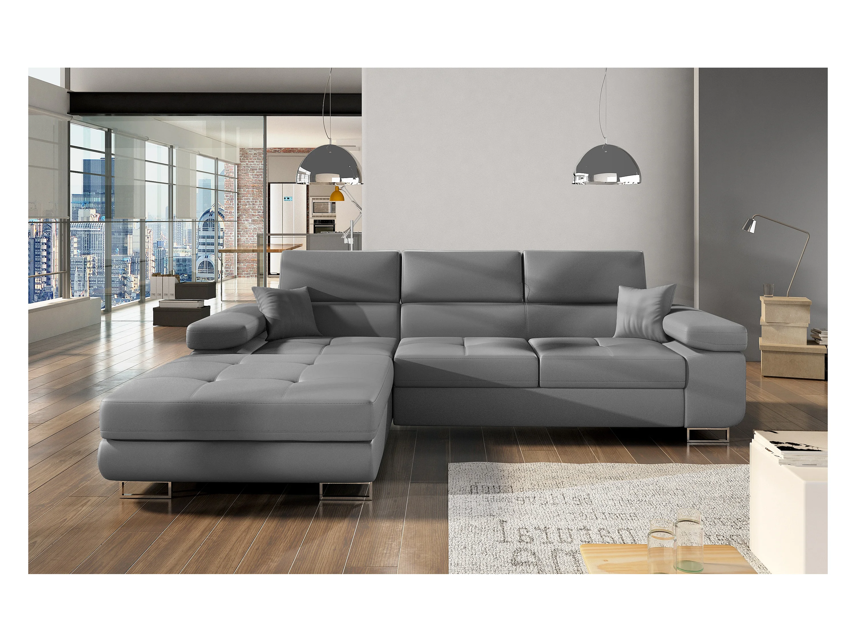 Canapé convertible d'angle gauche simili cuir gris avec rangement Wile 280cm
