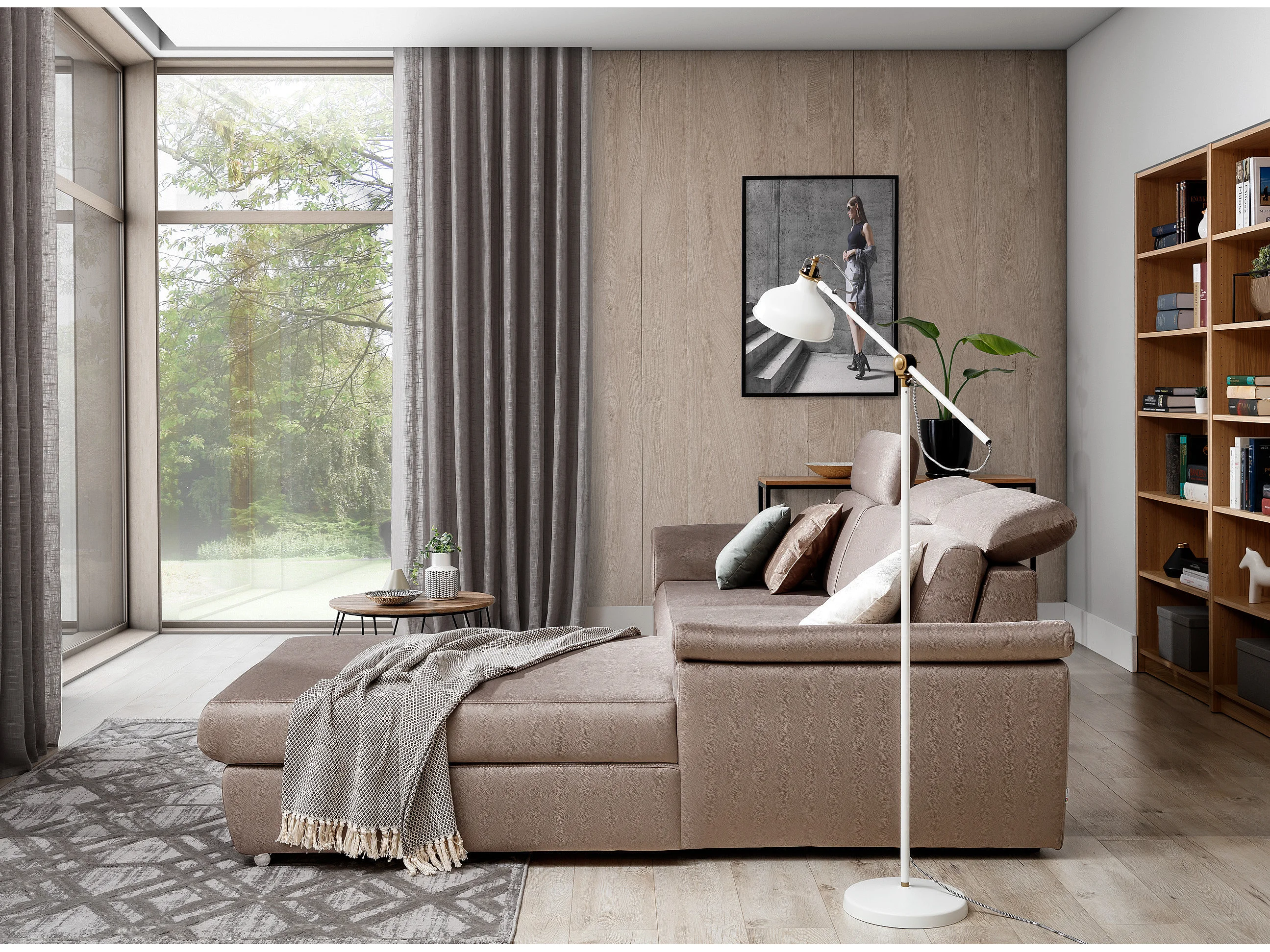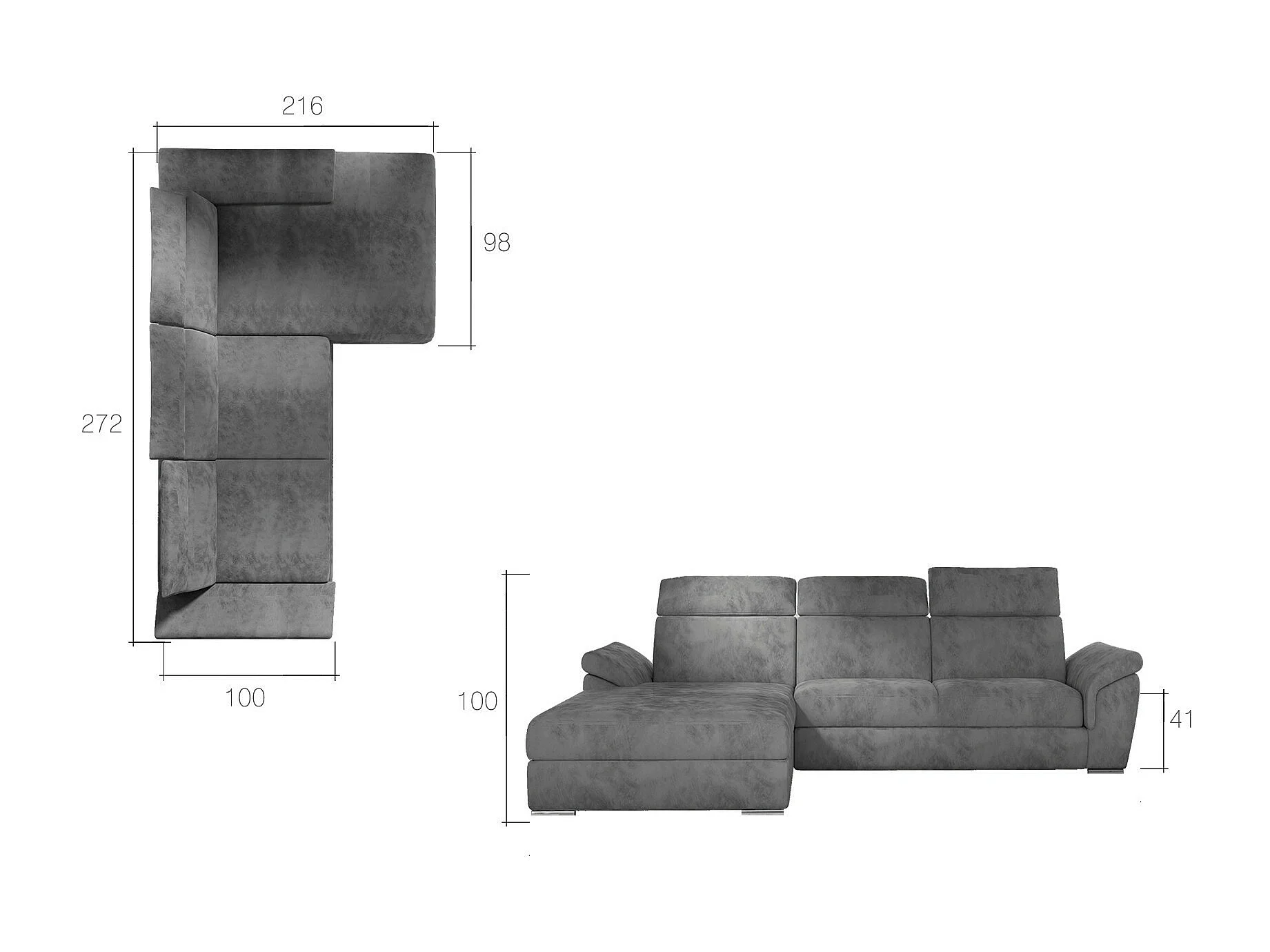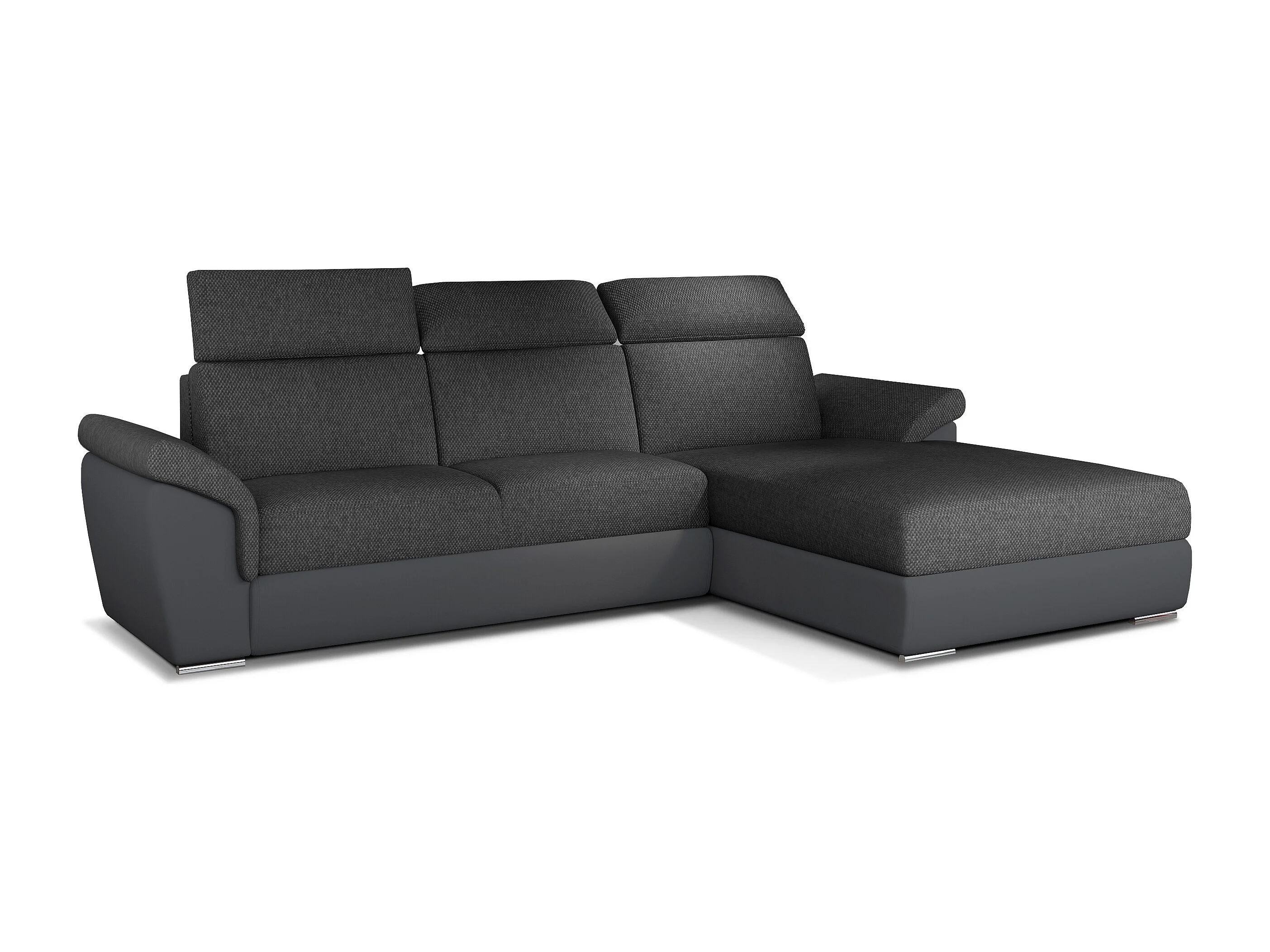 Canapé convertible d'angle tissu gris foncé chiné et simili gris Suzy 272cm