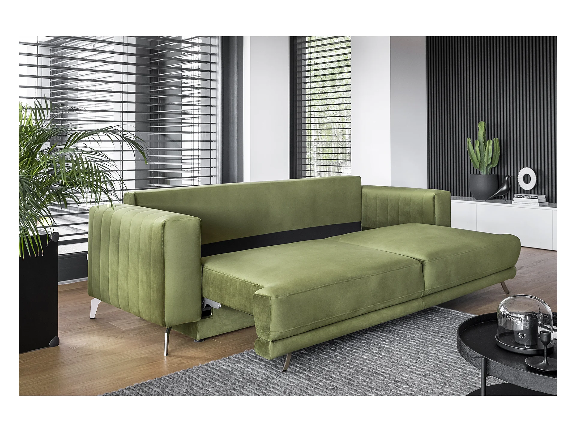 Canapé convertible design 3-4 places simili cuir gris et pieds acier chromé Eliza 250cm