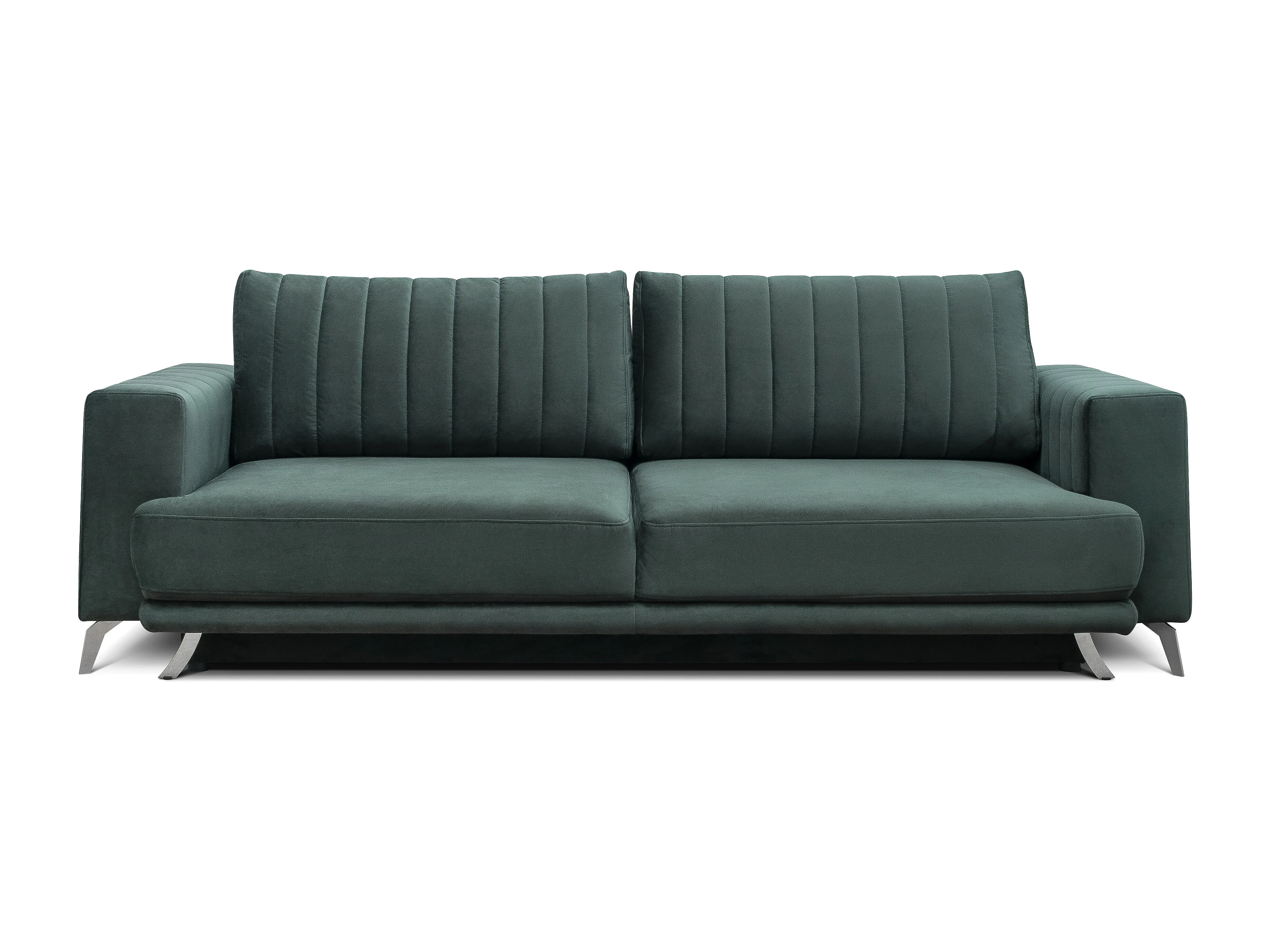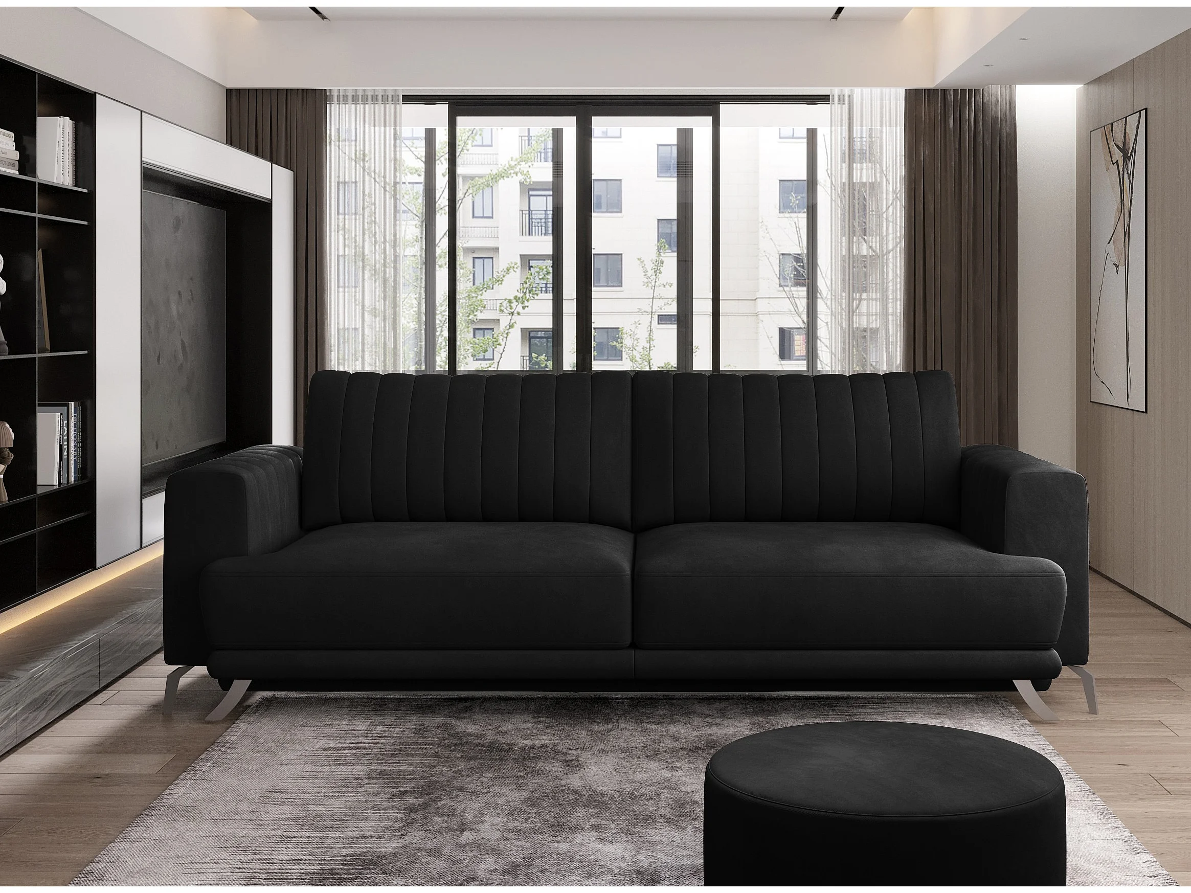 Canapé convertible design 3-4 places velours noir et pieds acier chromé Eliza 250cm