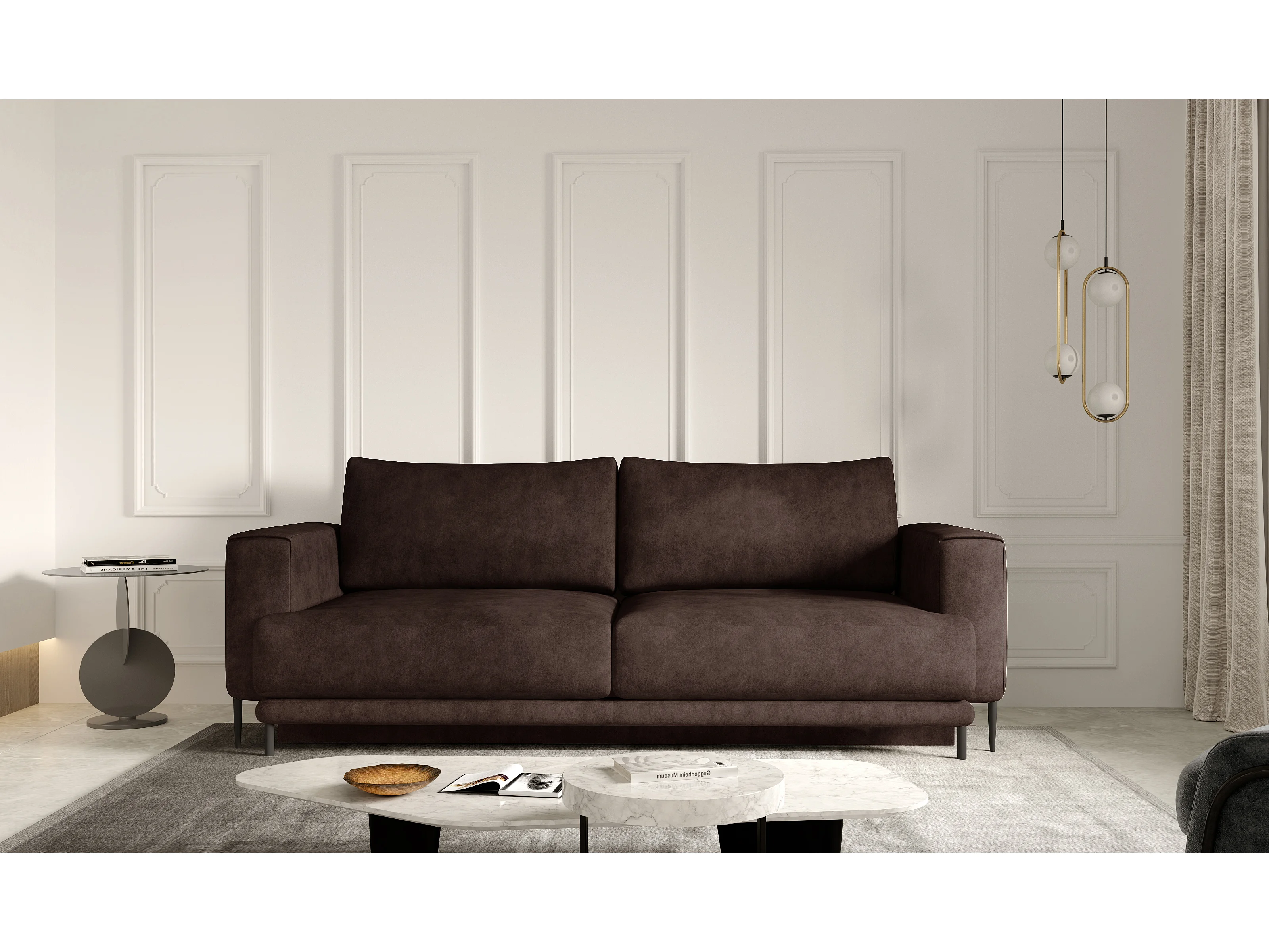 Canapé droit convertible coffre tissu DAVINA - Pieds métal noir-Marron vintage