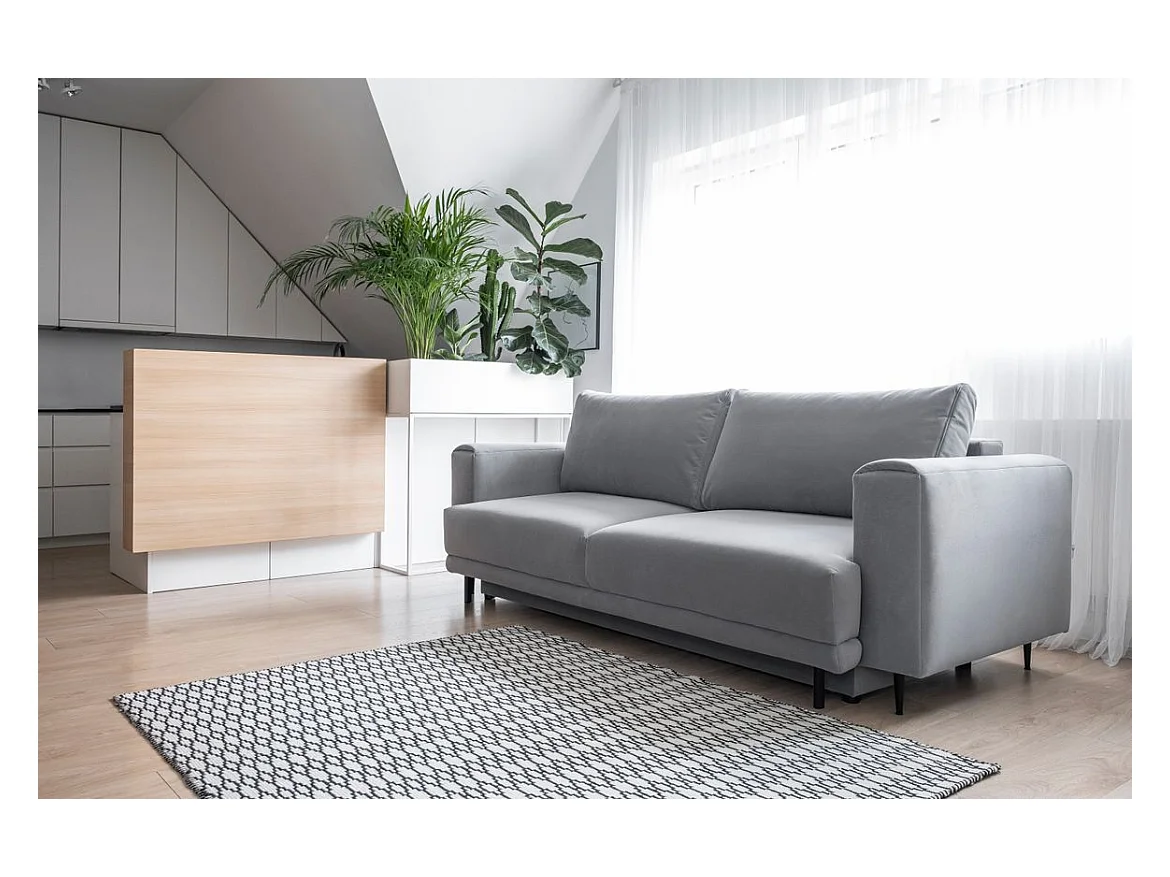 Canapé convertible design 4 places velours bordeaux et pieds métal noir Arkia 260cm