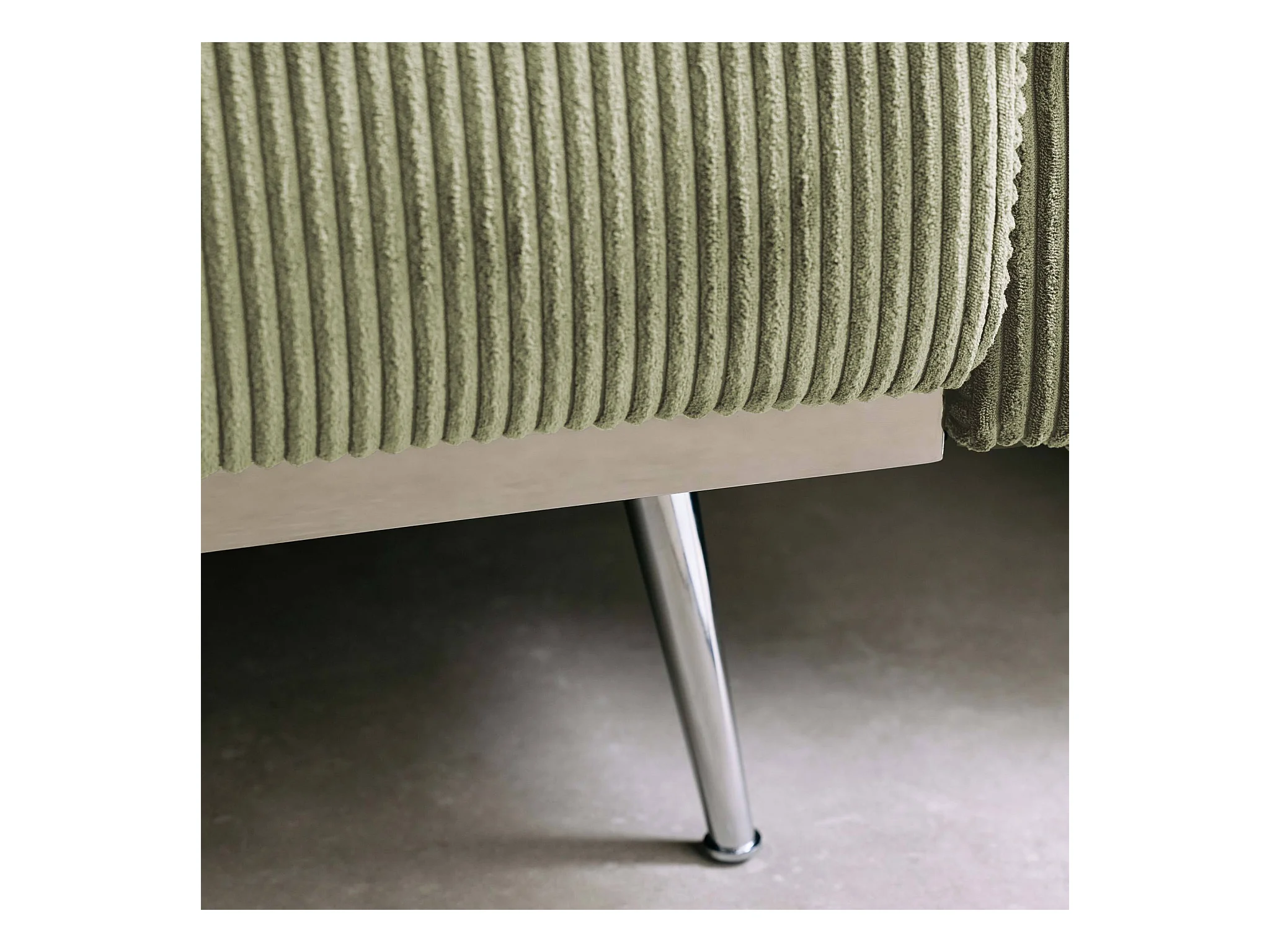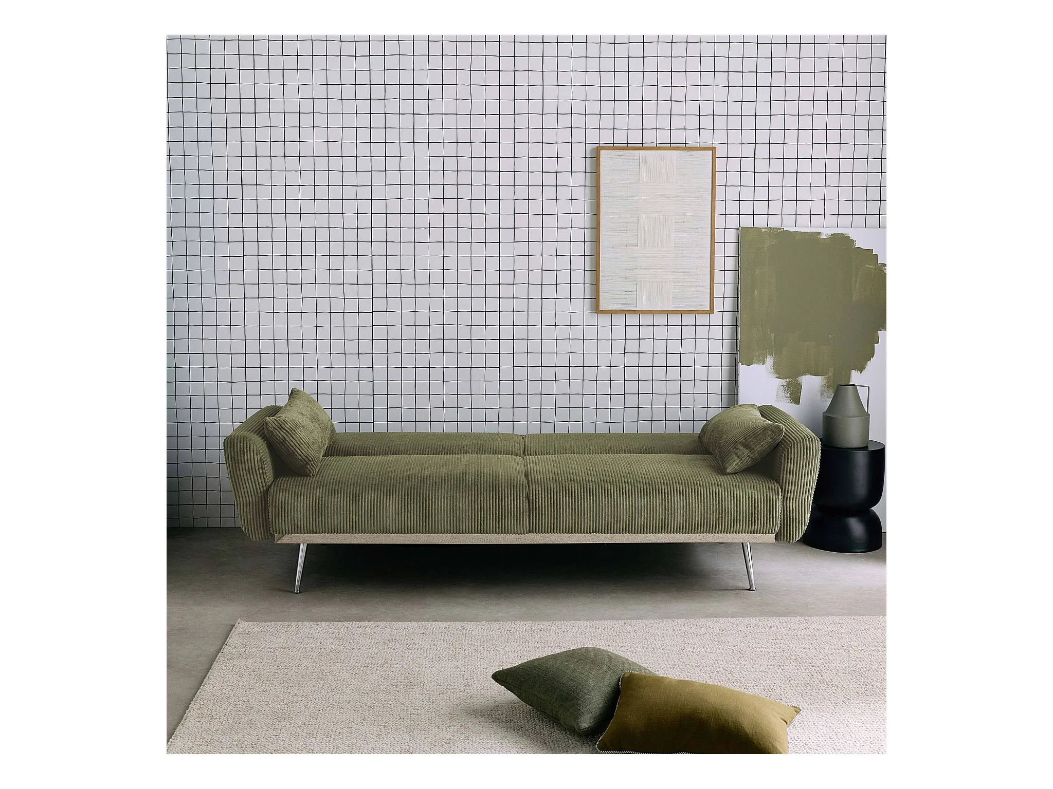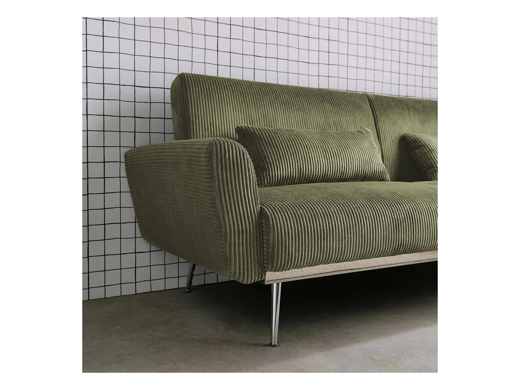 Canapé convertible design en velours côtelé kaki - Oskar - 3 places scandinave droit avec pieds métal chromé