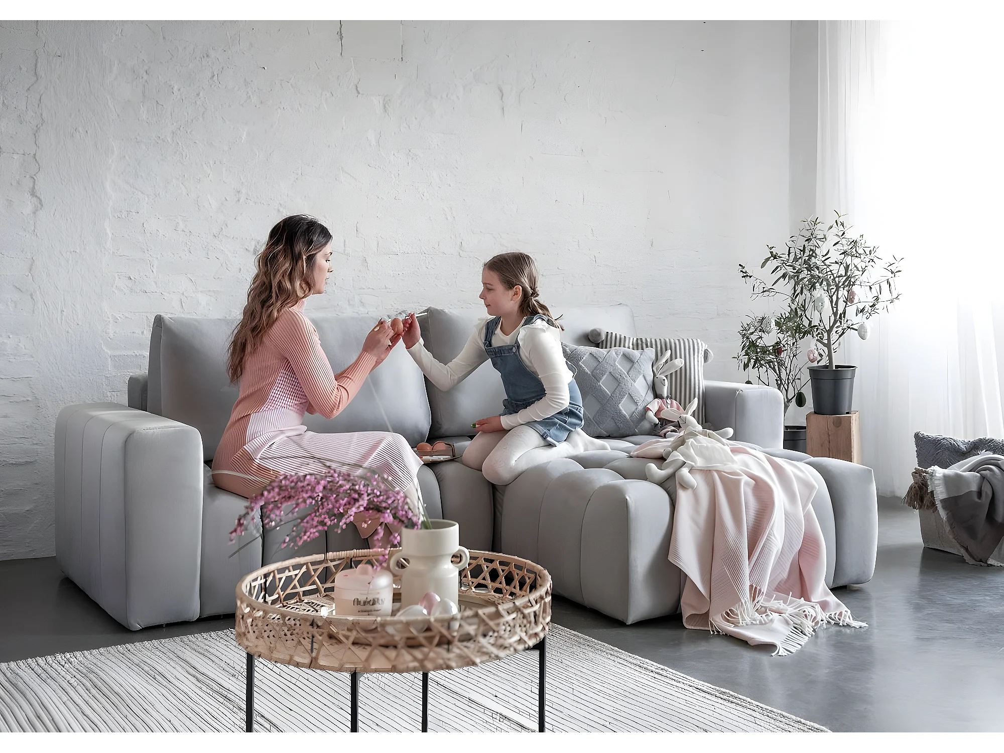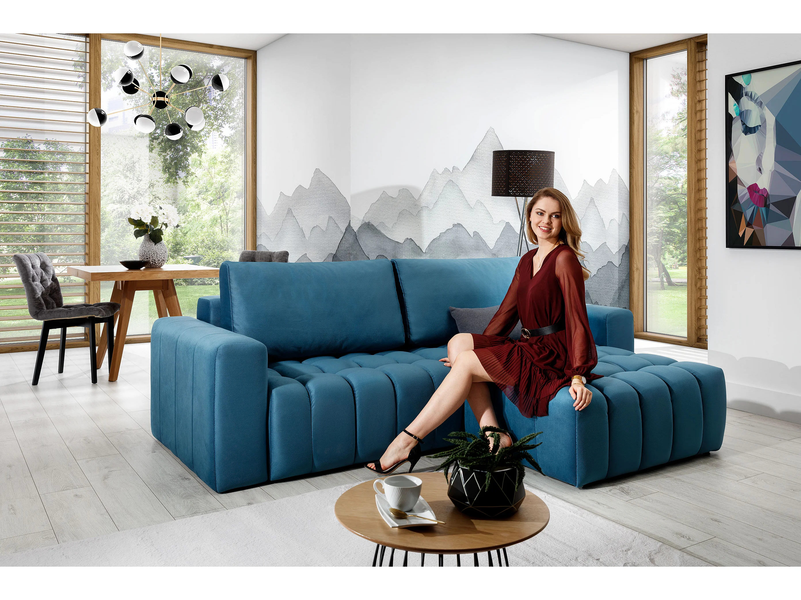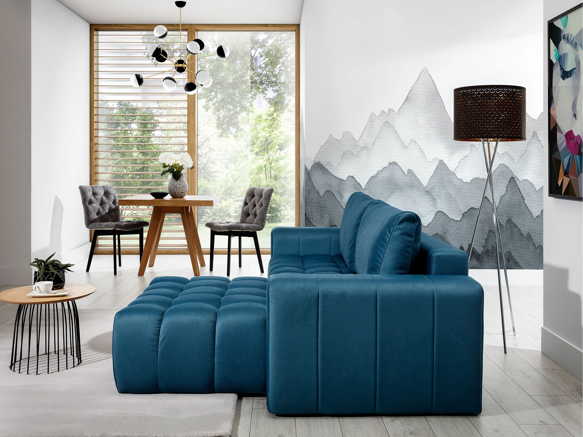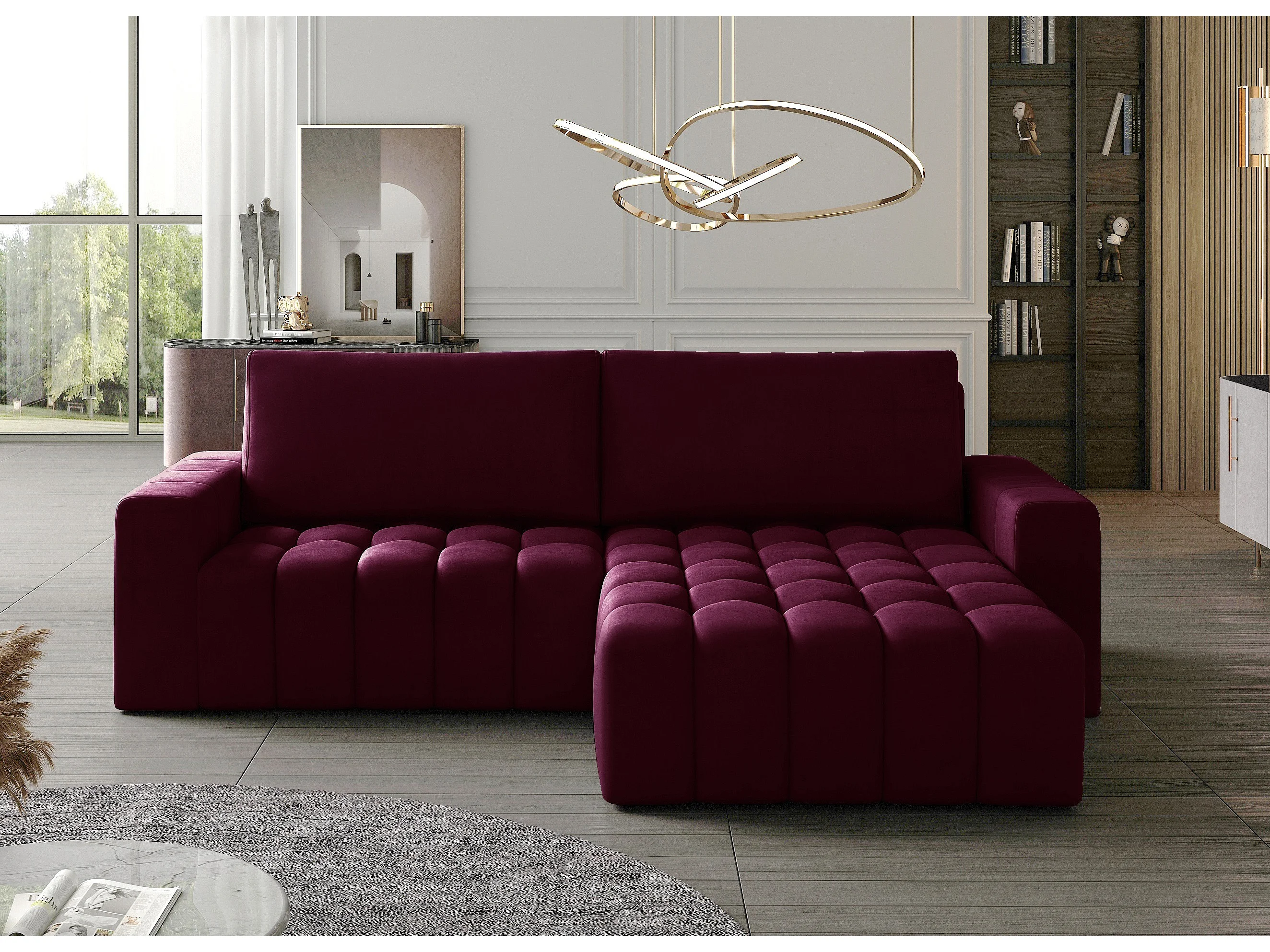 Canapé convertible design velours matelassé bordeaux angle droit Bozen 250cm