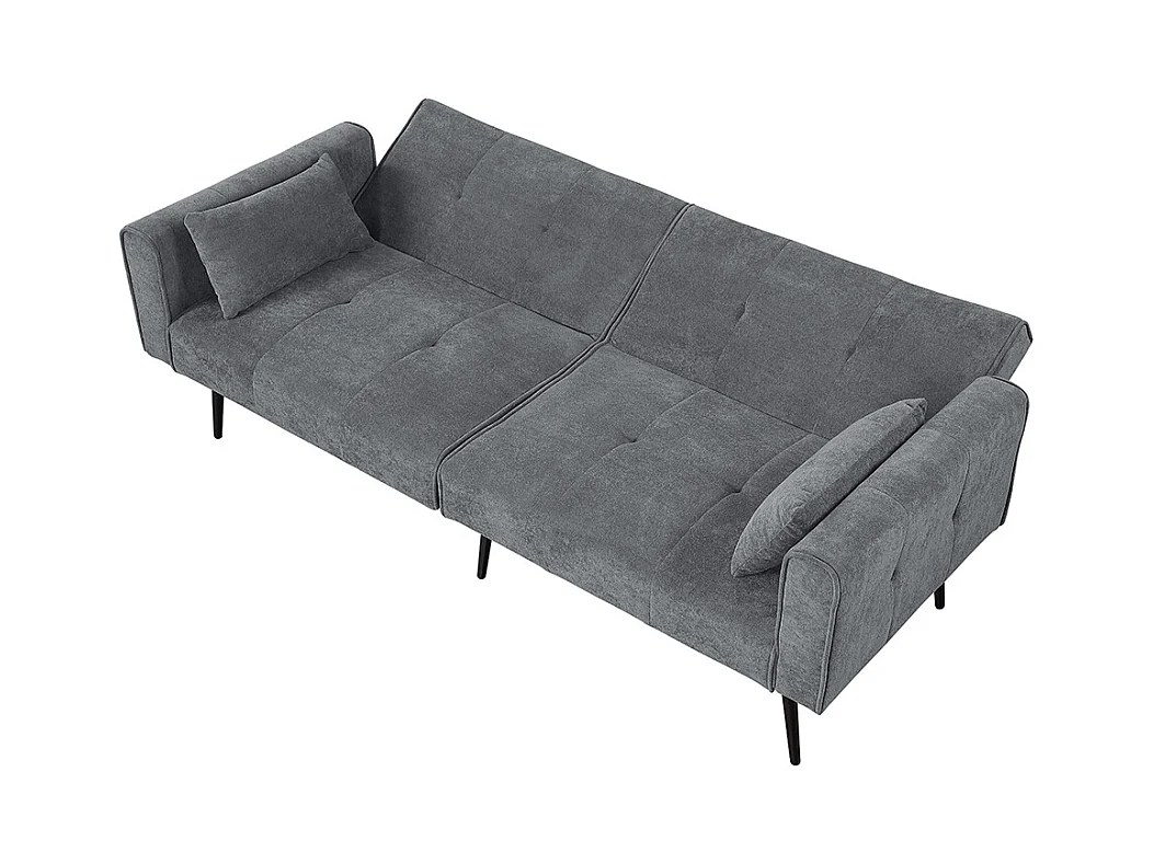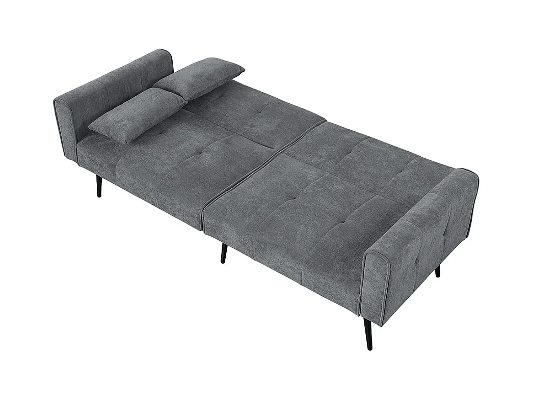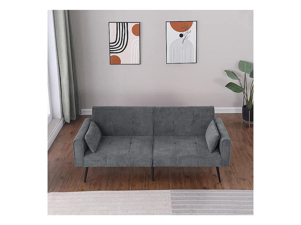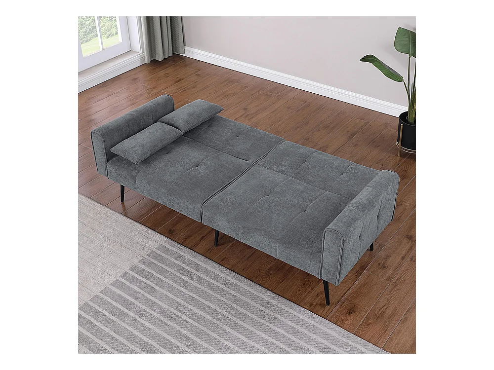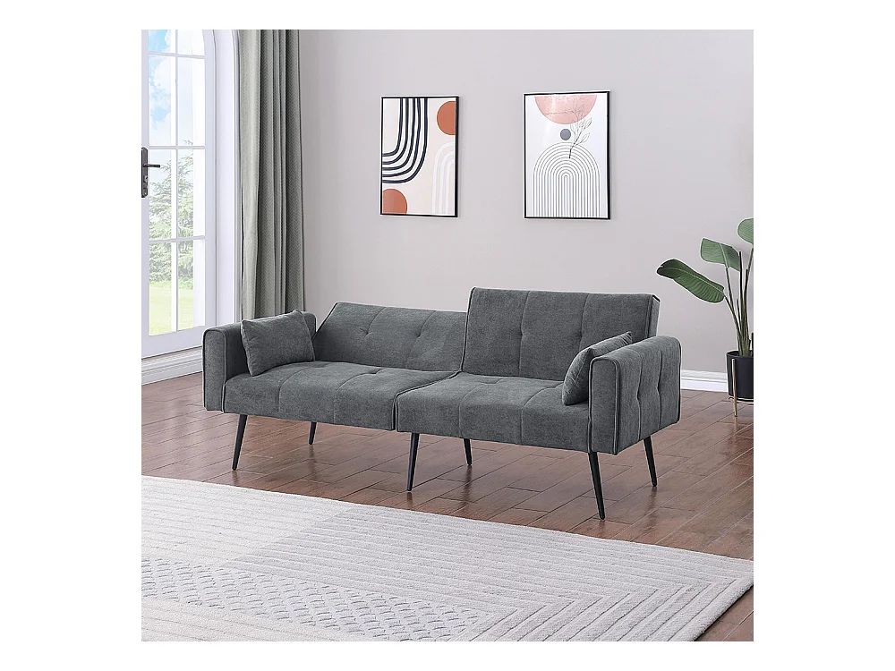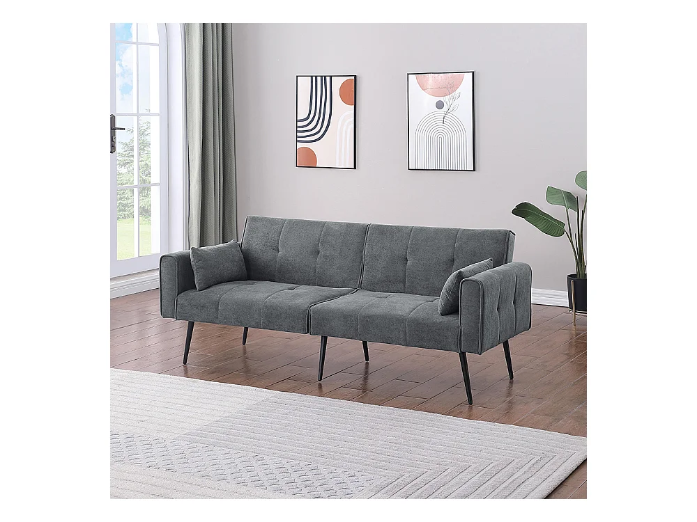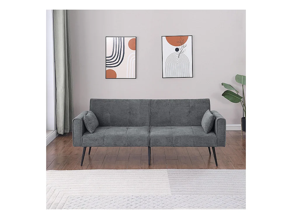 Canapé convertible deux places inclinable en tissu avec dossier réglable futon gris pour salon