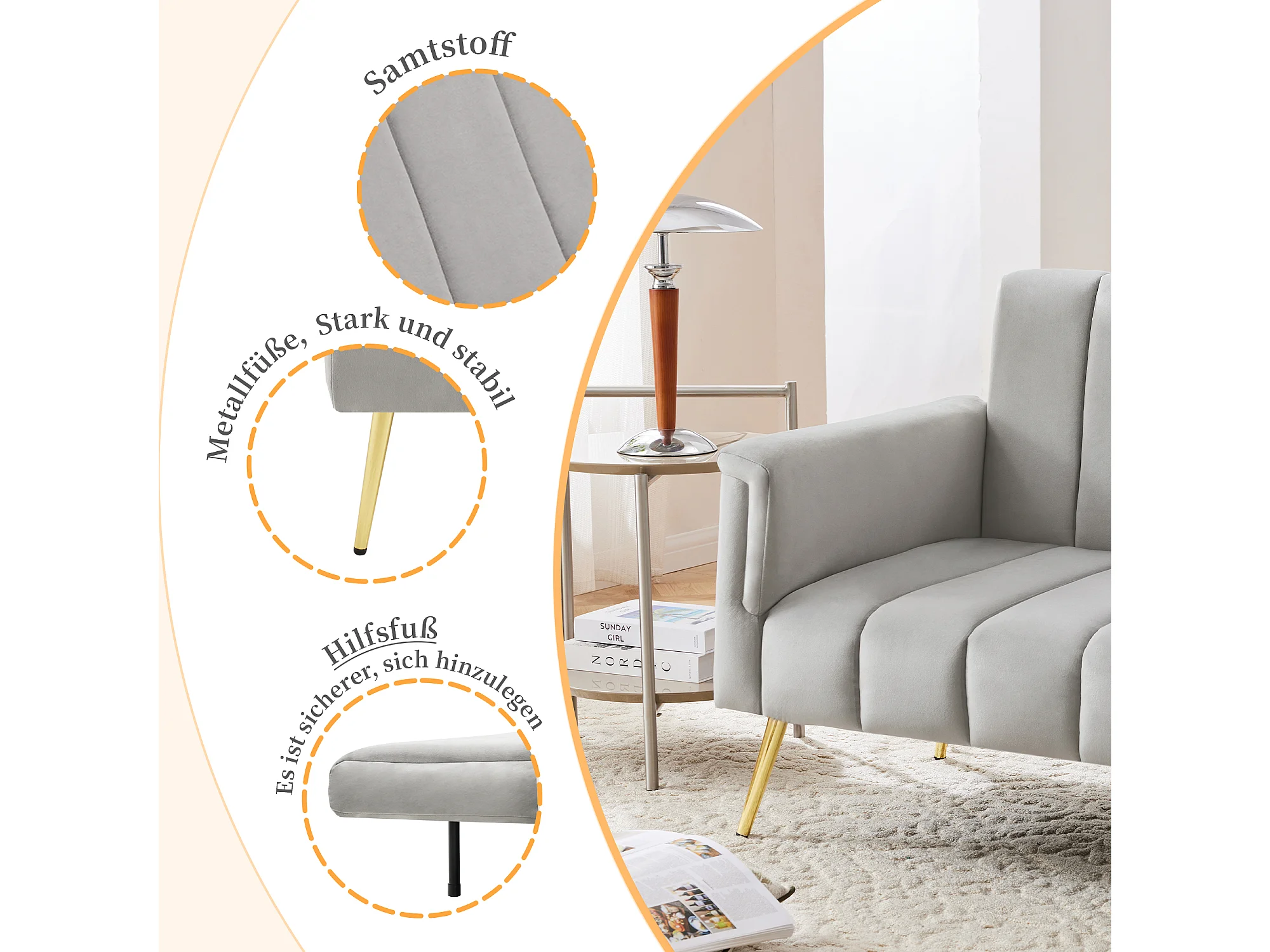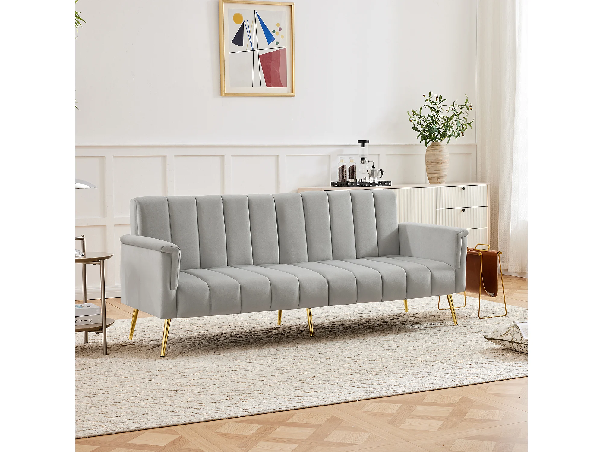 Canapé convertible en lit avec accoudoirs ajustables, canapé en velours, gris (183x76x75 cm)