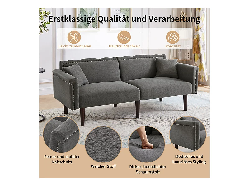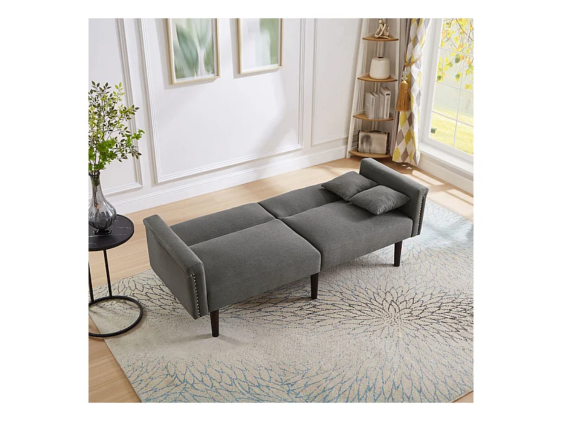 Canapé convertible en lit - avec dossiers réglables indépendants et 2 oreillers - tissu en lin en coton - 176x72/89x72cm - Gris