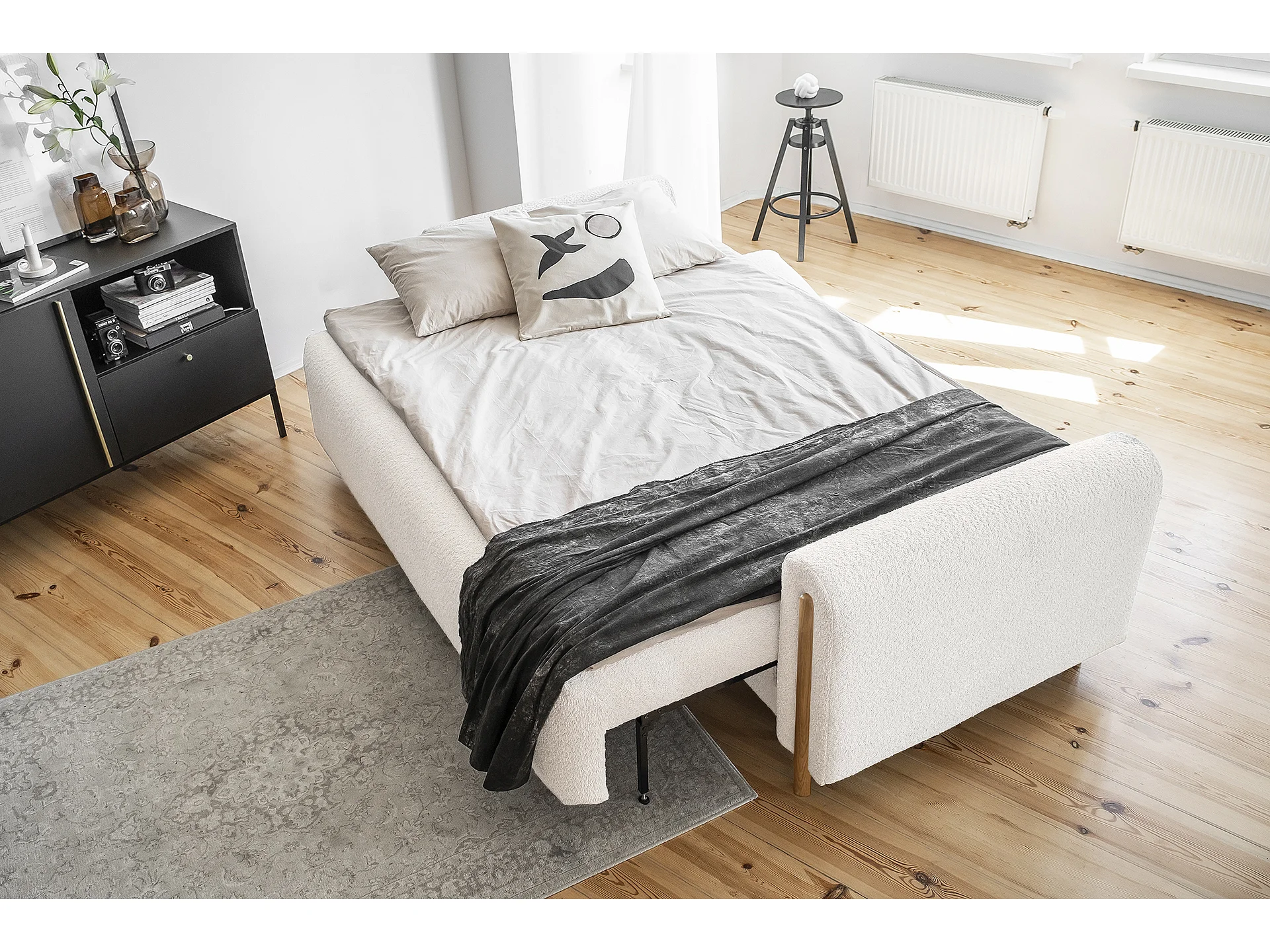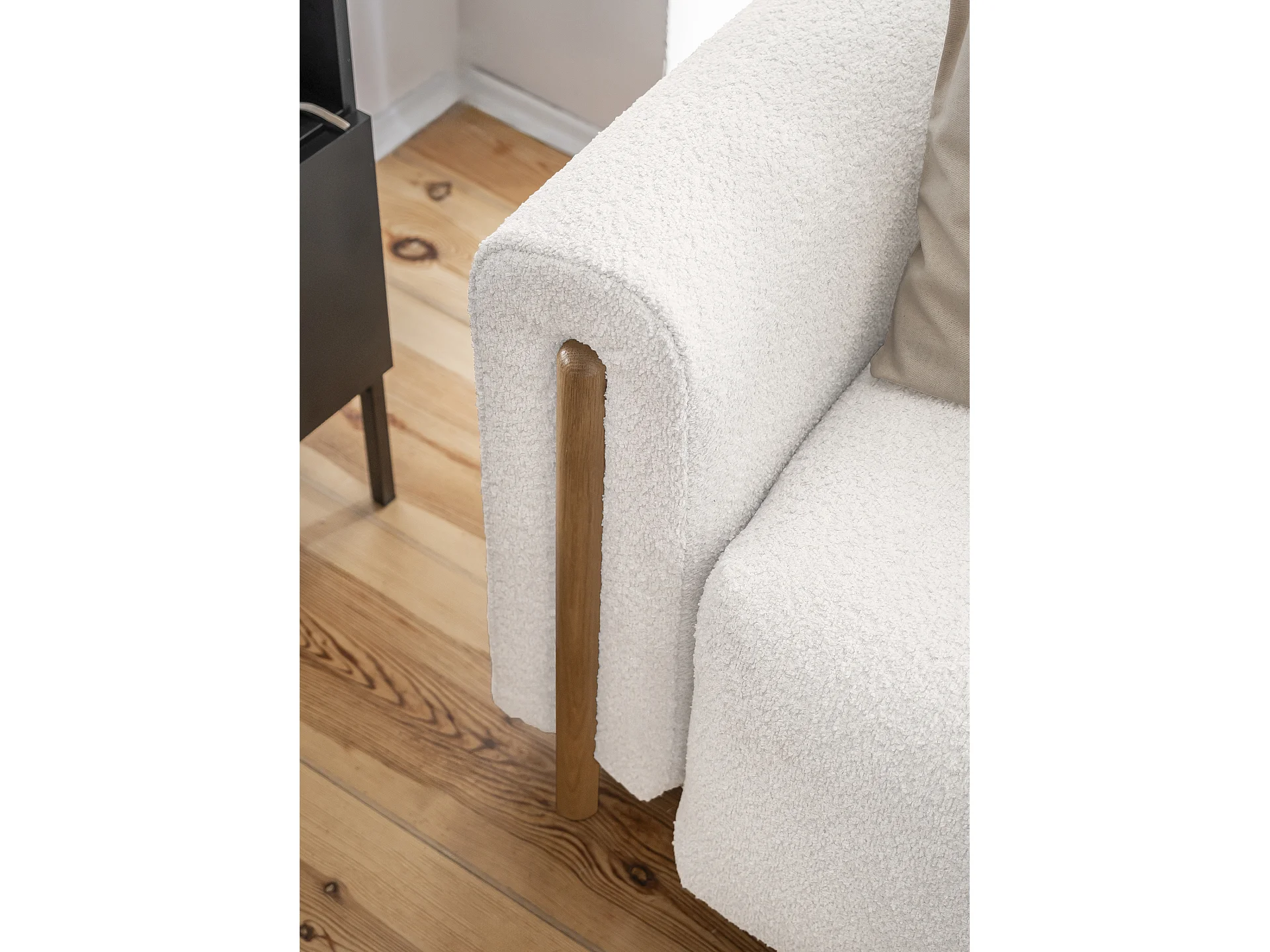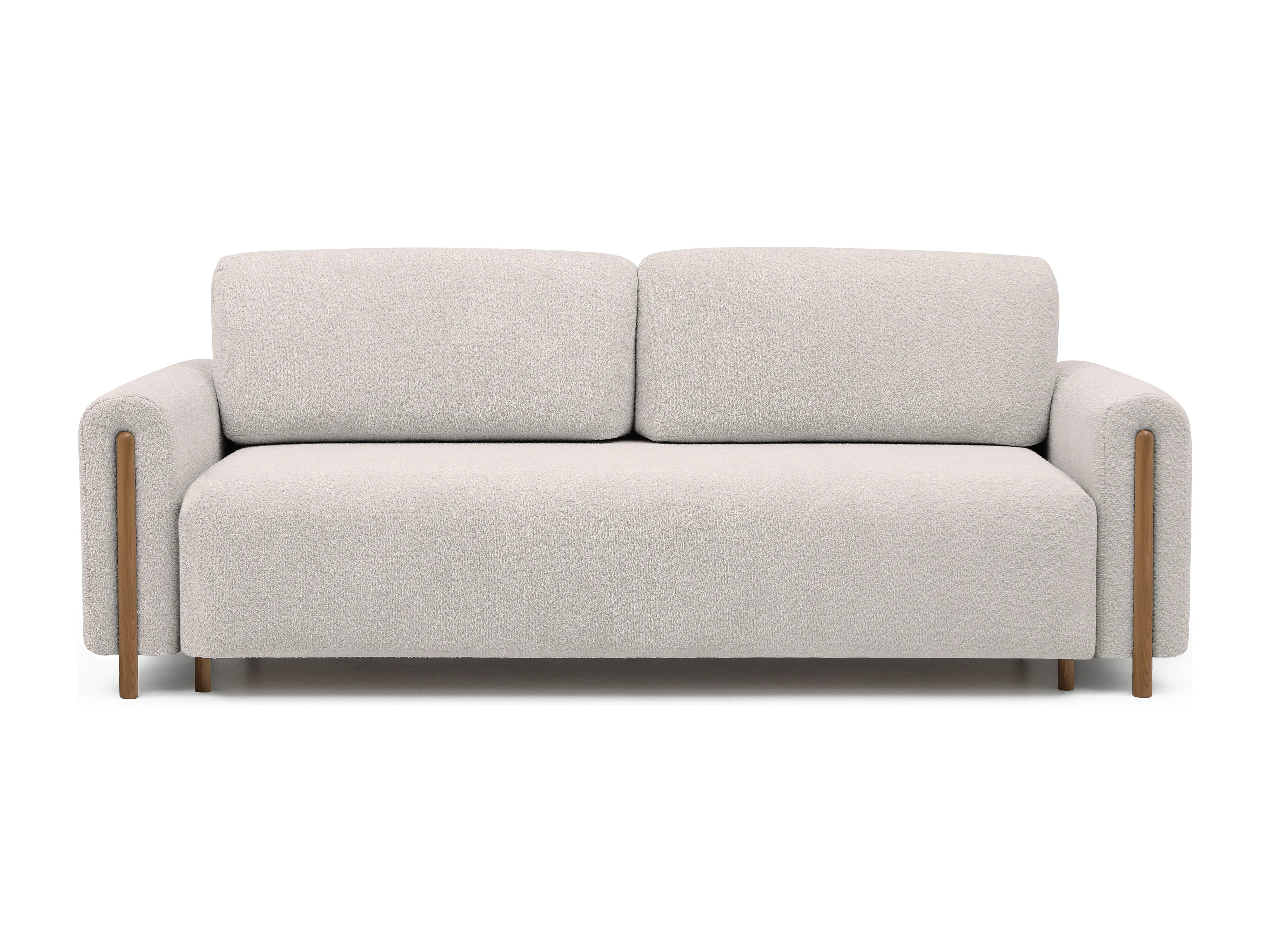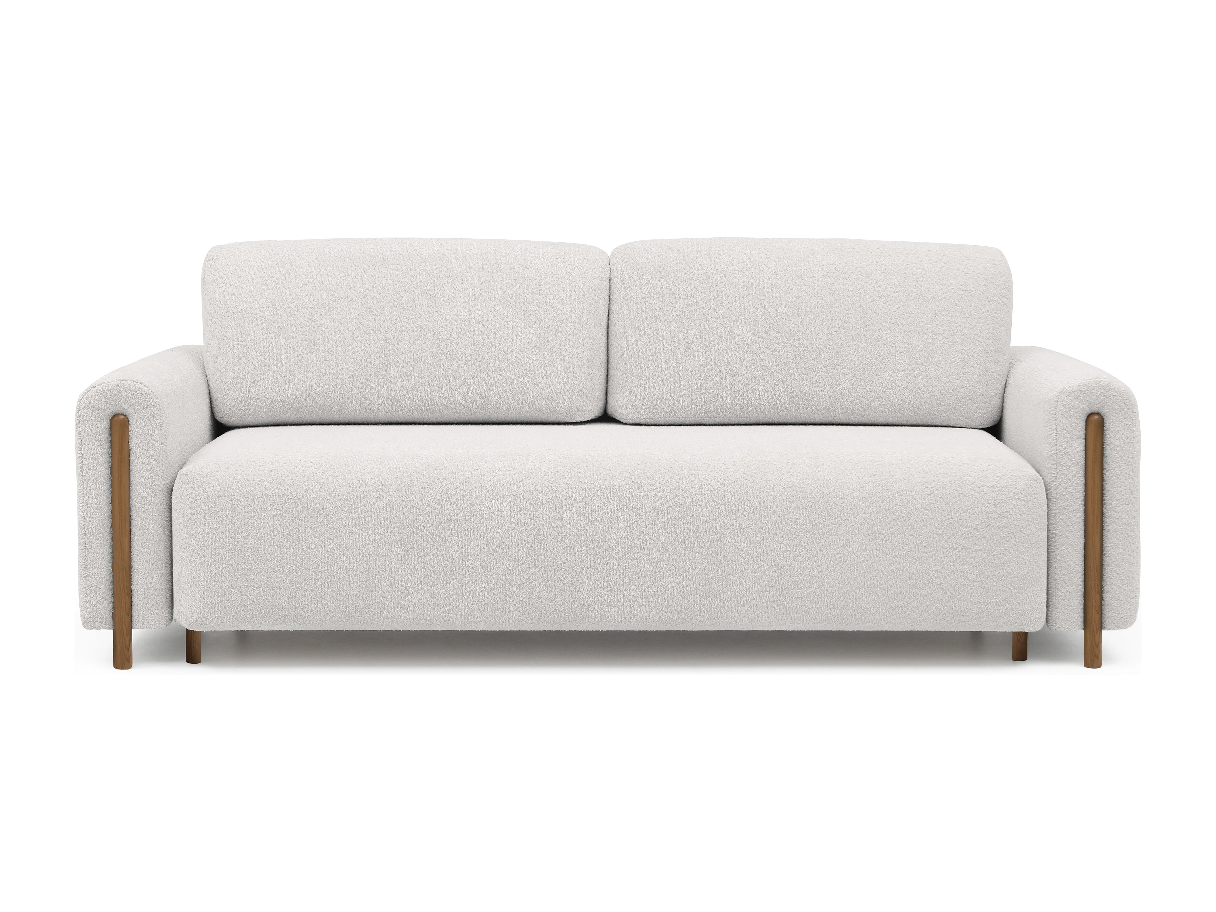 Canapé convertible en tissu bouclette DOVA - Pieds bois massif naturel-Blanc