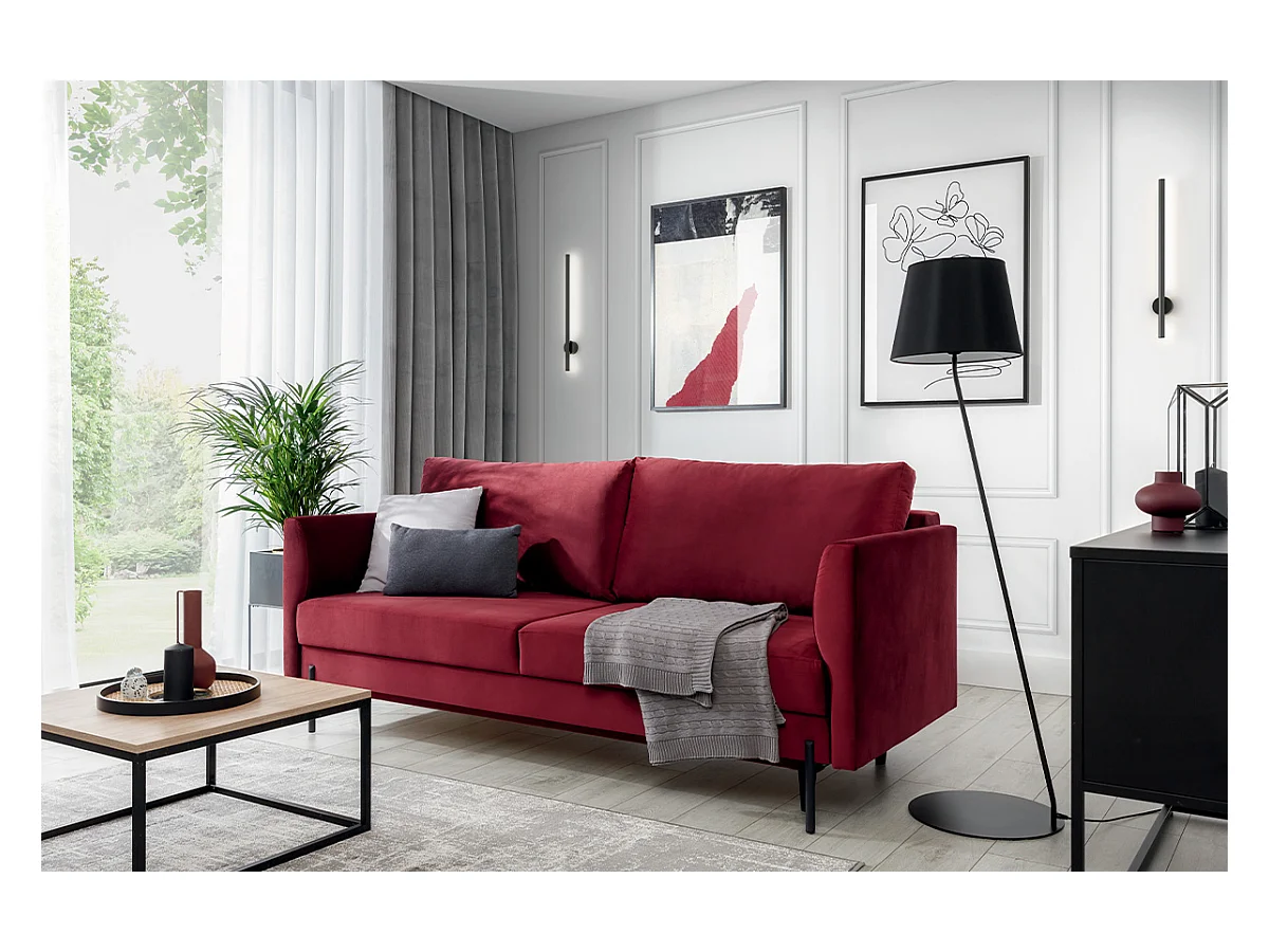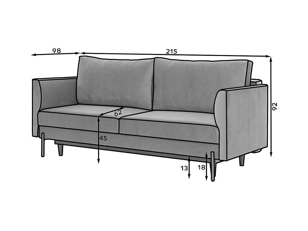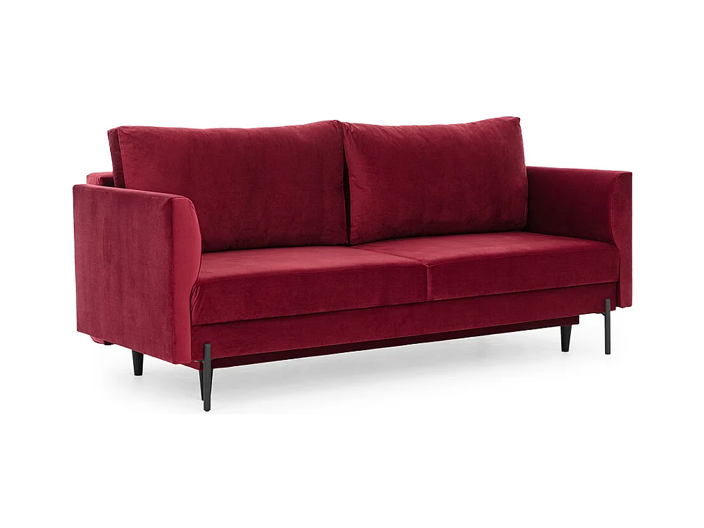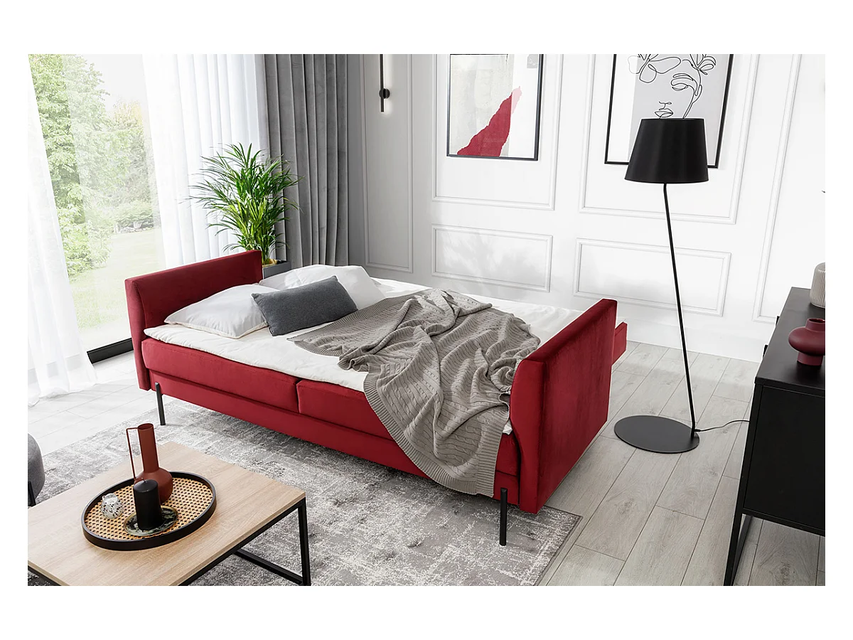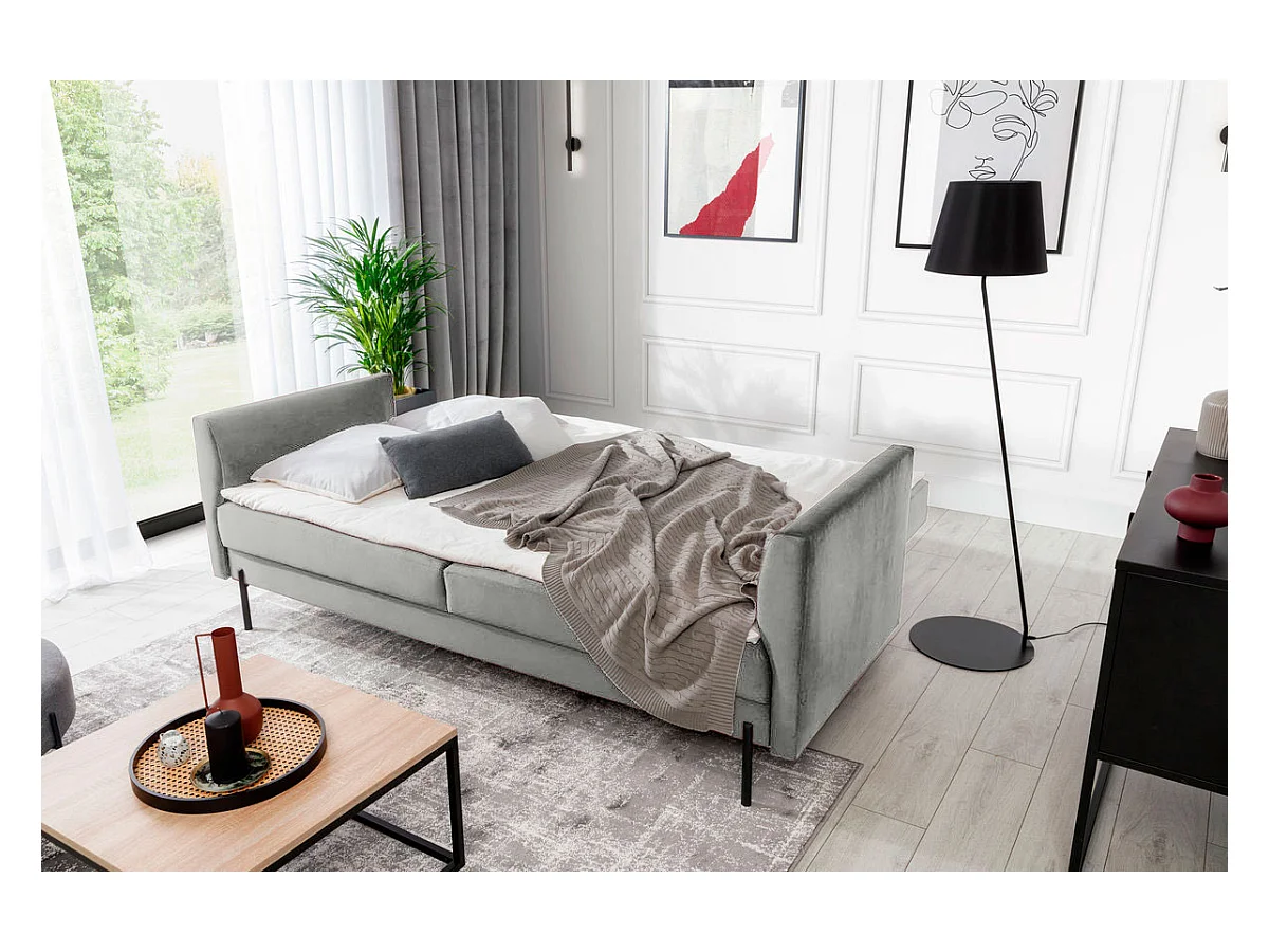 Canapé convertible en velours ROBBY – Rangement et pieds métal noir-Gris clair