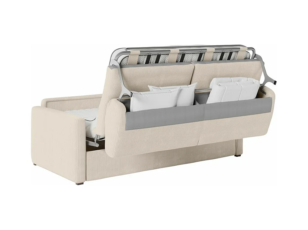 Canapé convertible express 3 places Agathe 160x190cm en velours côtelé - Beige - Matelas 13cm - L198 x P96 x H88cm - Loungitude