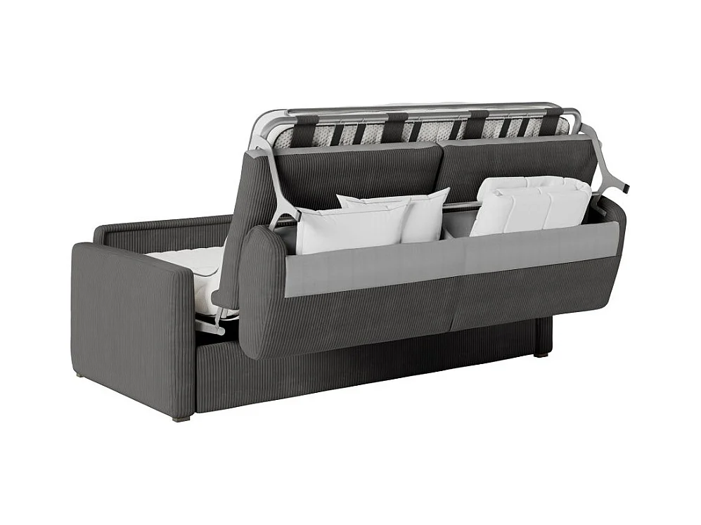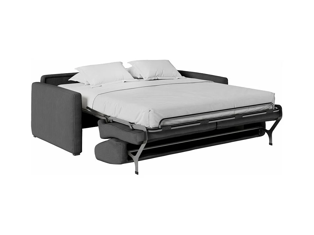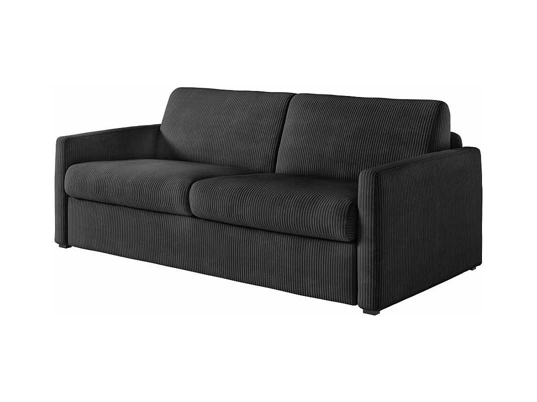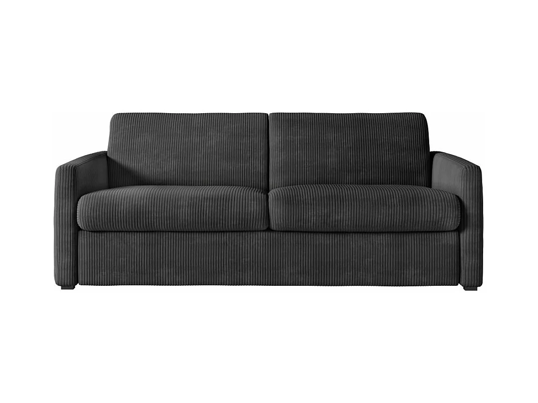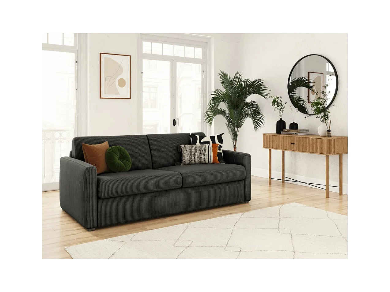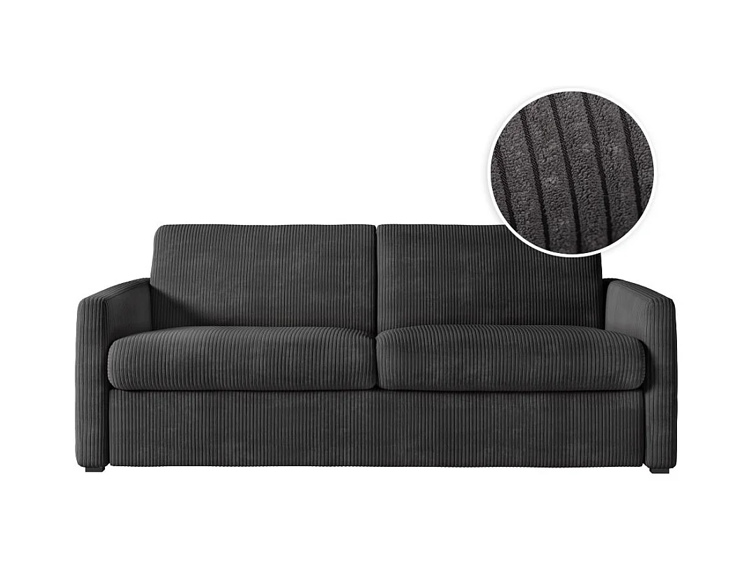 Canapé convertible express 3 places Agathe 160x190cm en velours côtelé - Gris anthracite - Matelas 13cm - L198 x P96 x H88cm - Loungitude