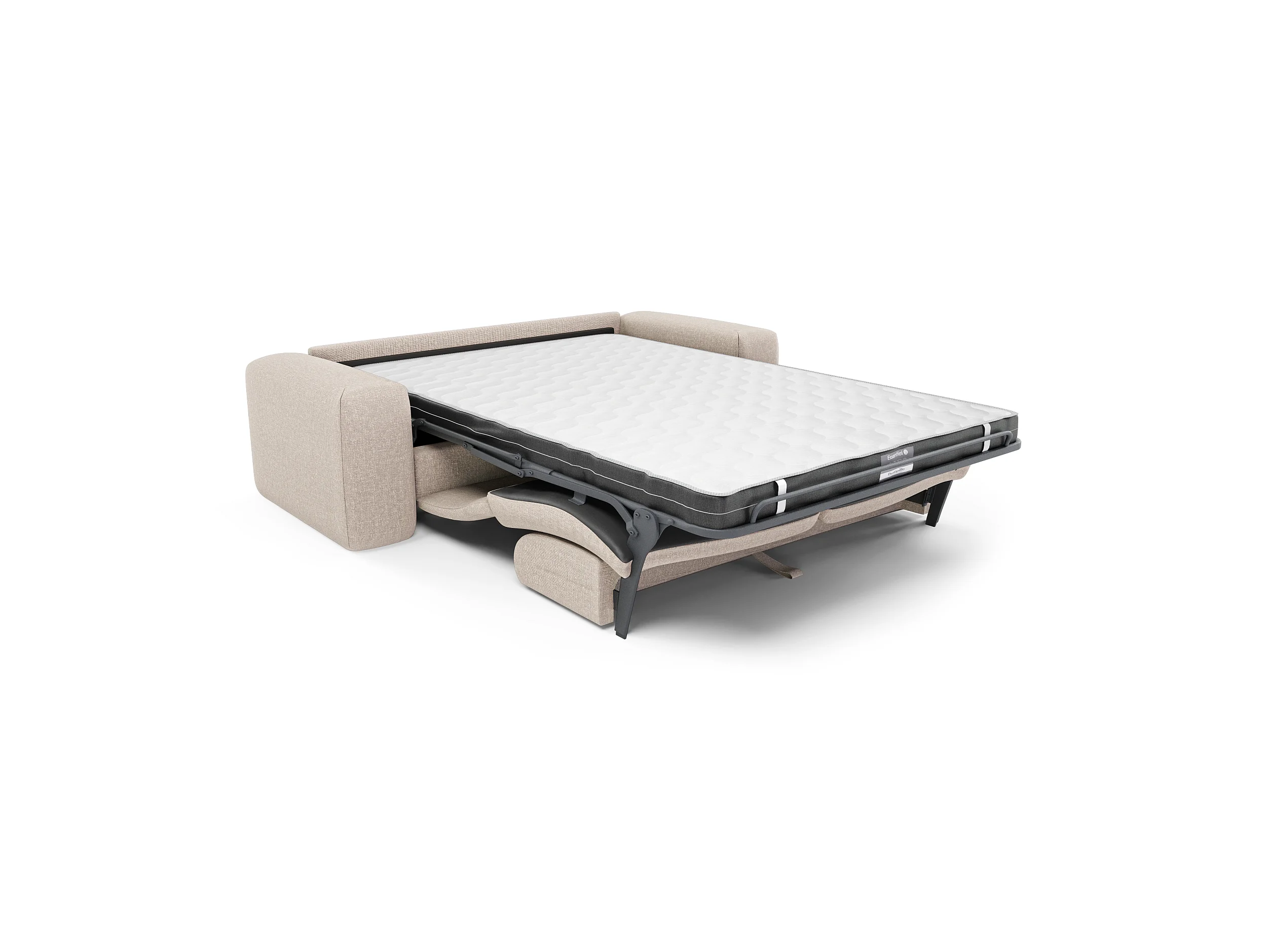 Canapé convertible express dunlopillo 160cm tissu tramé beige MYRA