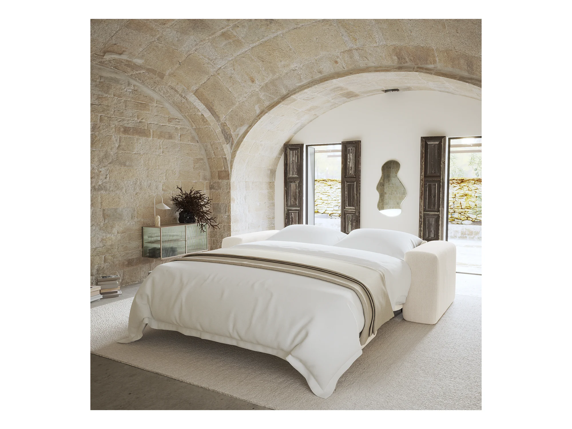 Canapé convertible express dunlopillo 160cm velours côtelé crème MYRA
