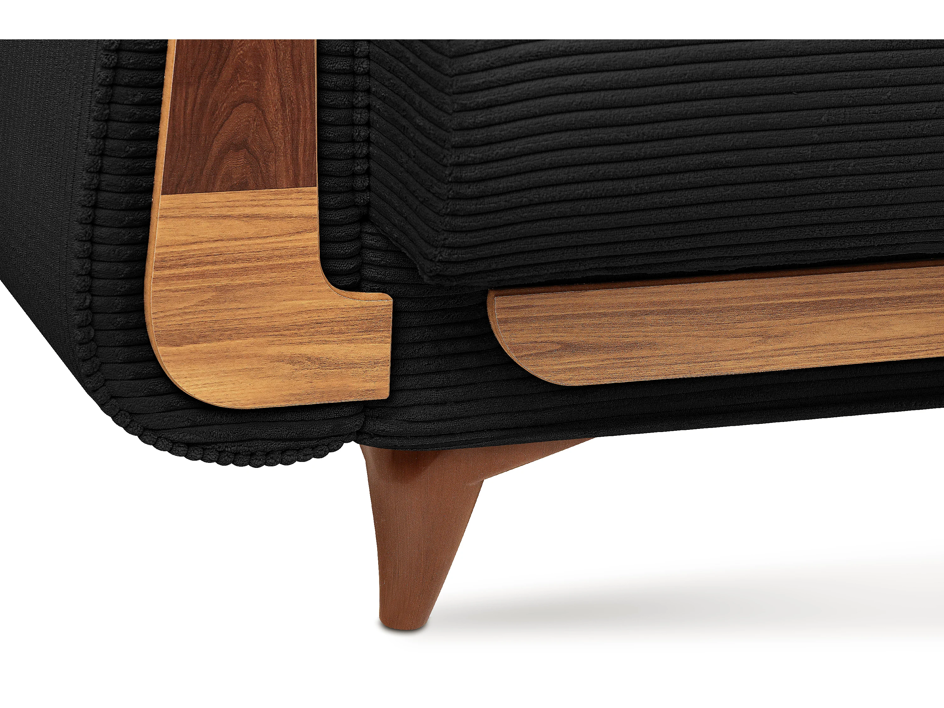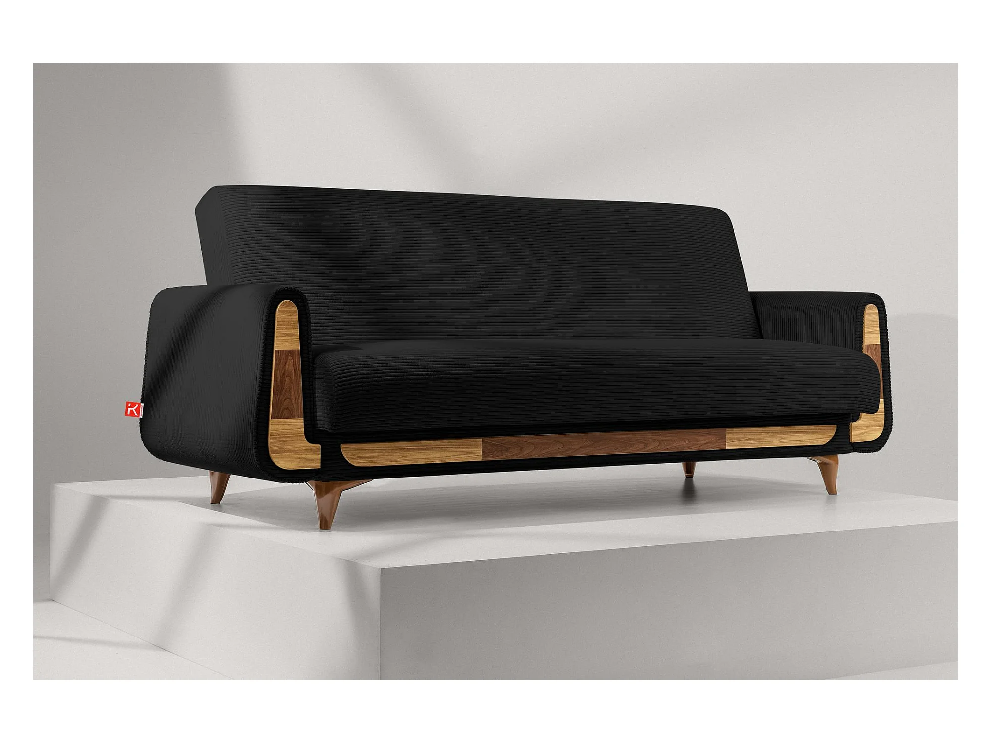 Canapé convertible GUSTAVO - 3 places - Tissu velours côtelé - Noir