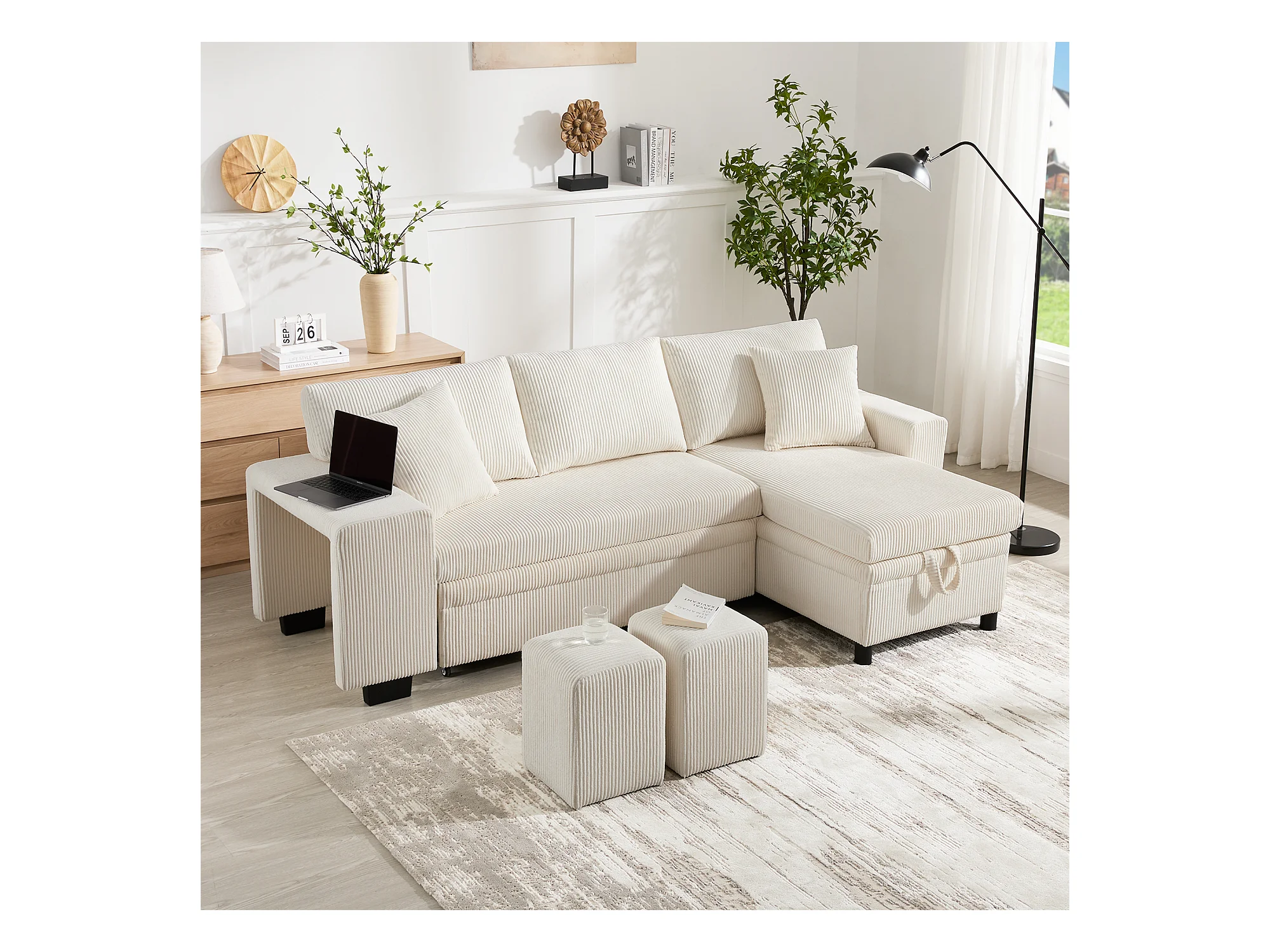 Canapé convertible lit 3 places - 231 x 131.5 x 84 cm - avec USB + coussins + rangement - velours - beige
