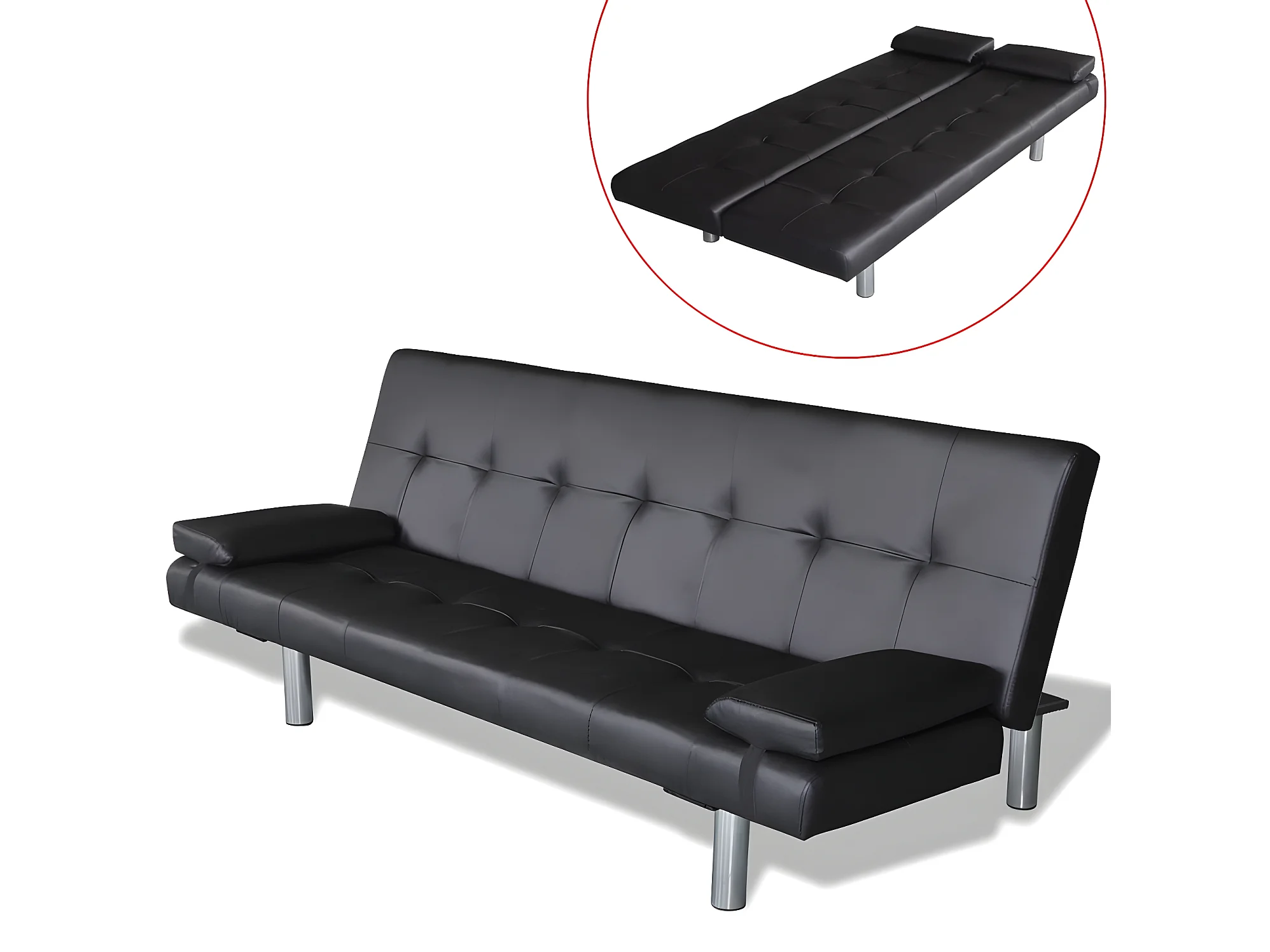 Canapé convertible réglable avec deux oreillers Similicuir Noir KFE4574