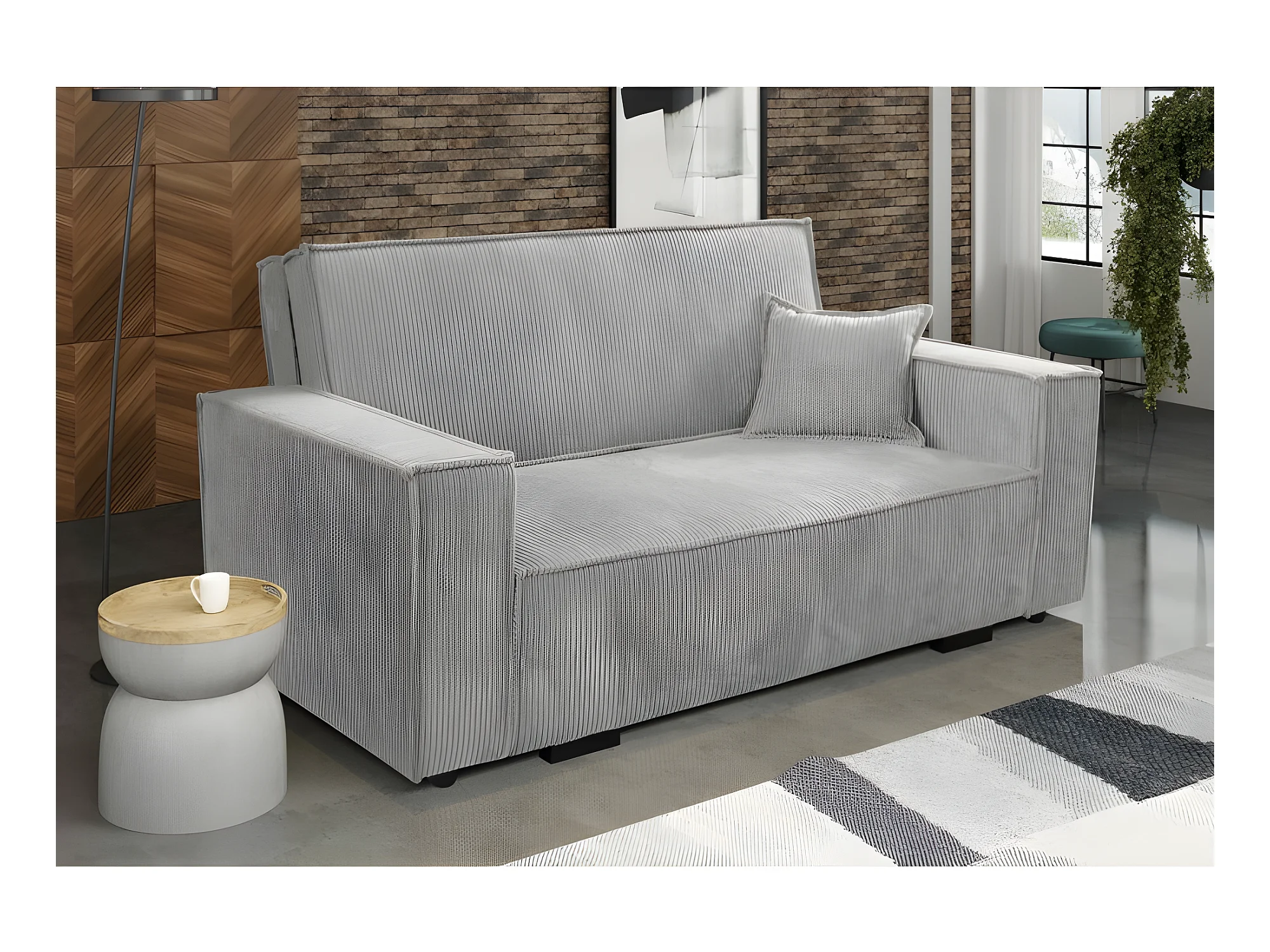 Canapé convertible STARIO en velours côtelé 3 places gris